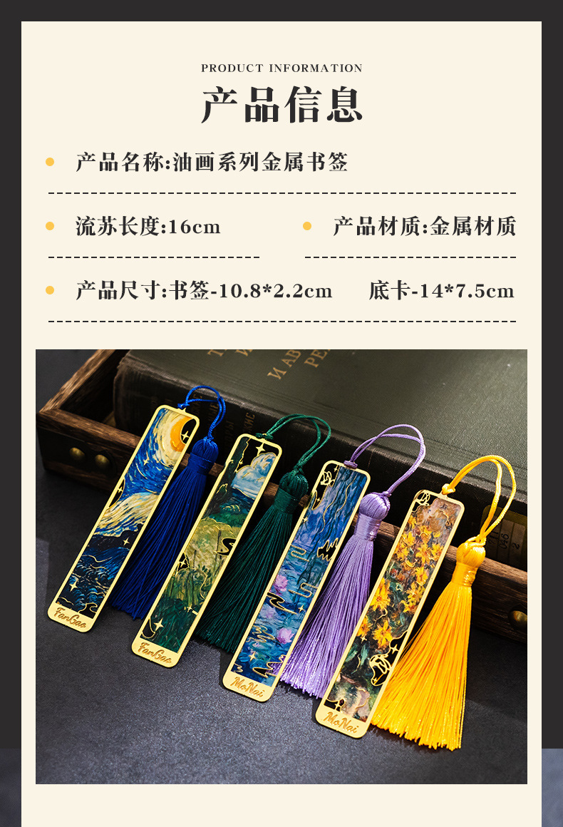 复古油画镂空书签高档精致金属金边书签送老师教师节礼物国风创意
