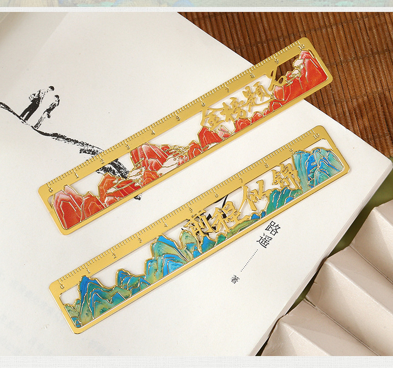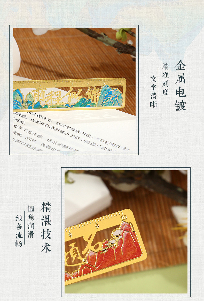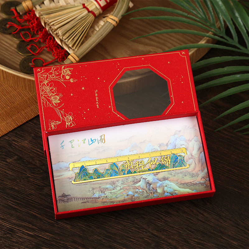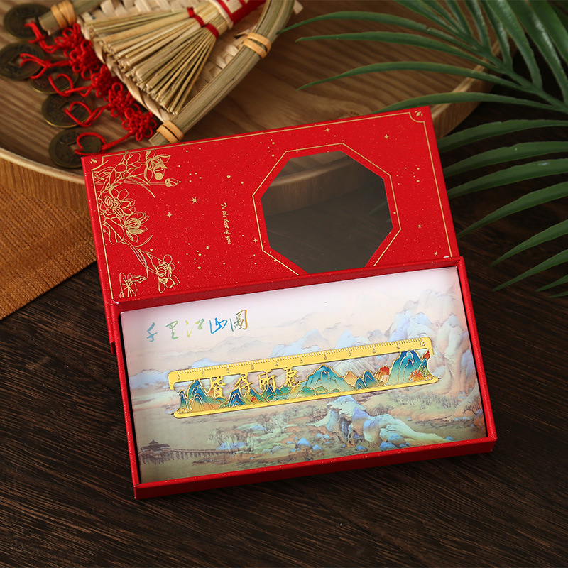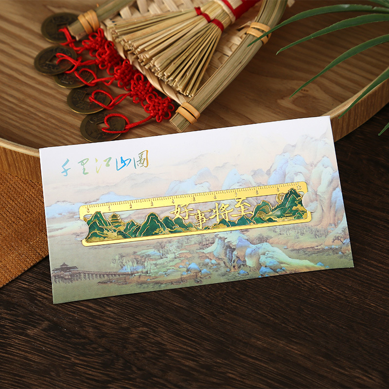 千里江山图书签定制礼品古典中国风金属尺子镂空书签文创纪念品