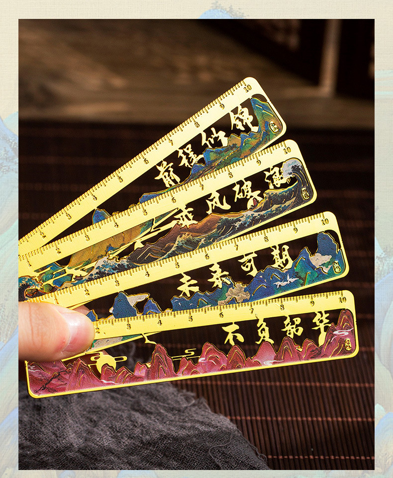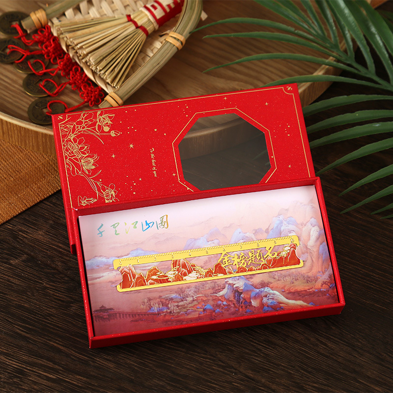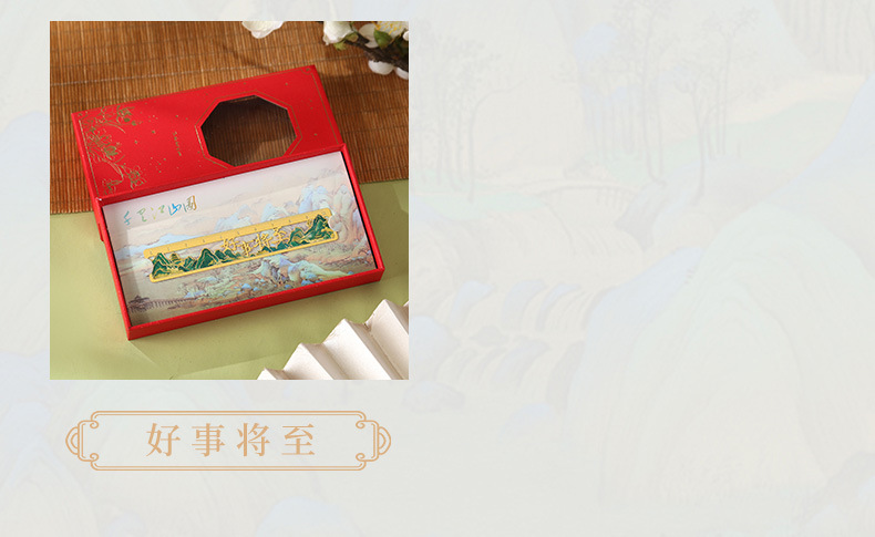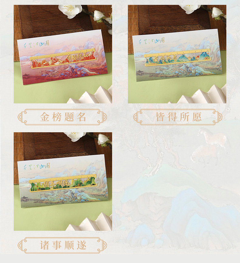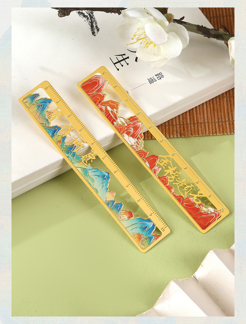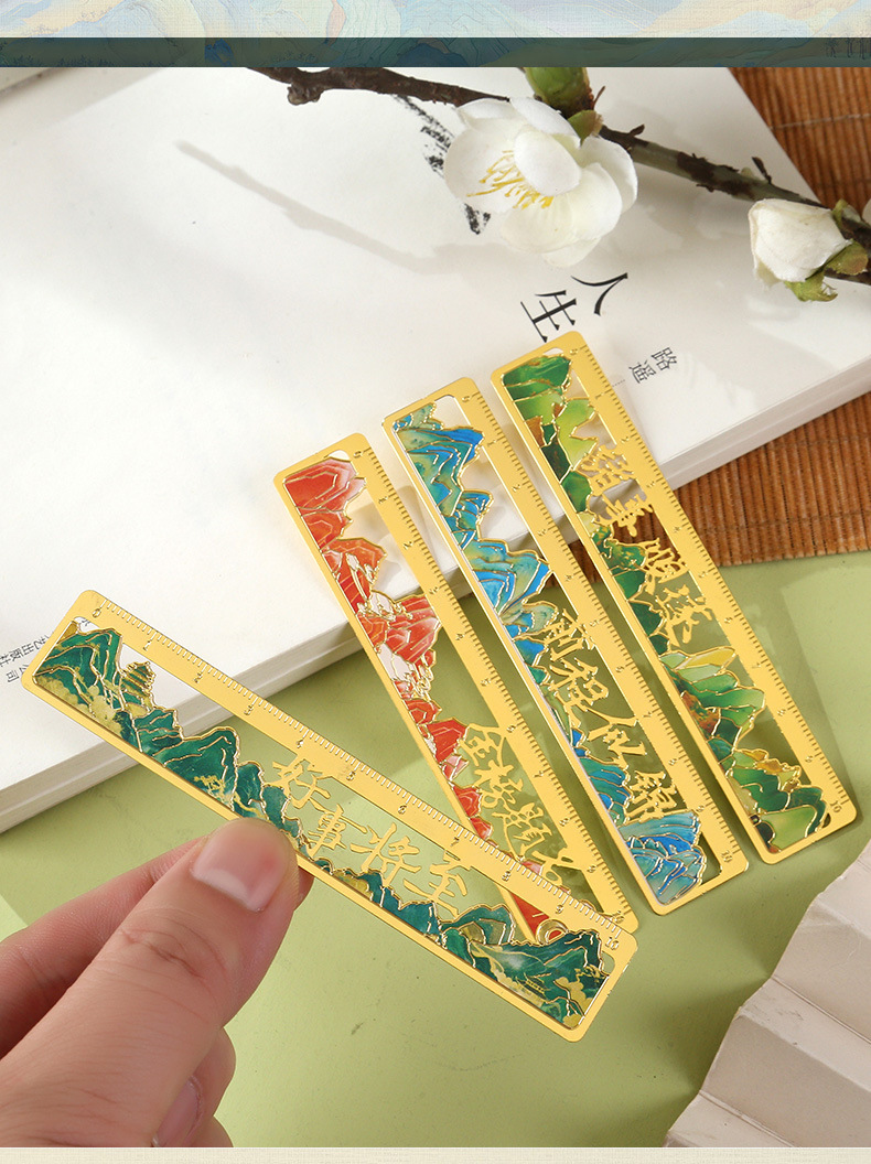 千里江山图书签定制礼品古典中国风金属尺子镂空书签文创纪念品