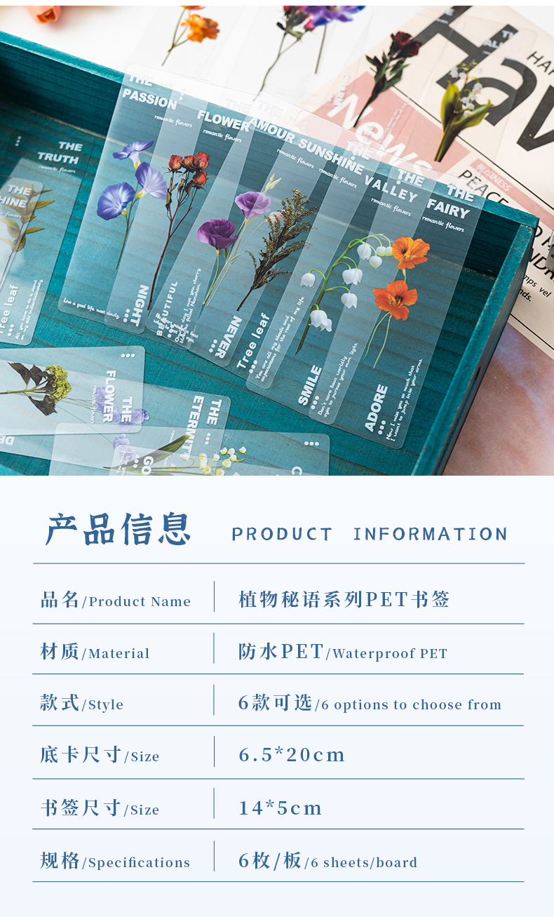 PET半透明书签自然植物所系列创意干花雏菊文艺个性图案书签diy