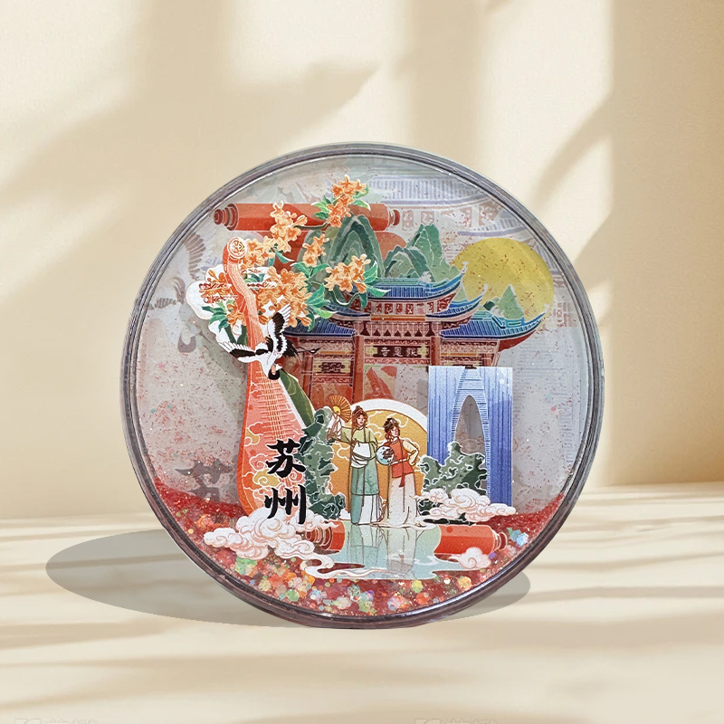 中国城市冰箱贴流沙装饰贴北京天坛哈尔滨乌镇旅游景点文创纪念品