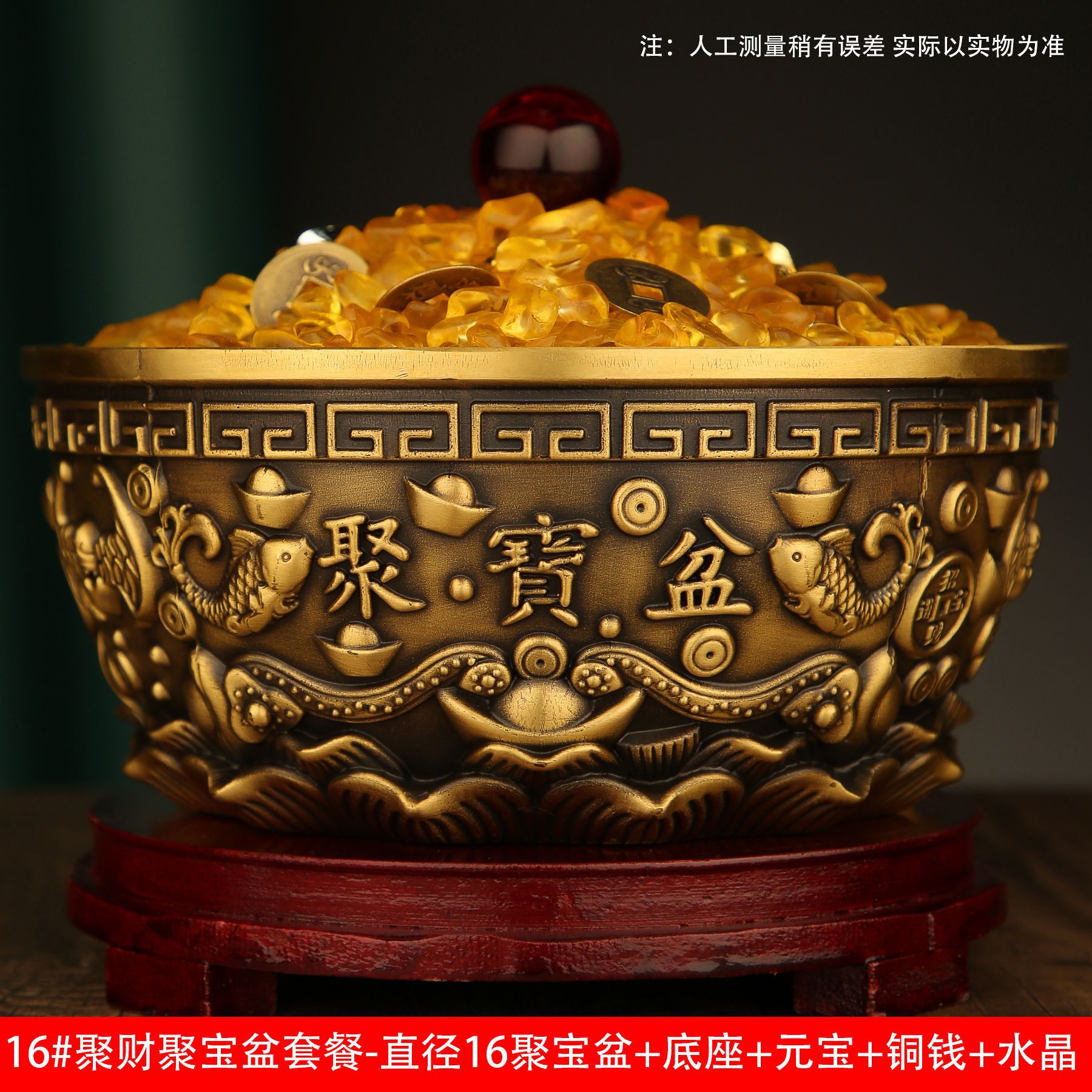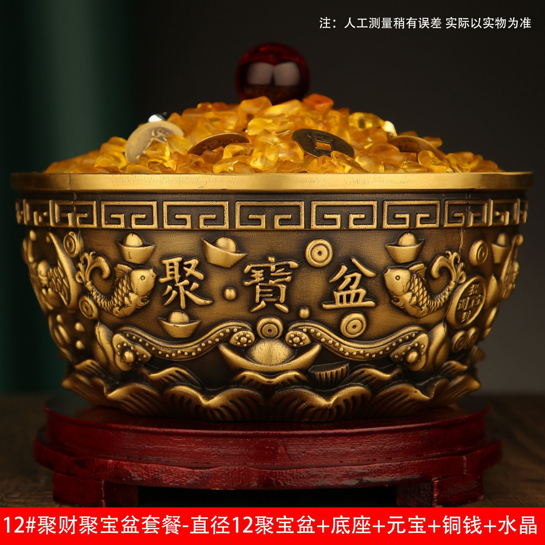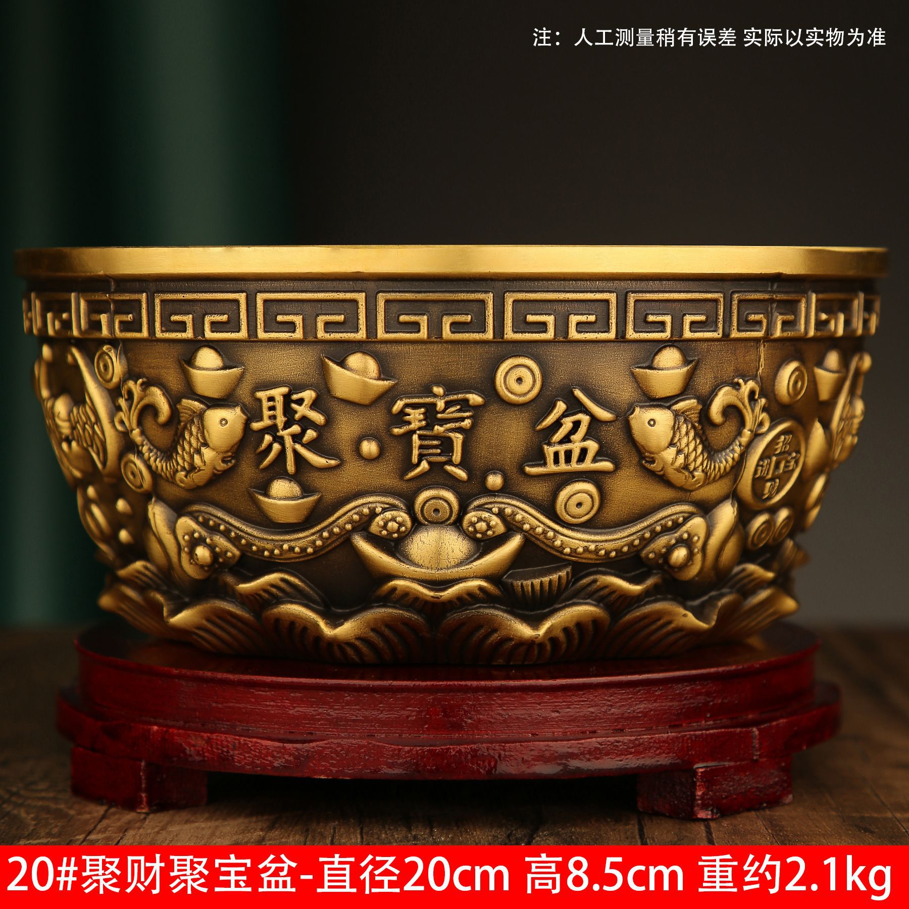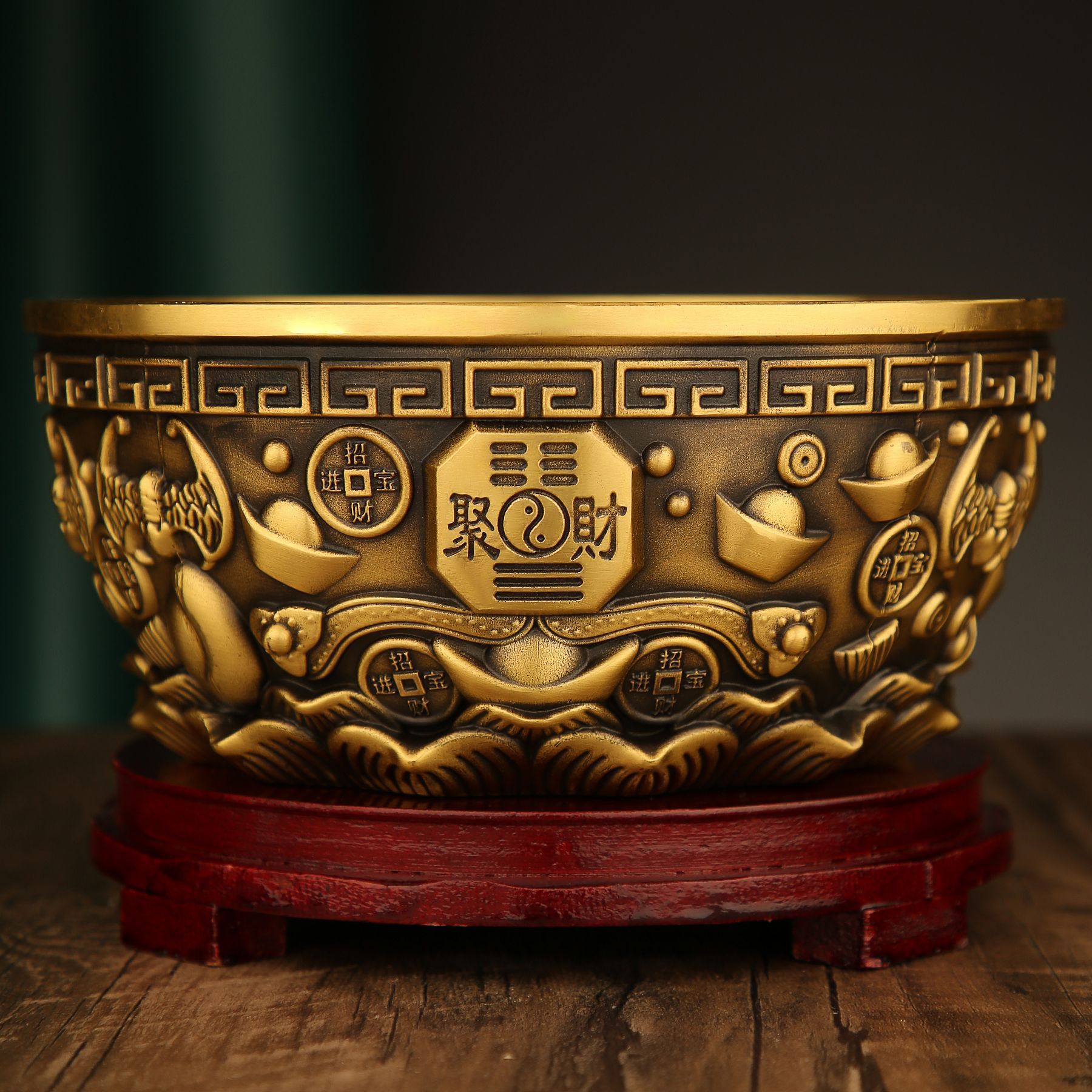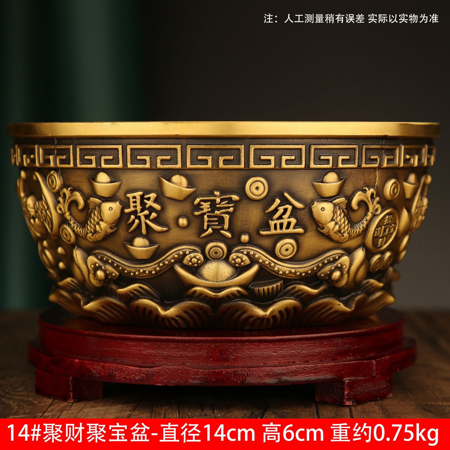 聚宝盆摆件纯黄铜家用客厅装饰招聚铜制品工艺品财存钱罐铜器黄铜