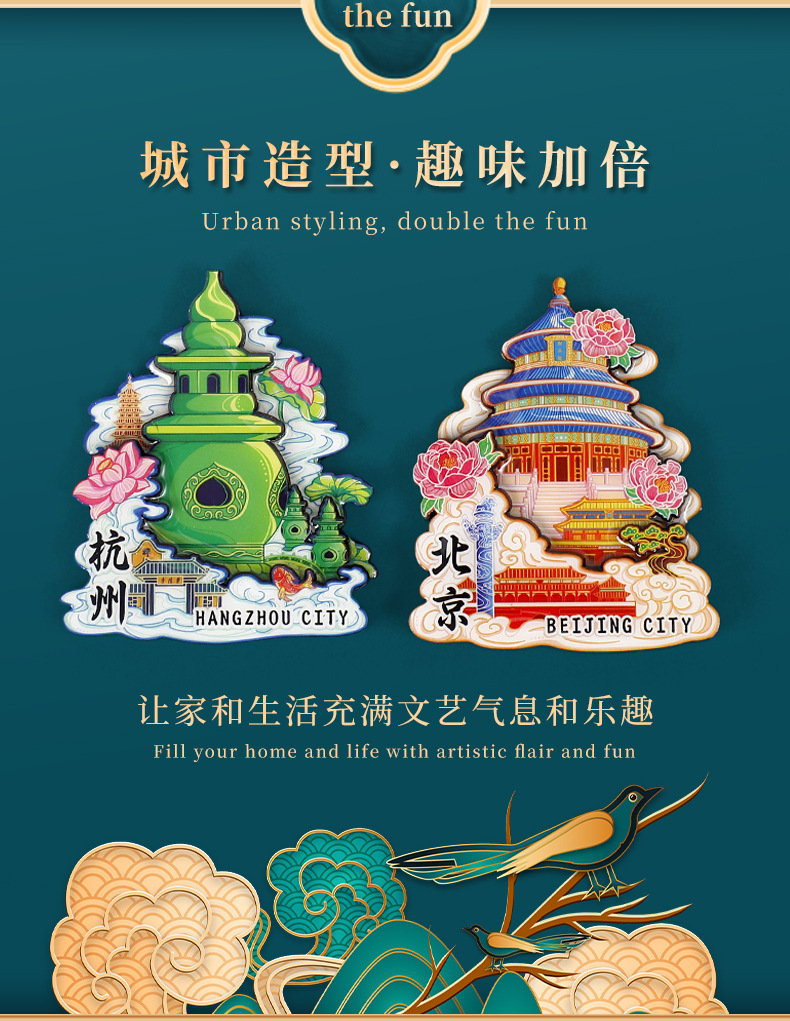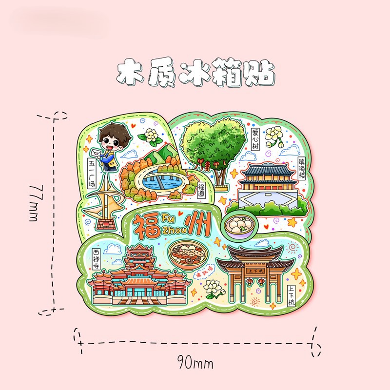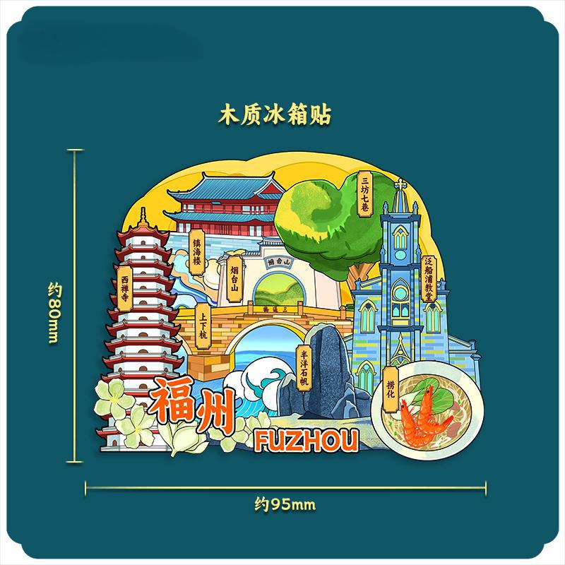福建福州白塔马鞍墙三坊七巷木质文创磁吸创意旅游建筑城市冰箱贴