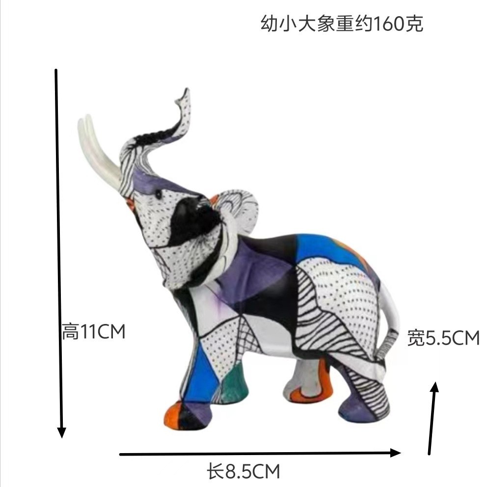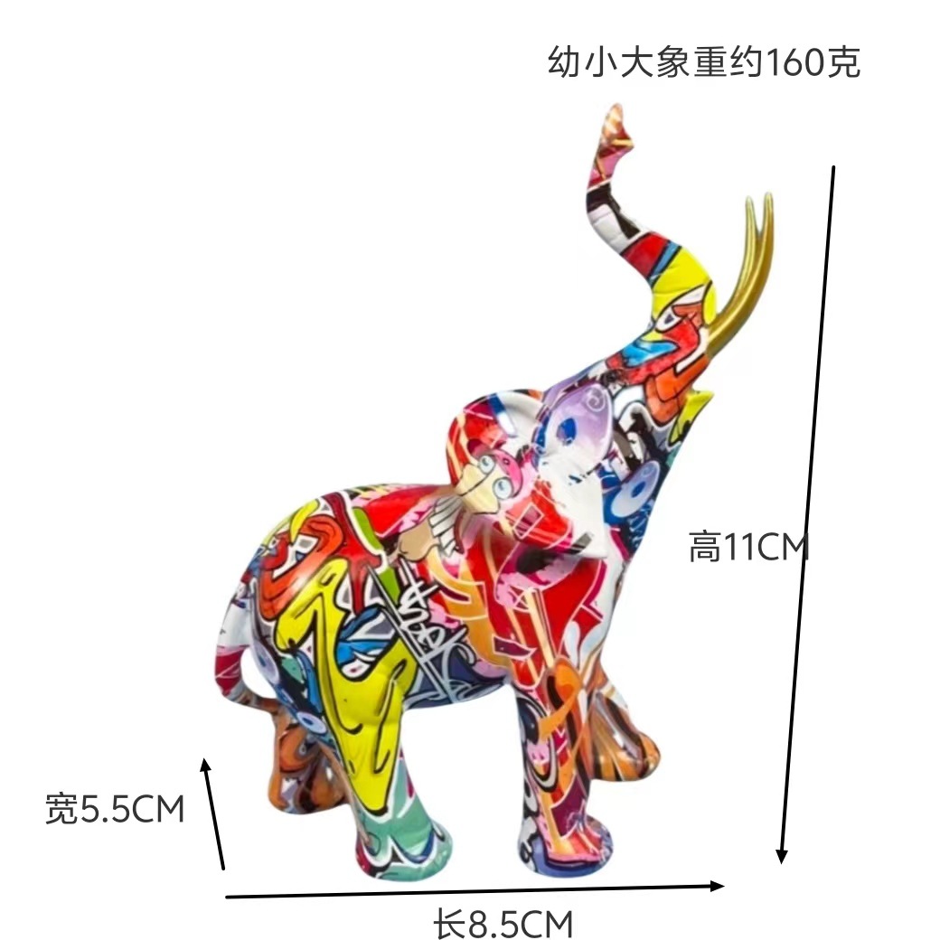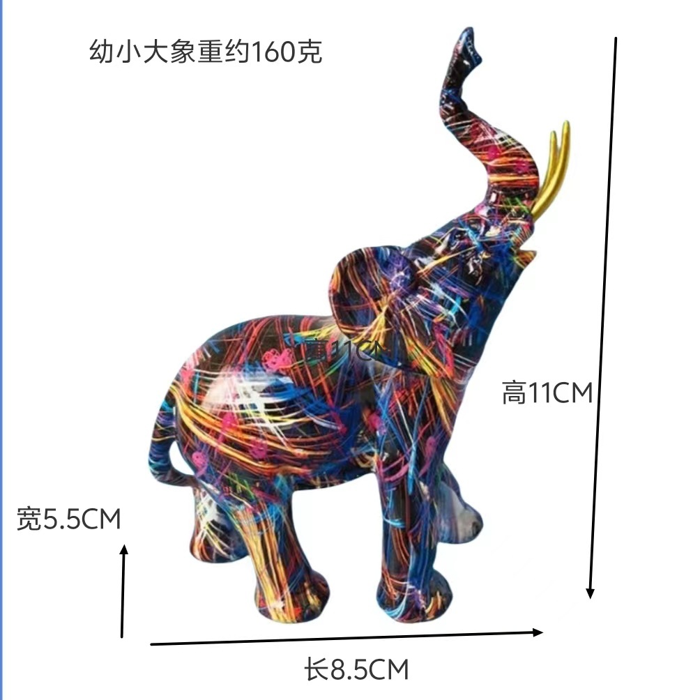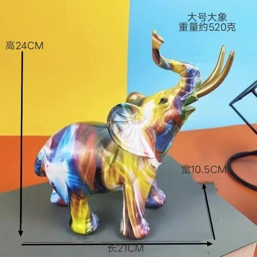 酒柜 装饰 摆件水转印涂鸦炫彩树脂工艺品家居装饰品大象小象批发