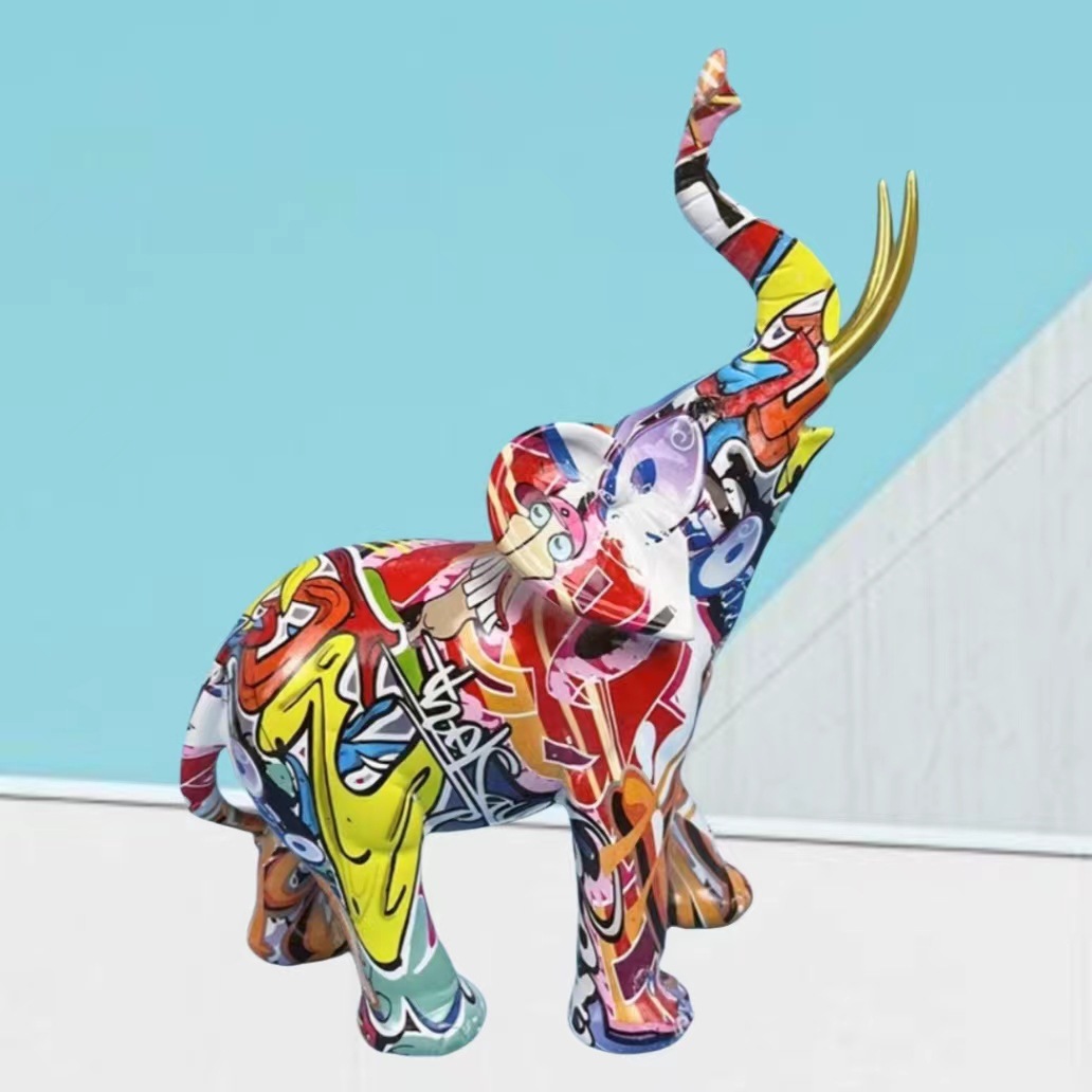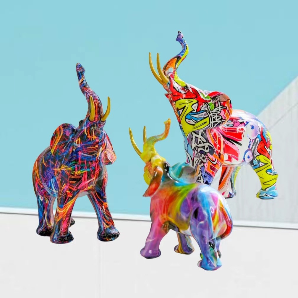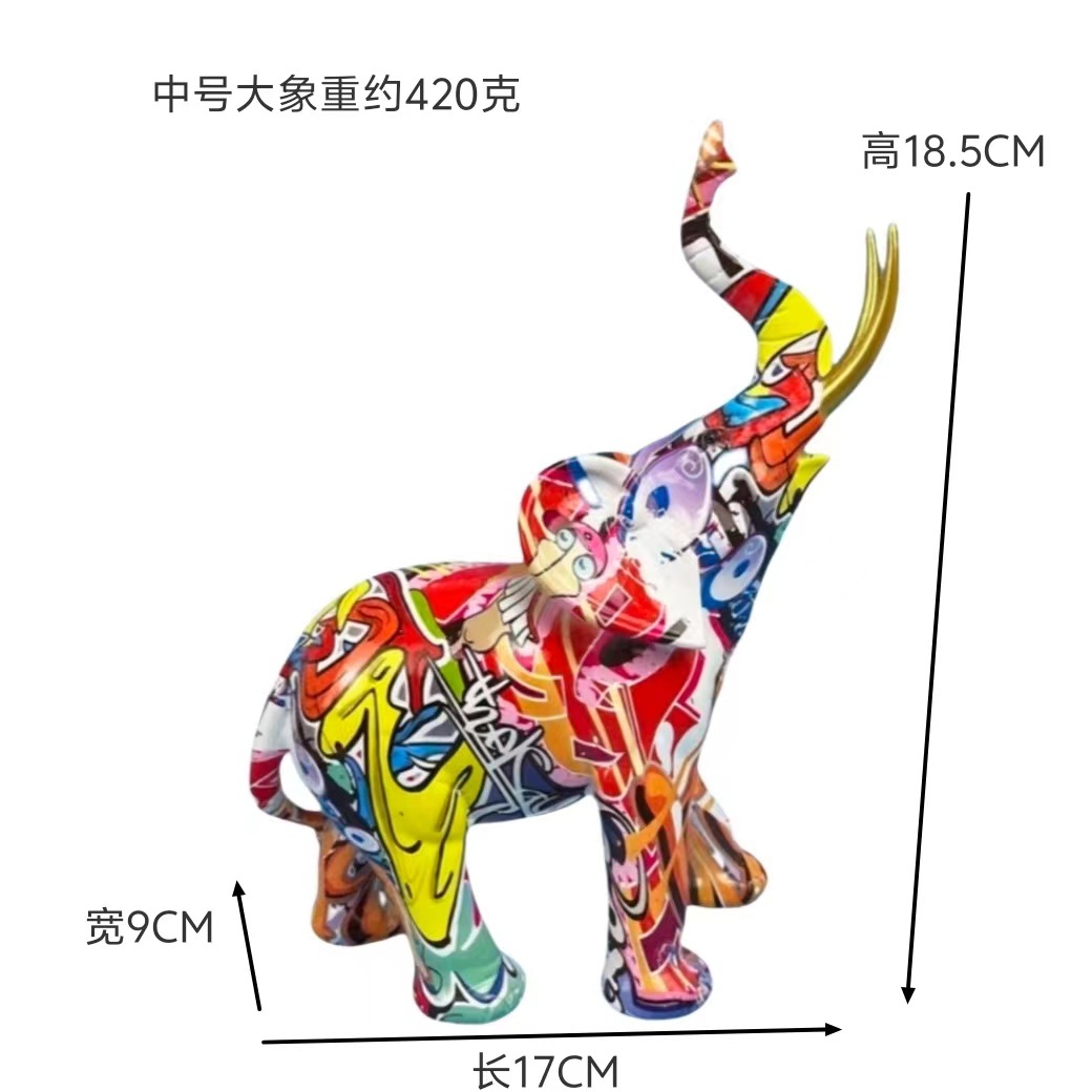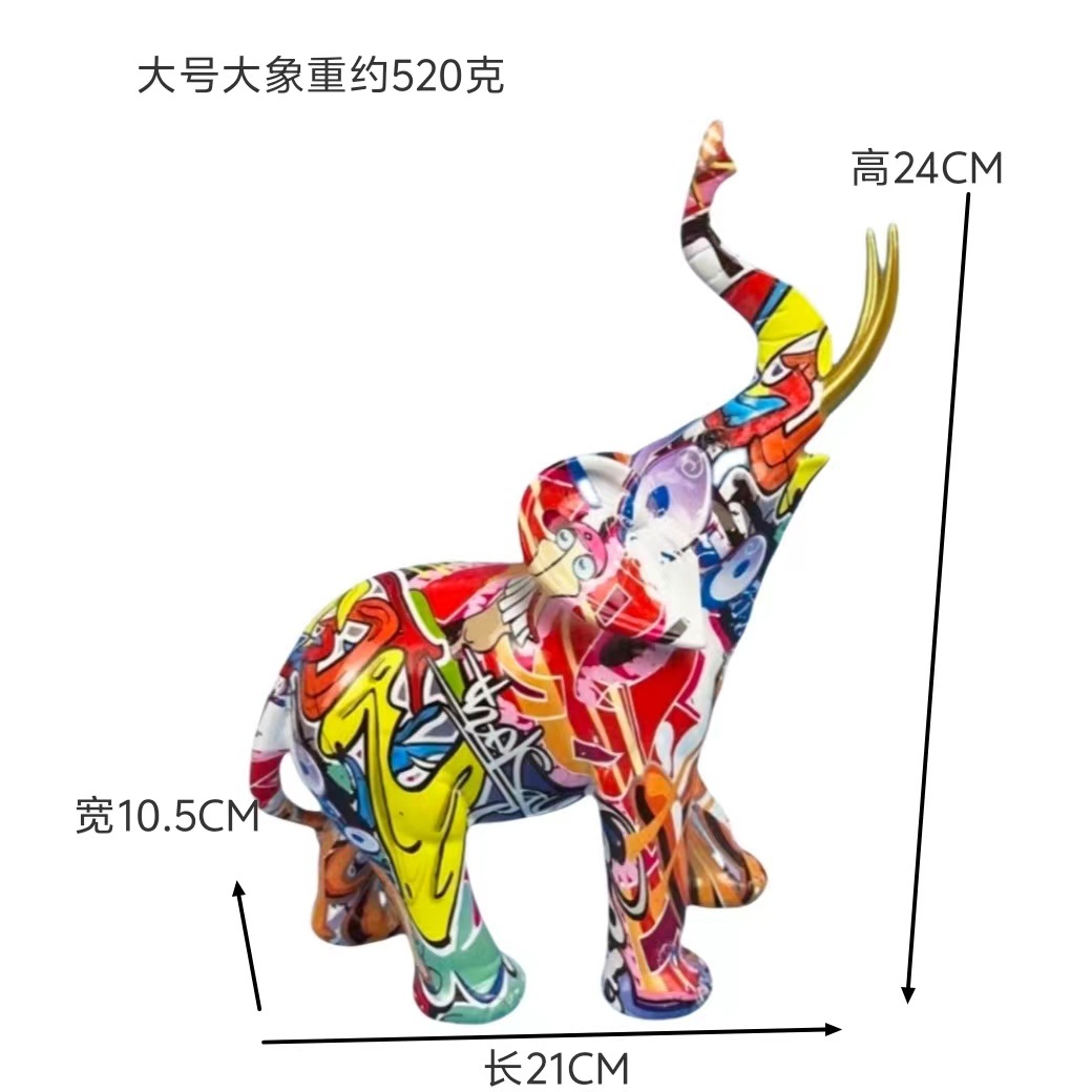 酒柜 装饰 摆件水转印涂鸦炫彩树脂工艺品家居装饰品大象小象批发