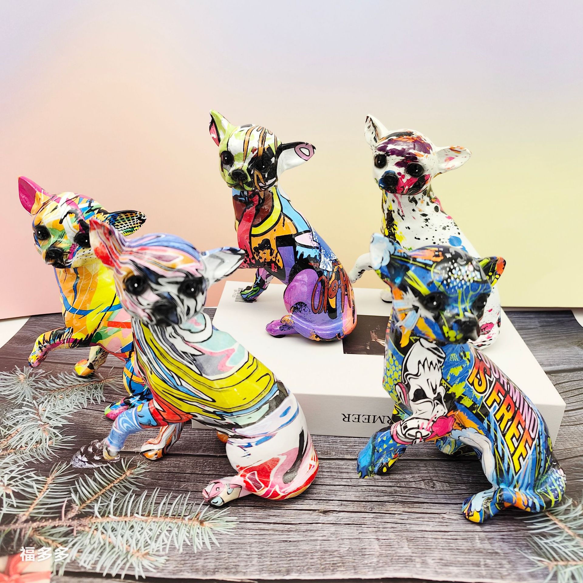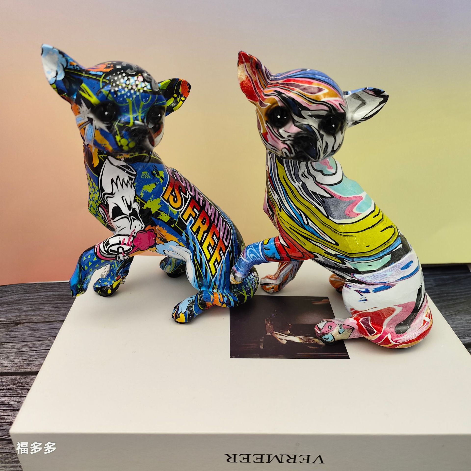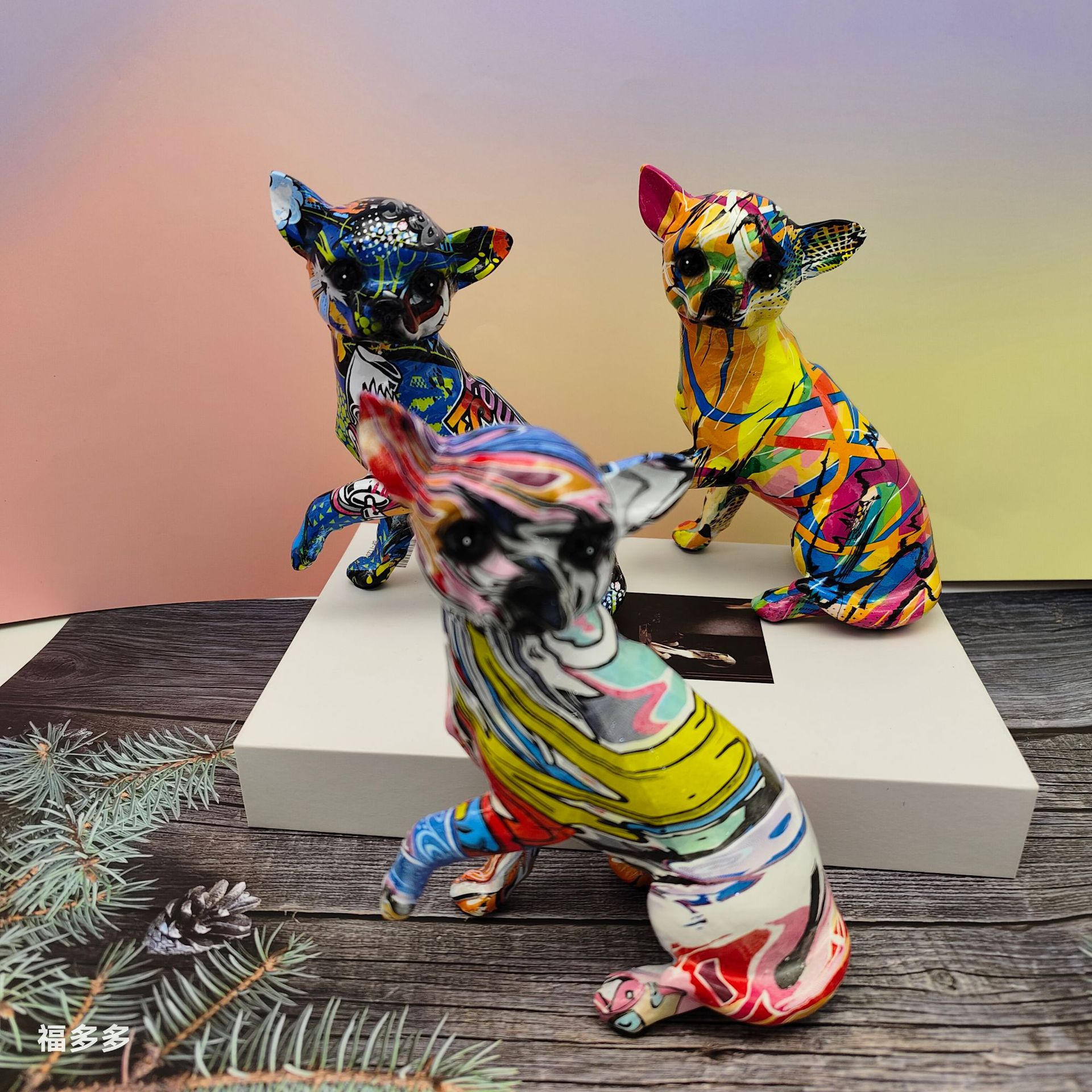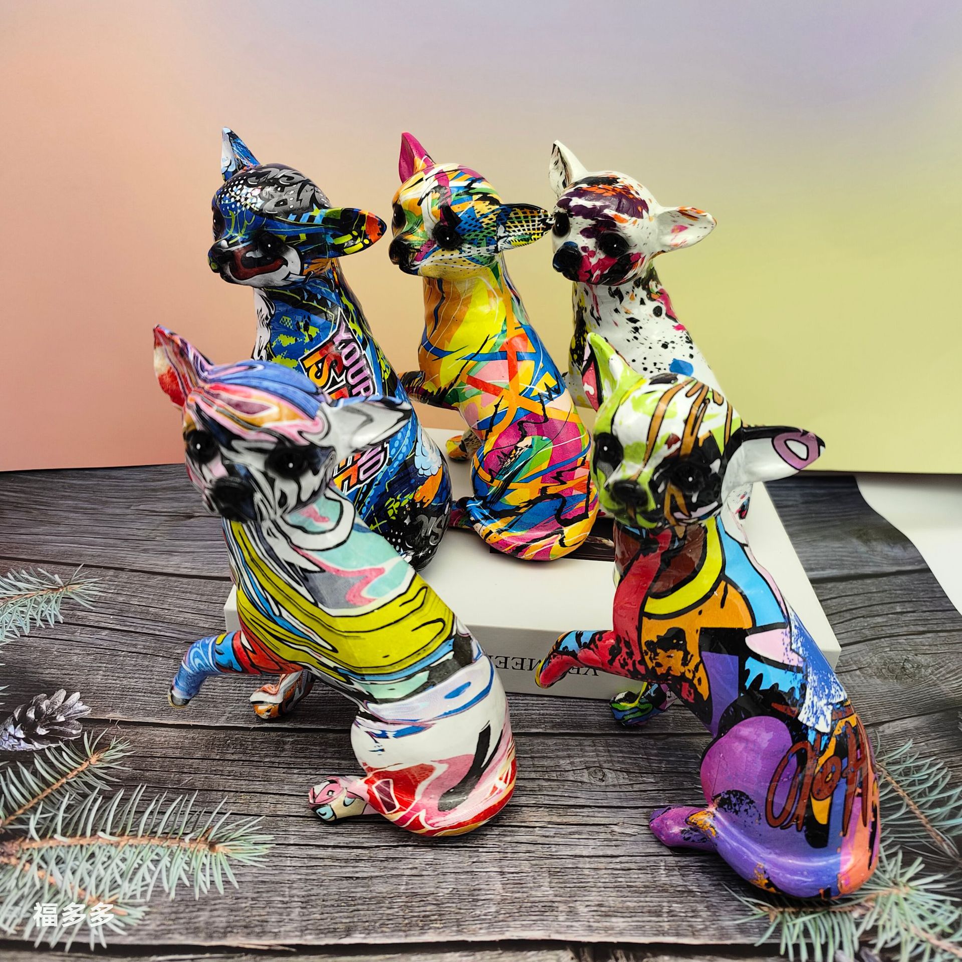 可爱小摆件涂鸦炫彩吉娃娃狗狗萌宠家居客厅办公室装饰品礼品