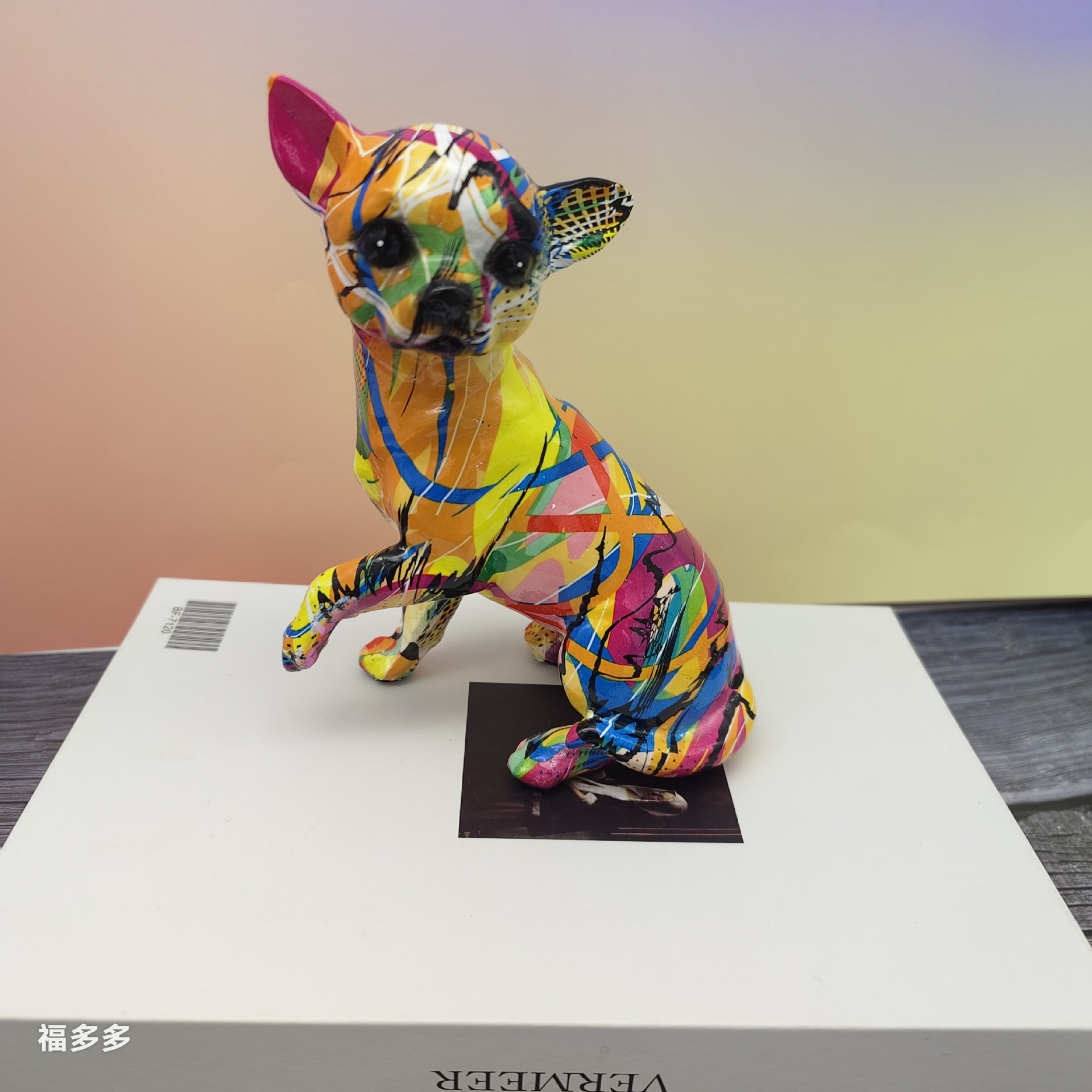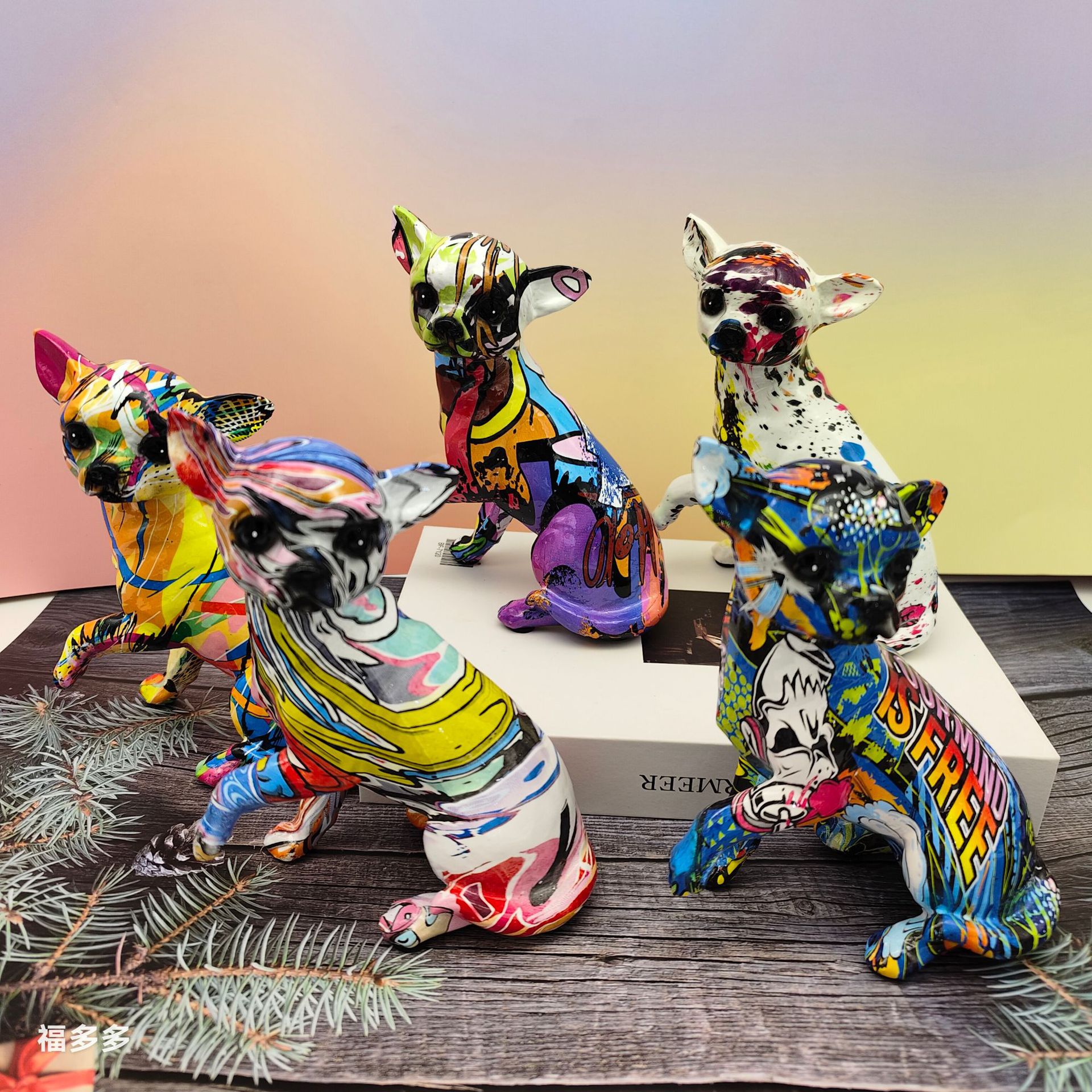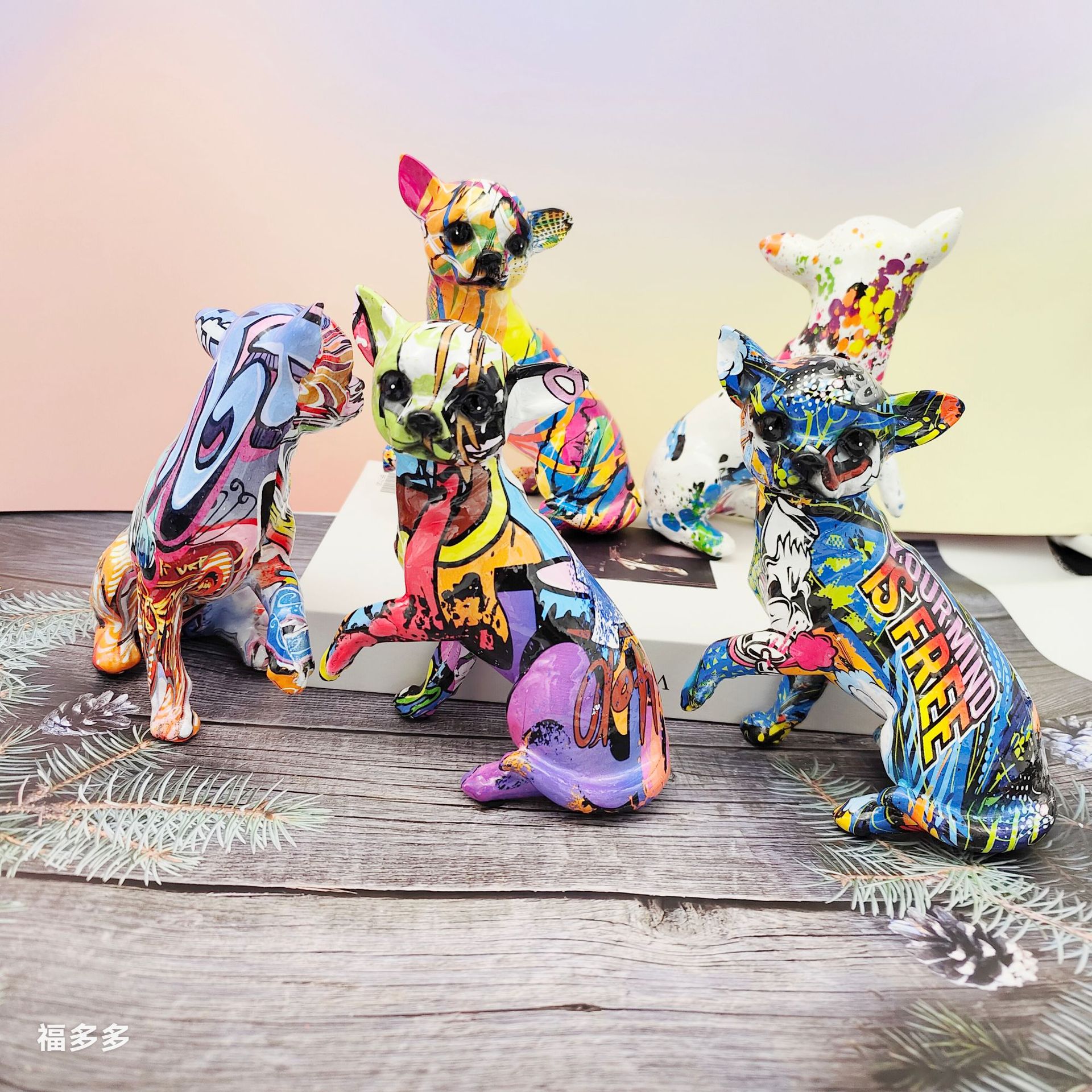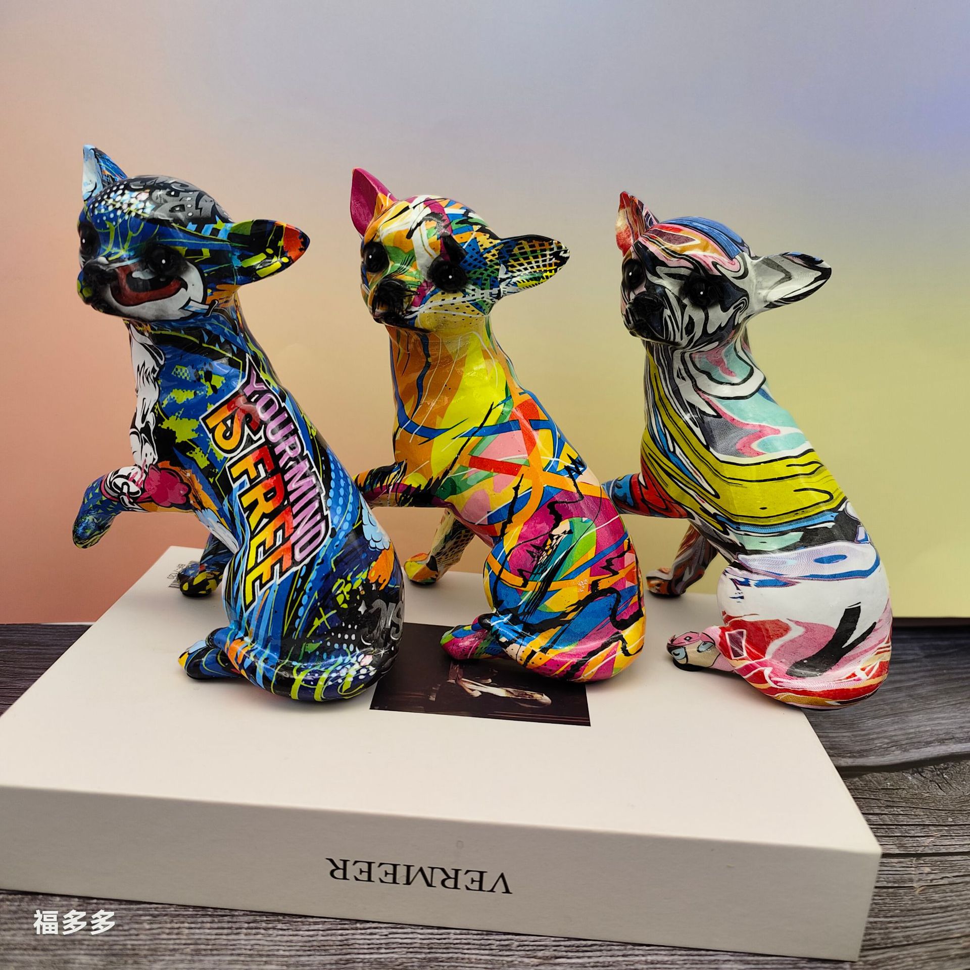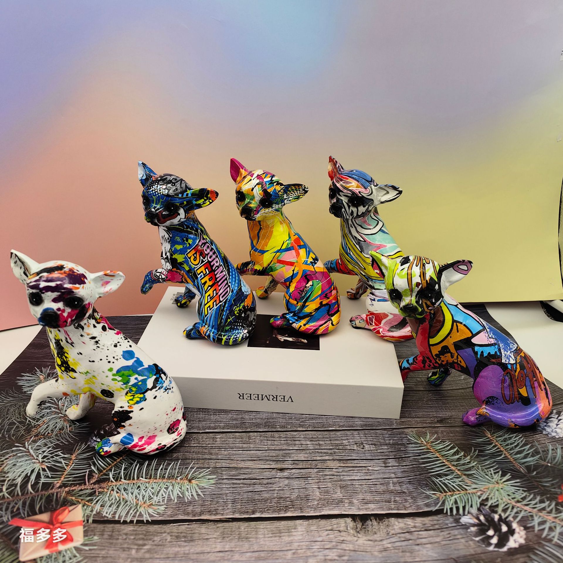 可爱小摆件涂鸦炫彩吉娃娃狗狗萌宠家居客厅办公室装饰品礼品