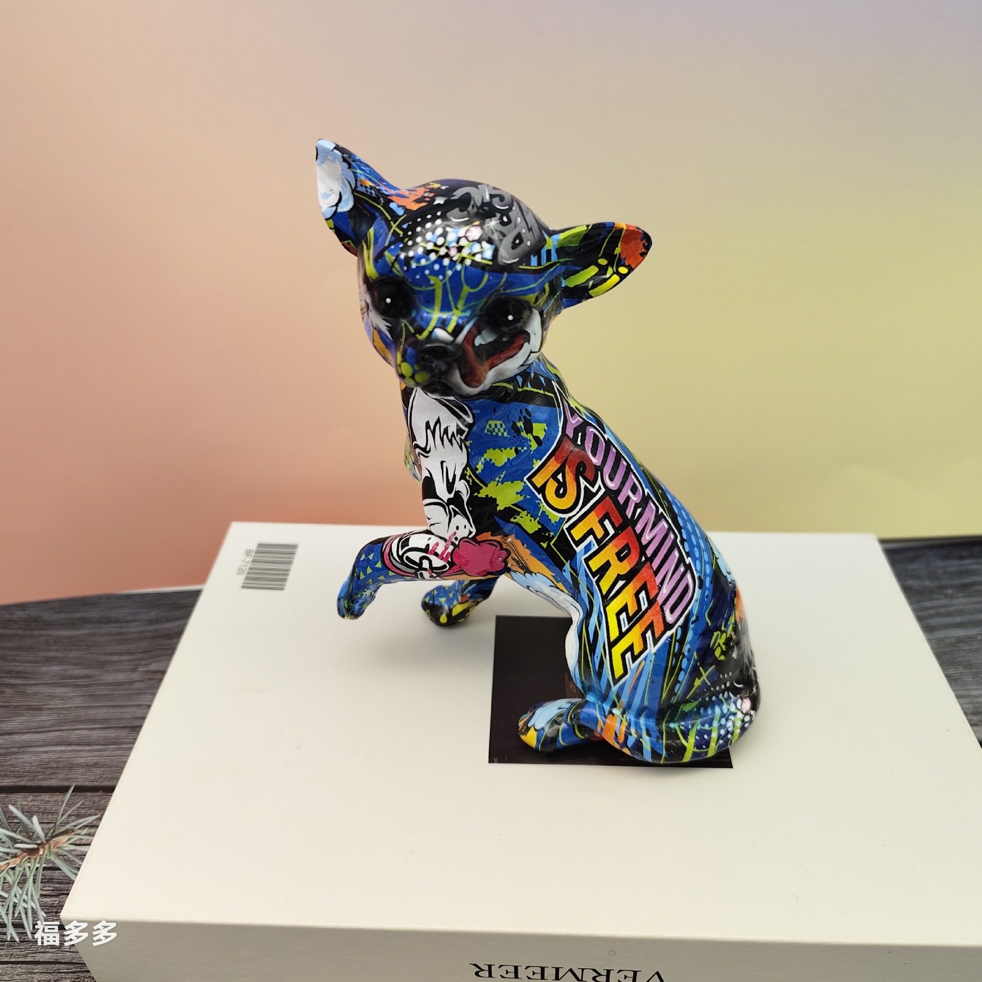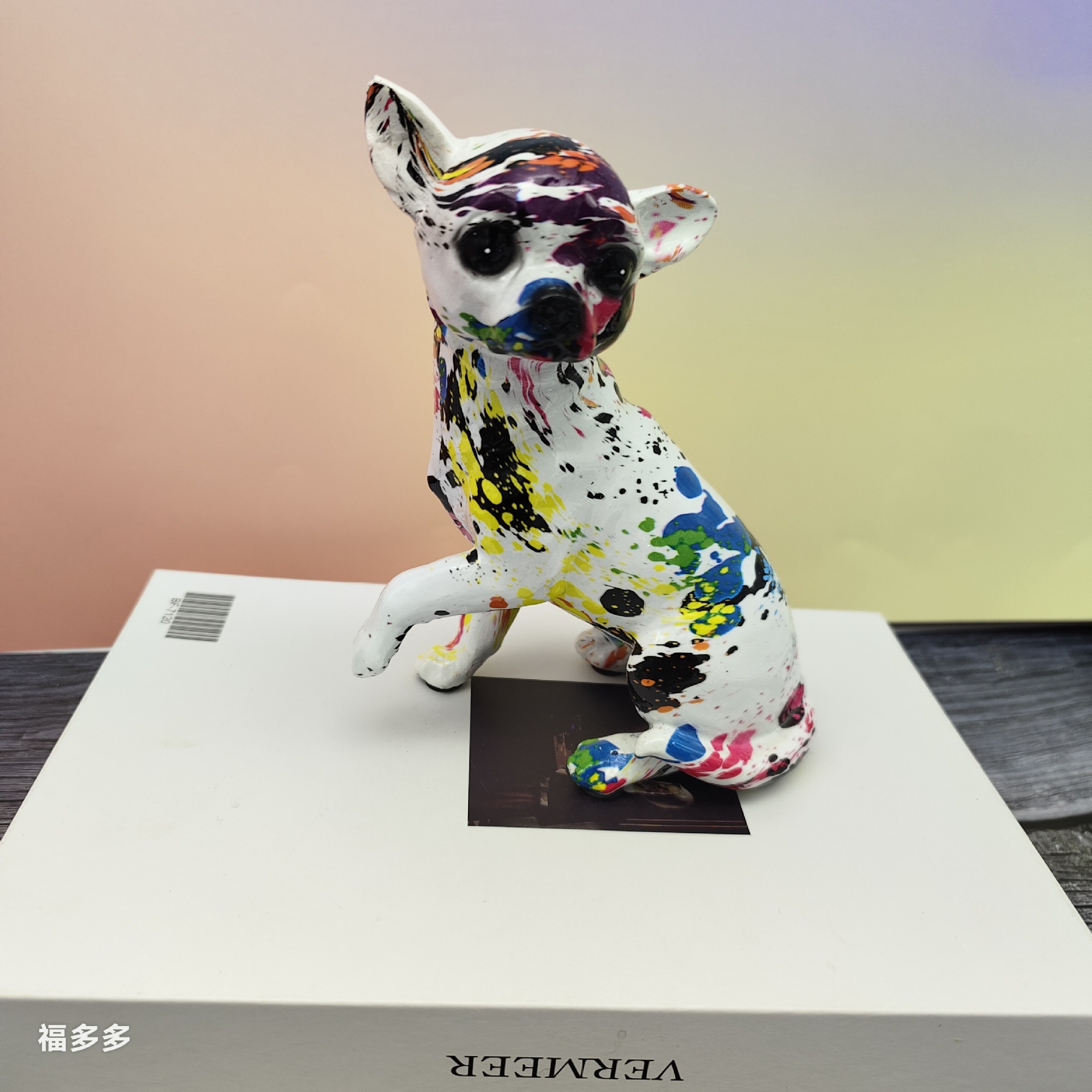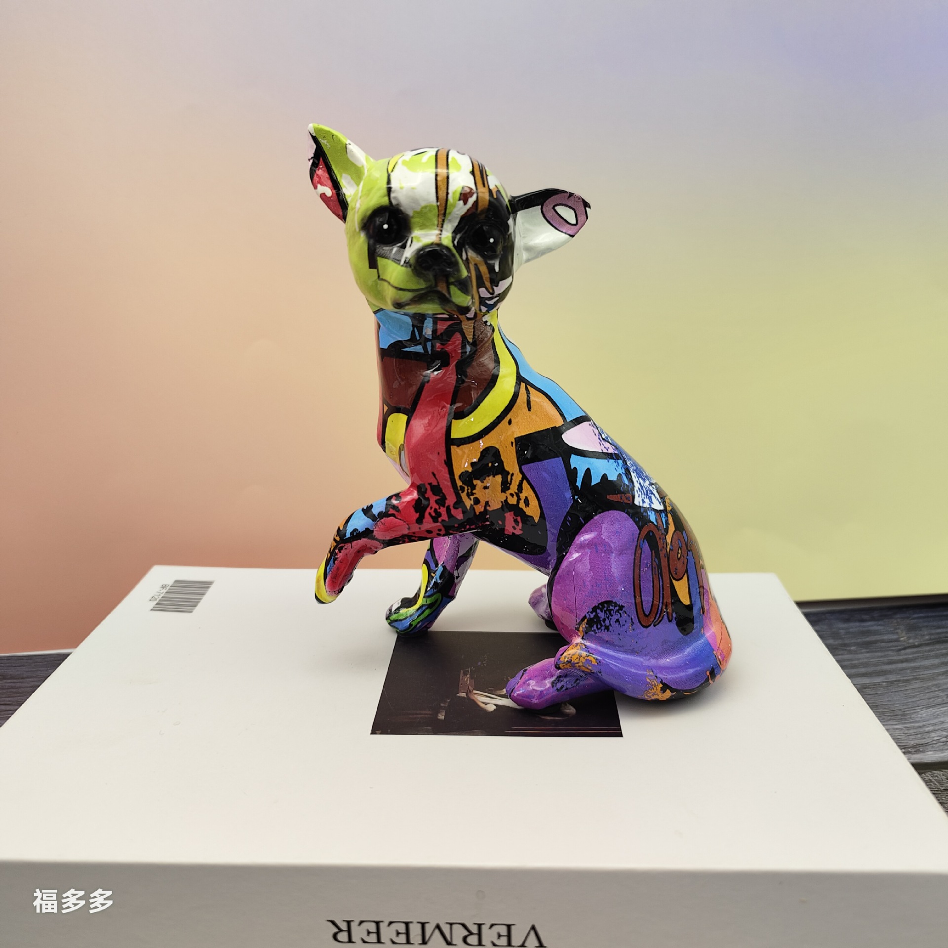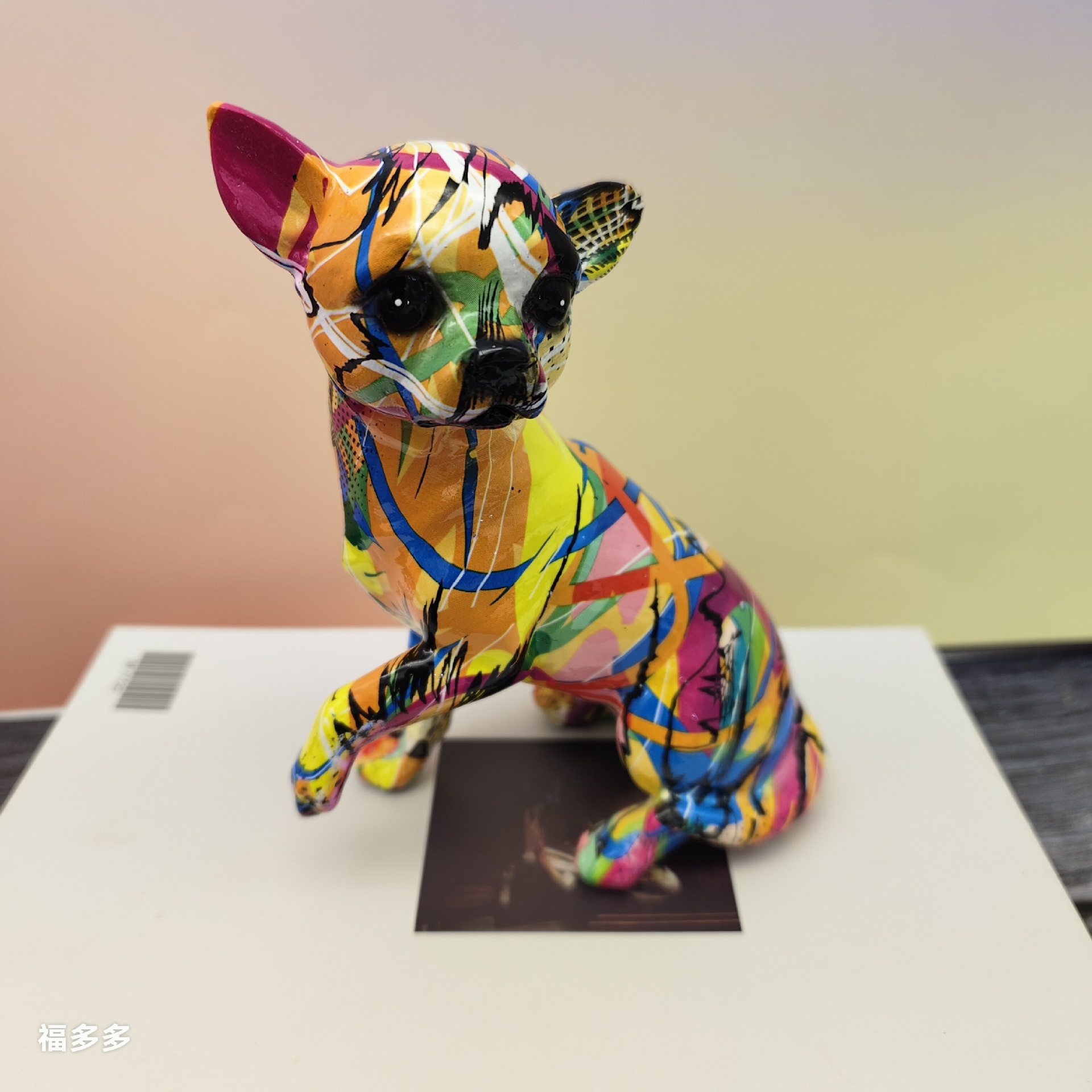 可爱小摆件涂鸦炫彩吉娃娃狗狗萌宠家居客厅办公室装饰品礼品