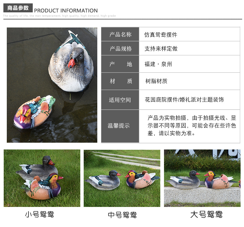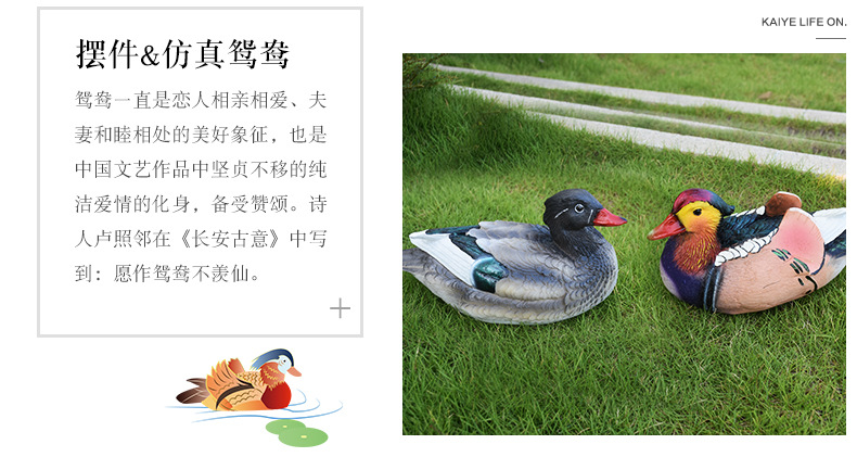 户外池塘景观雕塑花园庭院水池别墅喷泉仿真浮水鸳鸯鸭子装饰摆件