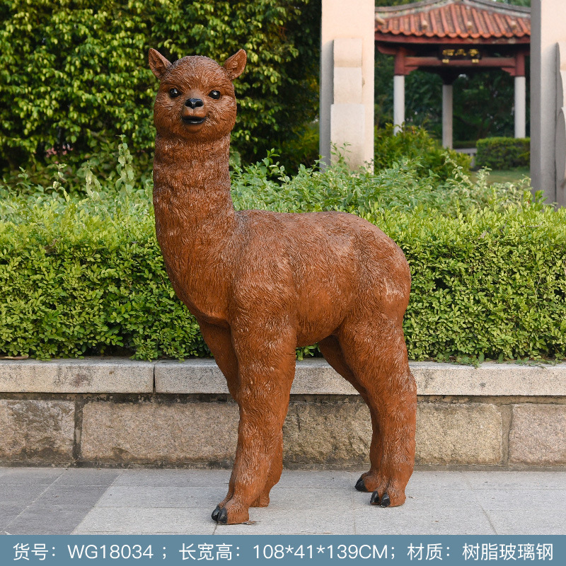 户外园林景观装饰动物玻璃钢雕塑仿真羊驼摆件花园庭院商场幼儿园