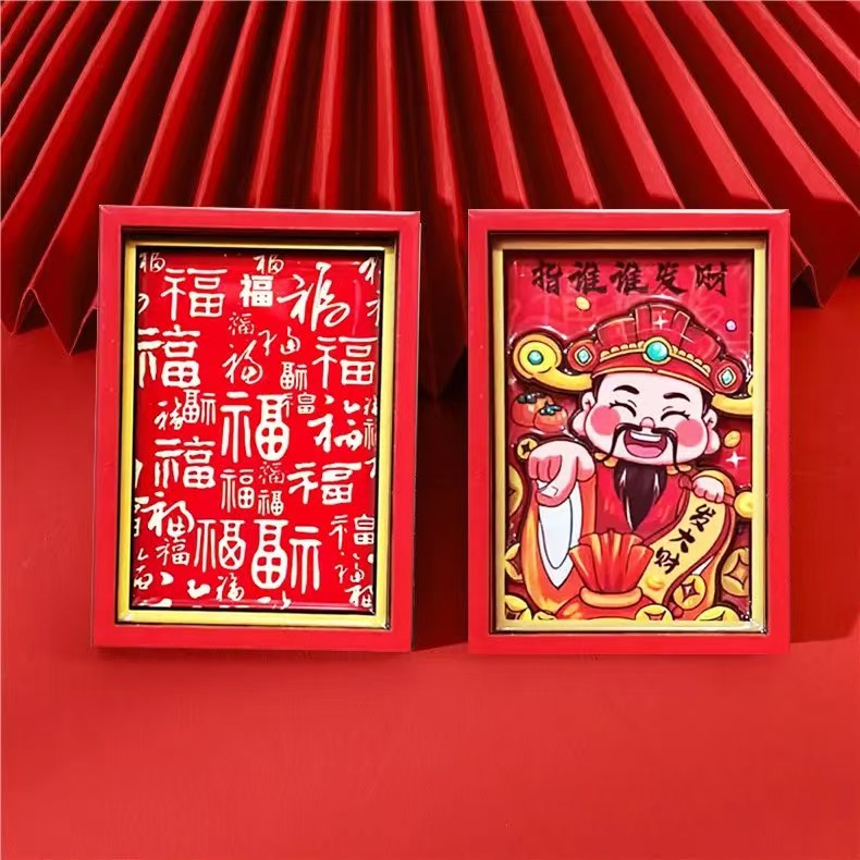 2025新年书法冰箱贴蛇年创意相框家居装饰贴中国风乔迁喜庆磁吸贴