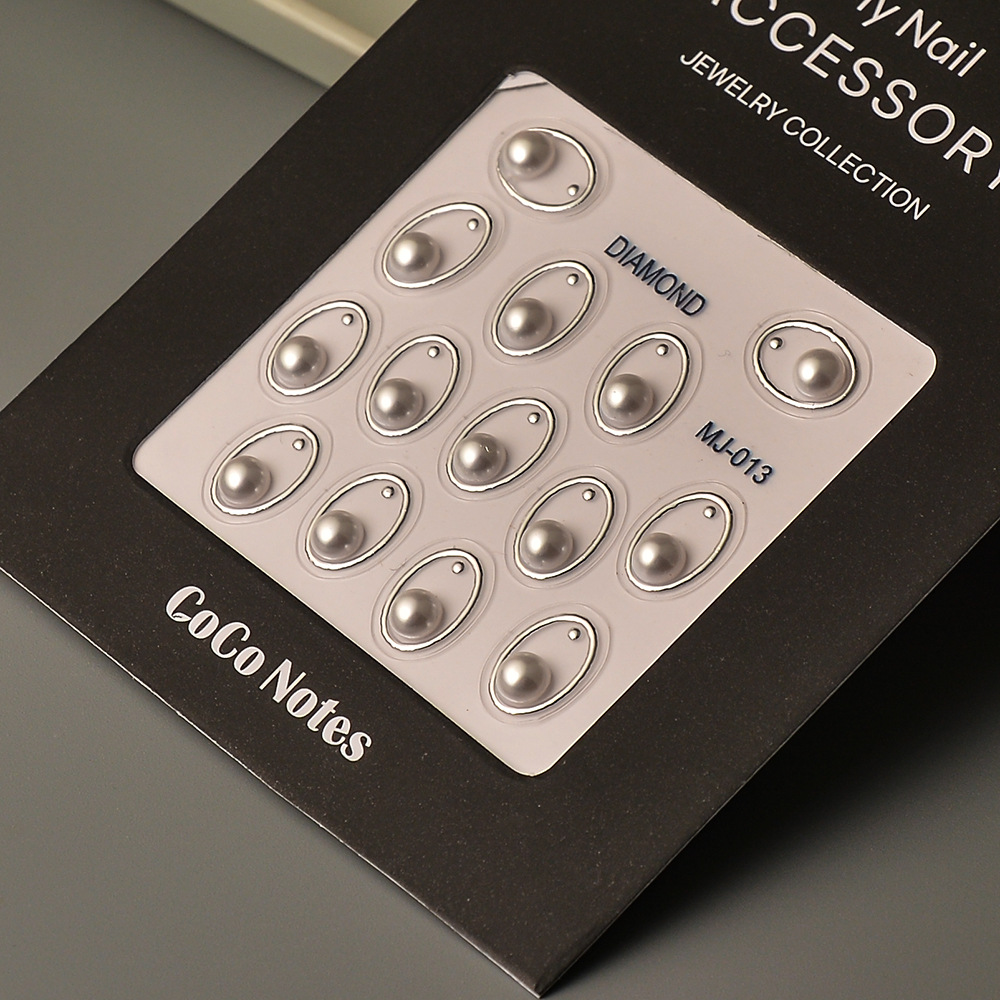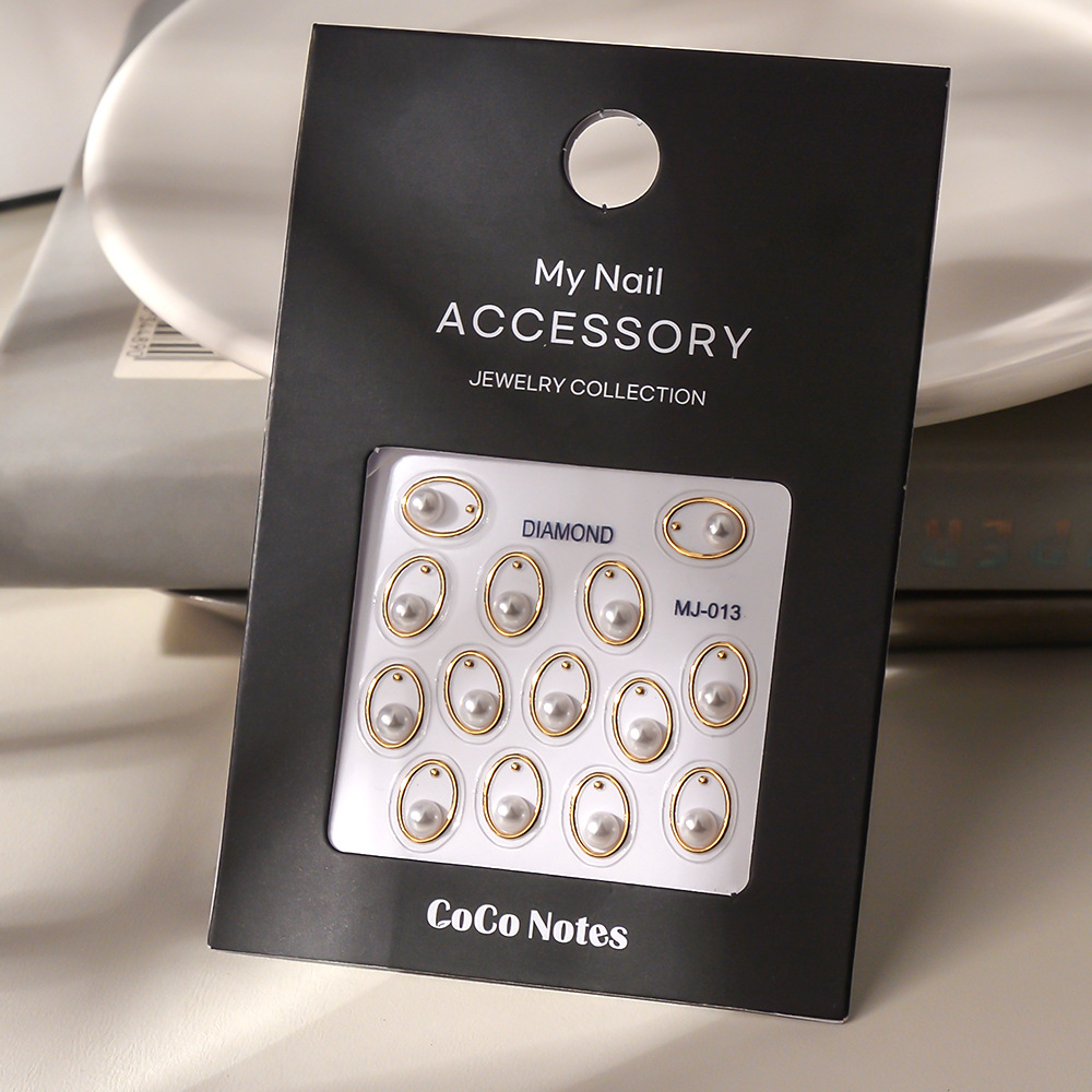 美甲贴纸烫金轻奢仿珍珠小红书同款背胶金属感椭圆圈指甲贴DIY