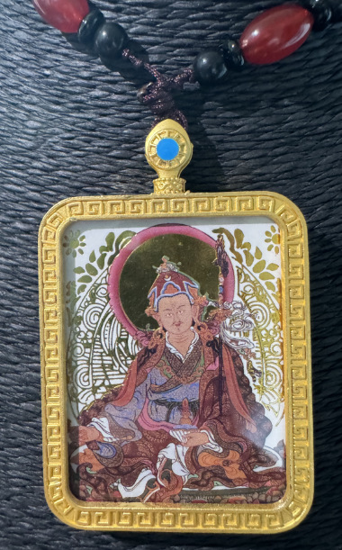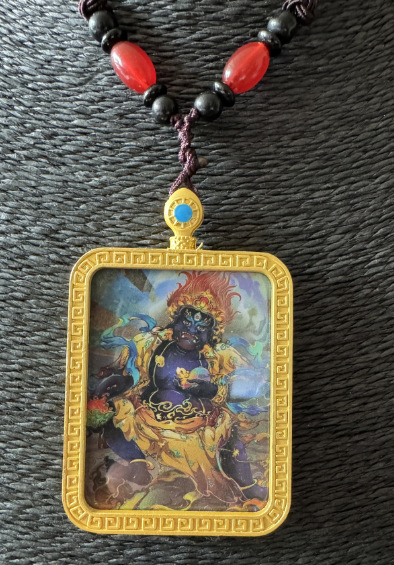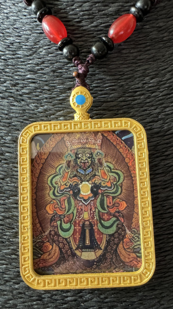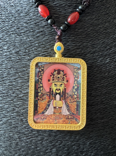 小唐卡藏族手绘绿度母佛像财神吊坠男女佛牌挂件项链镀金保色