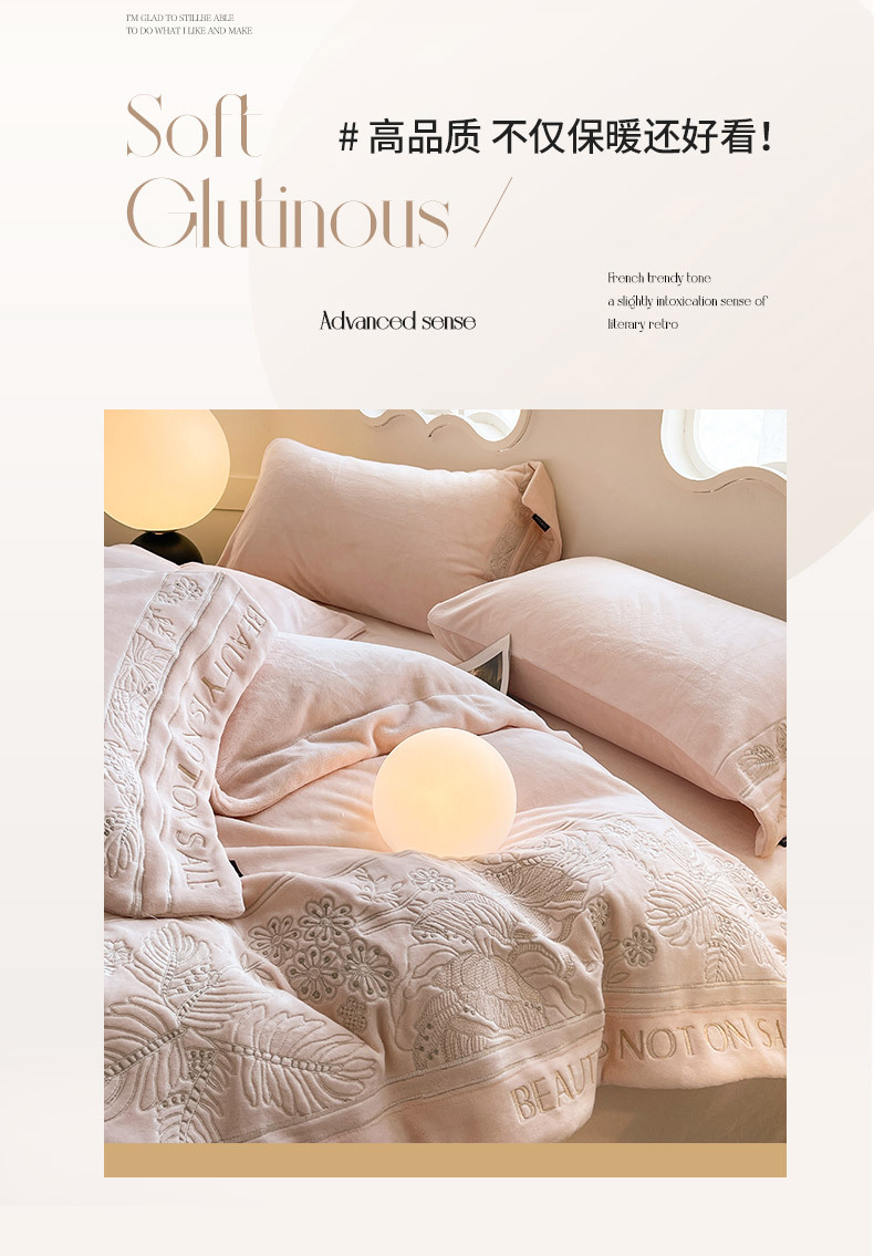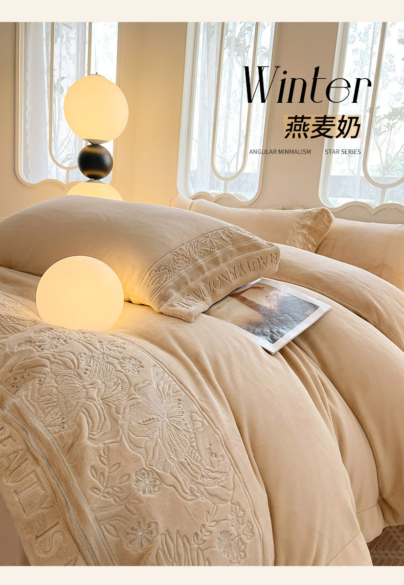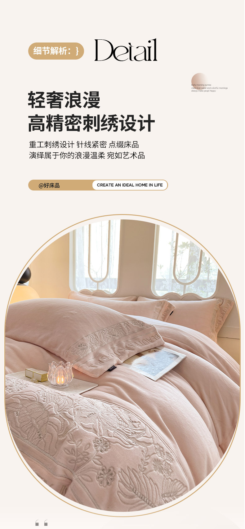 高端轻奢A类母婴级牛奶绒刺绣四件套冬季加厚保暖婴儿绒被套批发