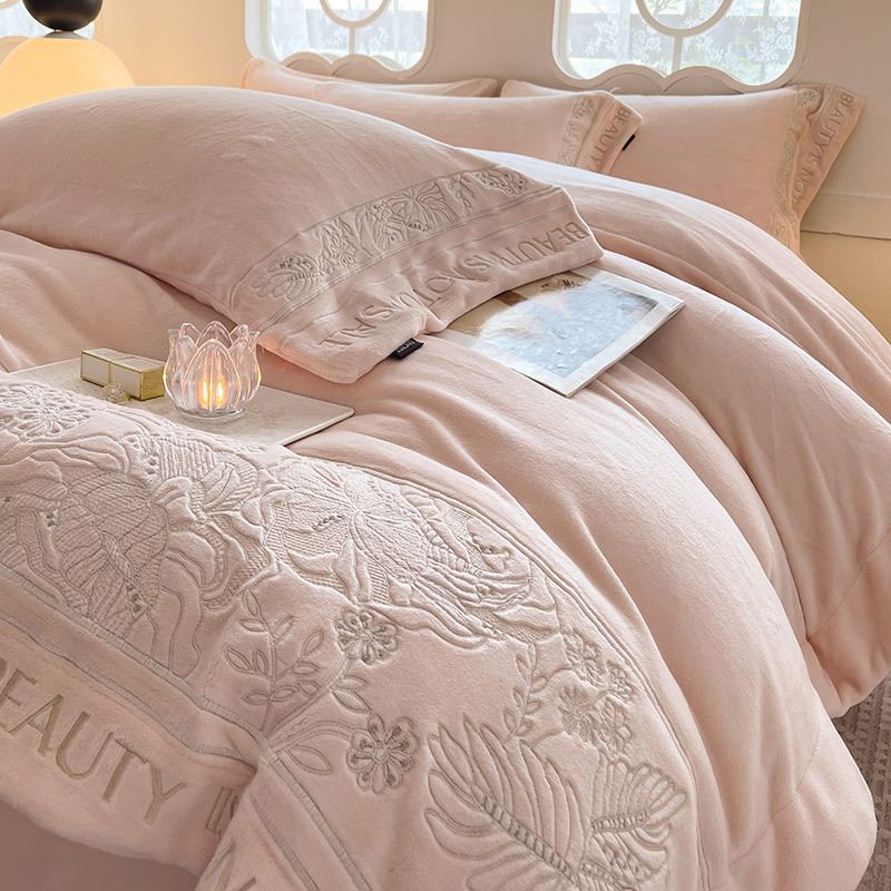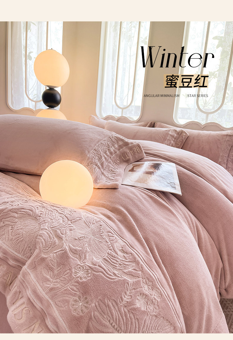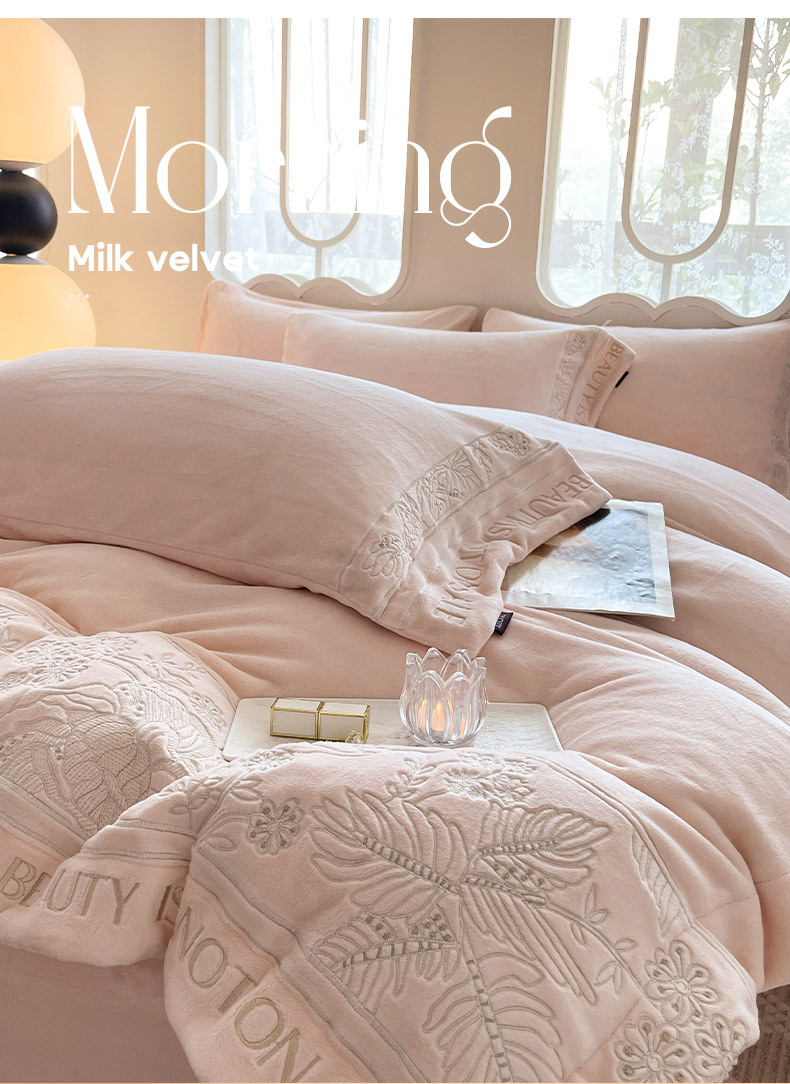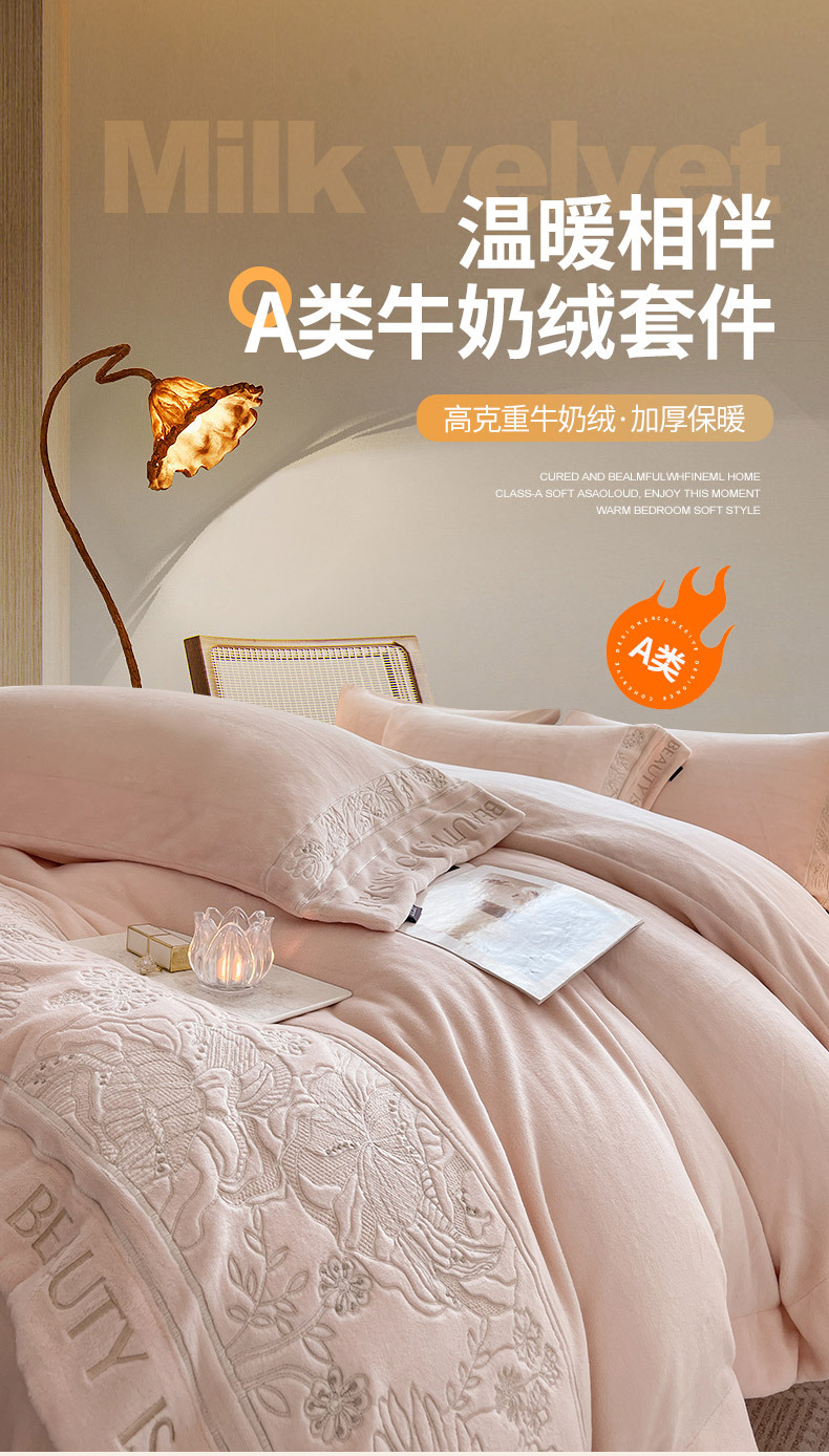 高端轻奢A类母婴级牛奶绒刺绣四件套冬季加厚保暖婴儿绒被套批发