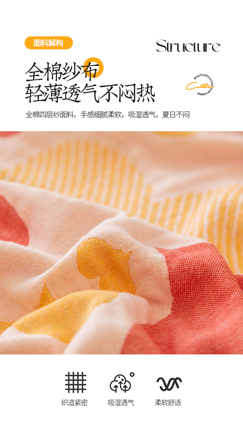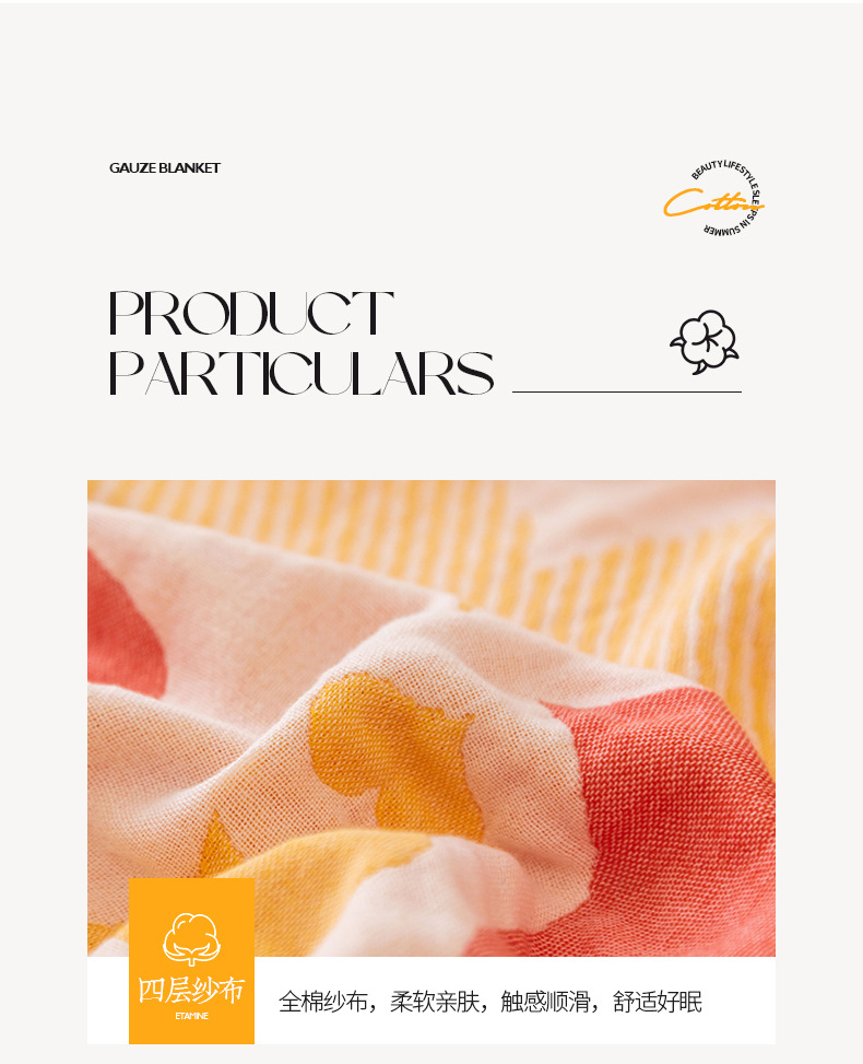 | 200cm*230cm纯棉四层纱毛巾被 | USD $24.91 | 6336 bed available |