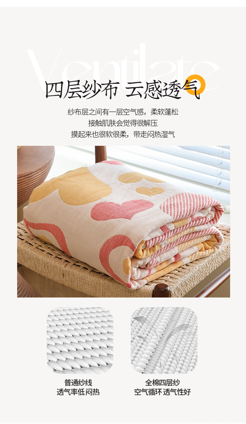 | 120cm*150cm纯棉四层纱毛巾被 | USD $14.36 | 1126 bed available |