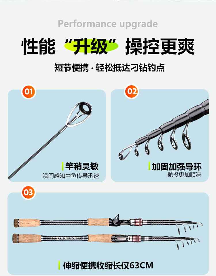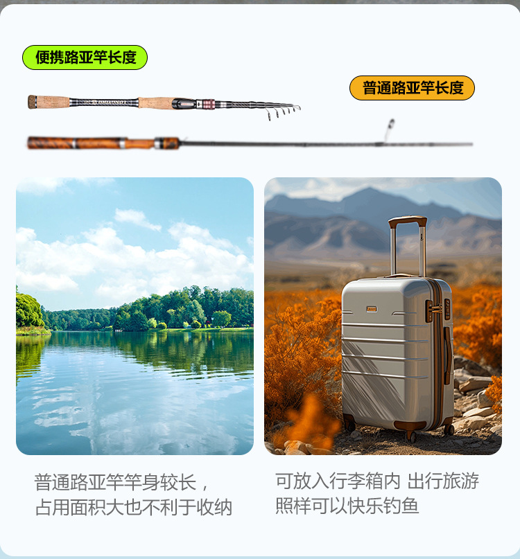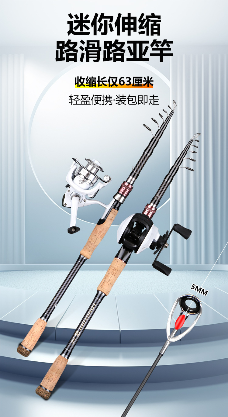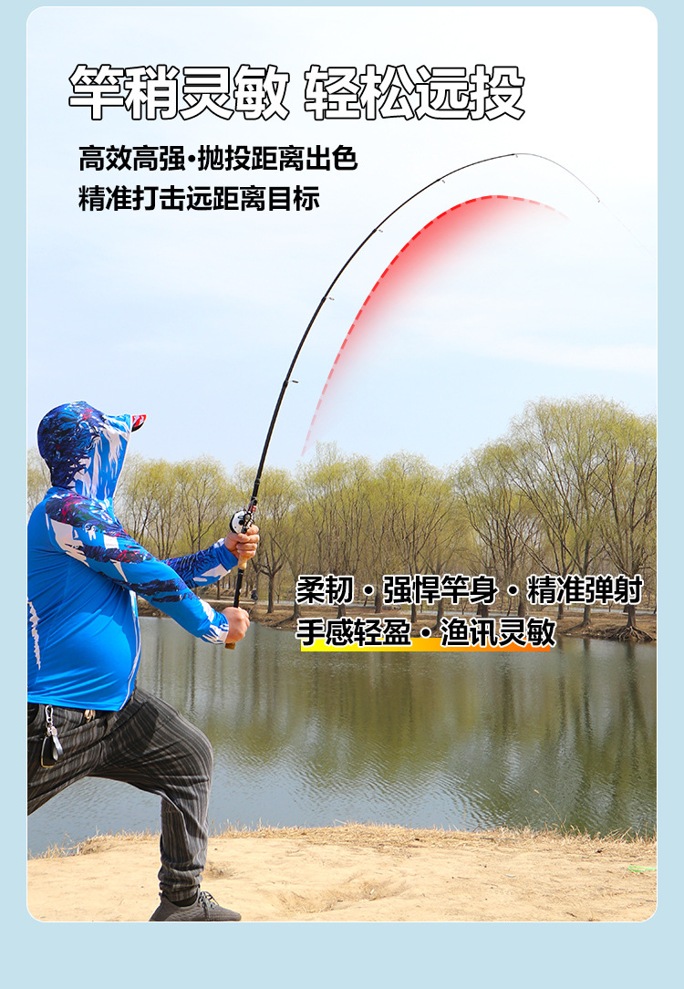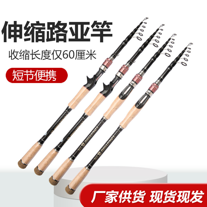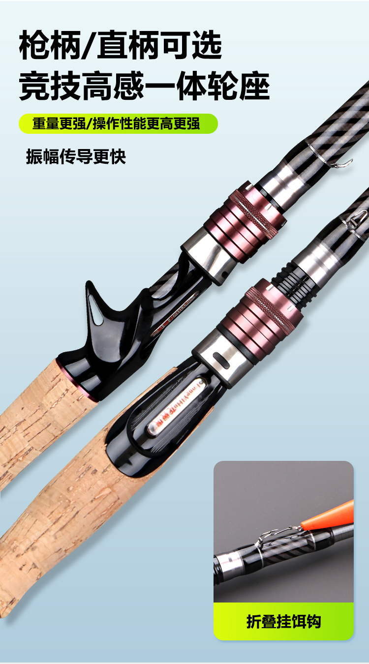 碳素伸缩路亚竿批发便携短节钓鱼竿M调轻硬枪柄直柄海竿路滑杆