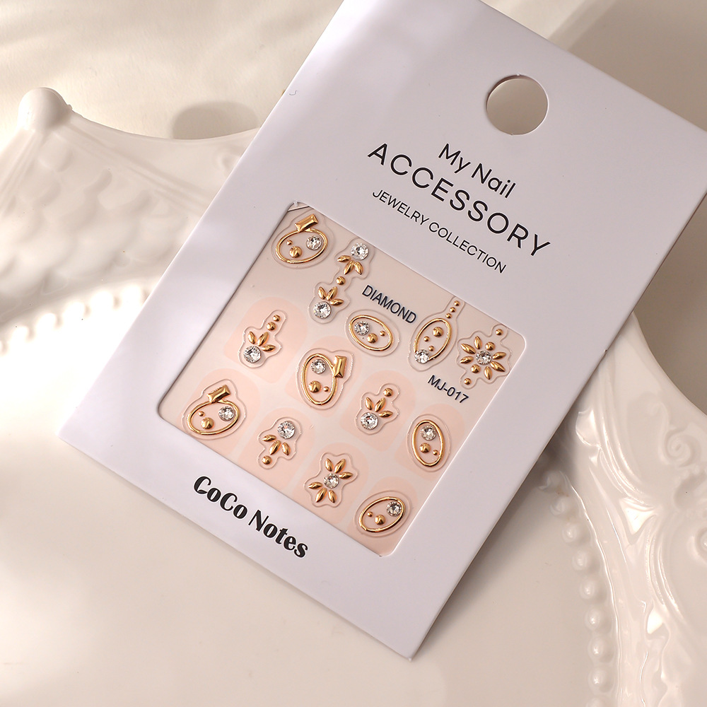 美甲贴纸冬季显白美甲饰品背胶镂空椭圆形金属感烫金K9美甲钻贴纸