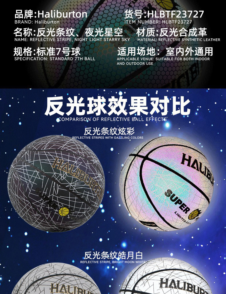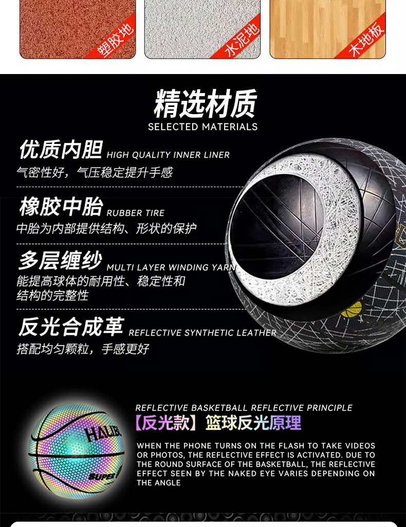 反光篮球夜光发光7号成人夜间训练男生女学生5号儿童蓝球耐磨跨境