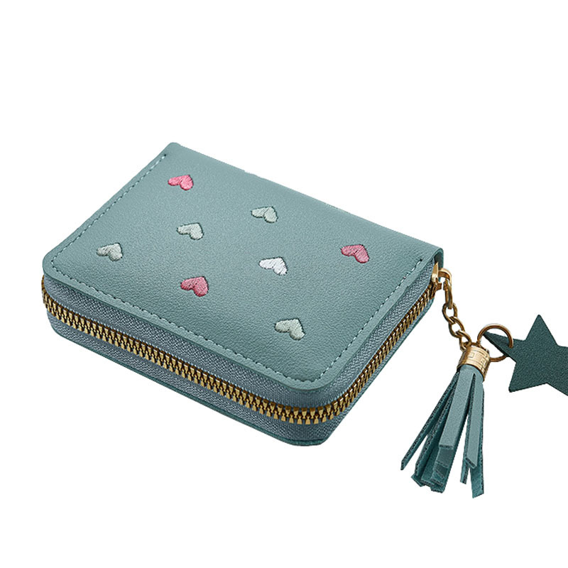 新款短款女士零钱包可爱心韩版爱心绣花儿童收纳女生迷你小卡包