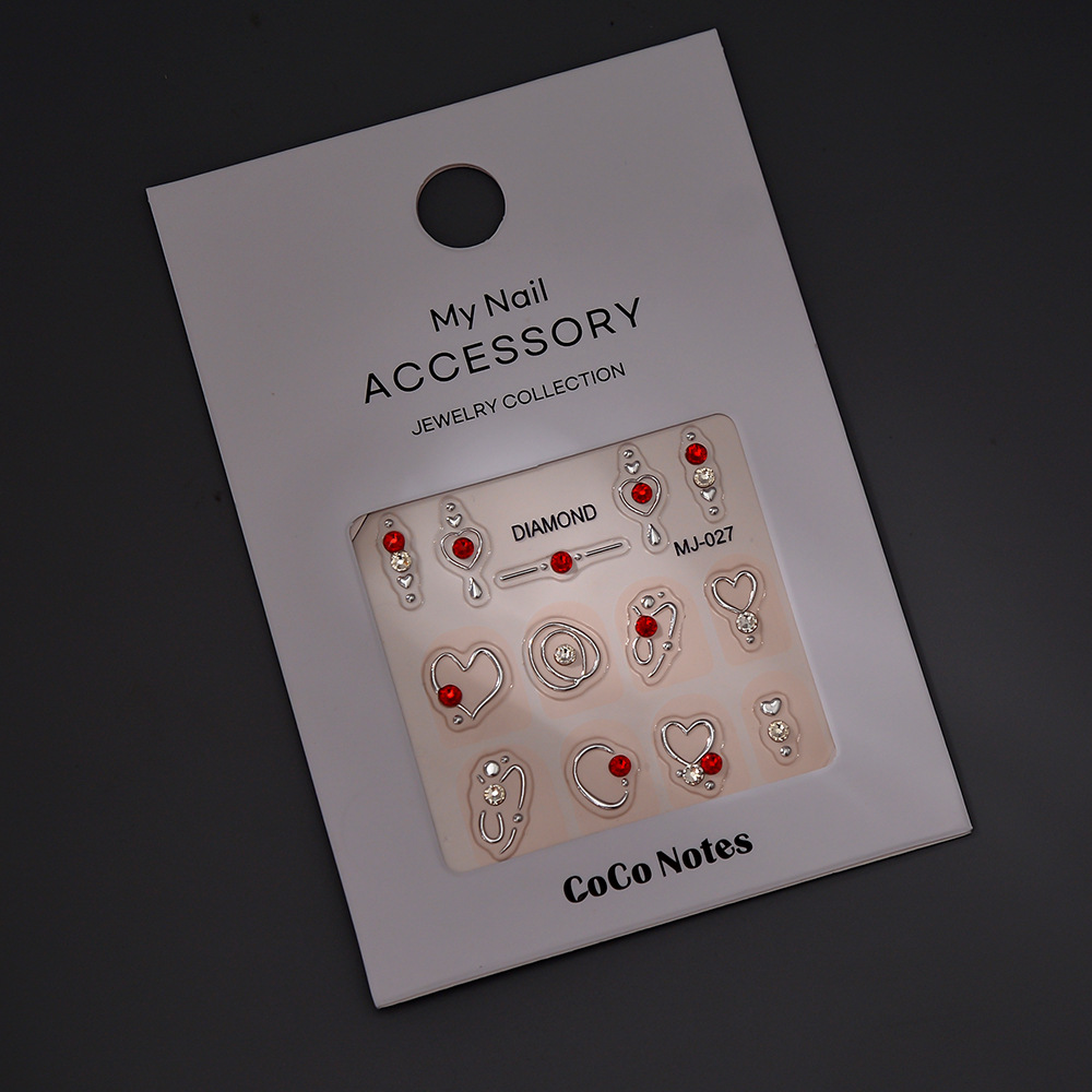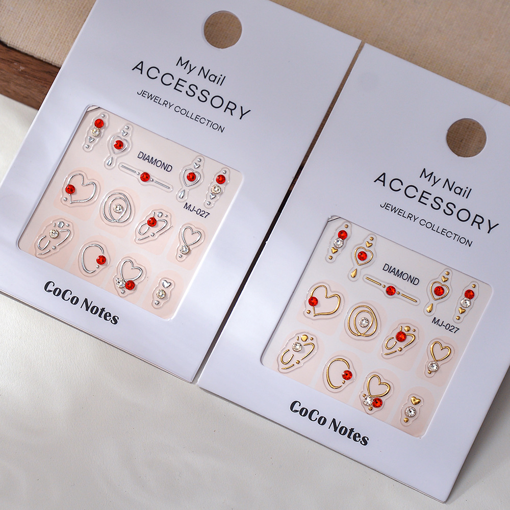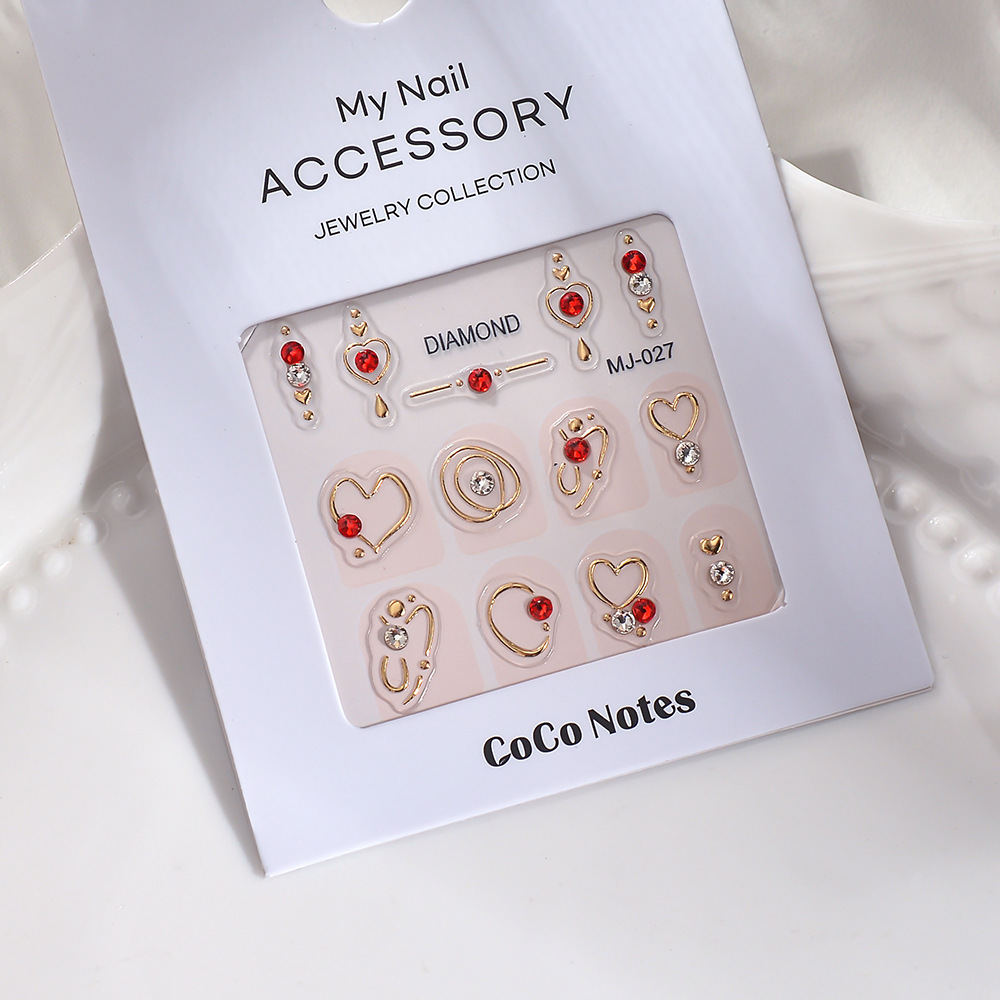 高品K9玻璃钻镂空美甲贴纸烫金立体爱心彩钻背胶指甲贴 工厂批发