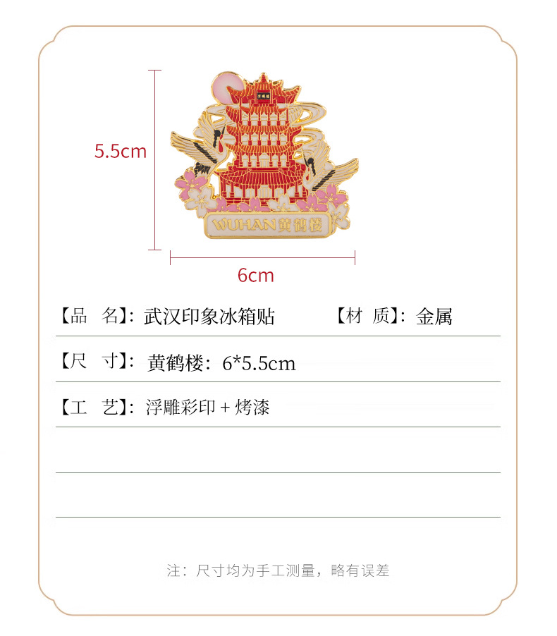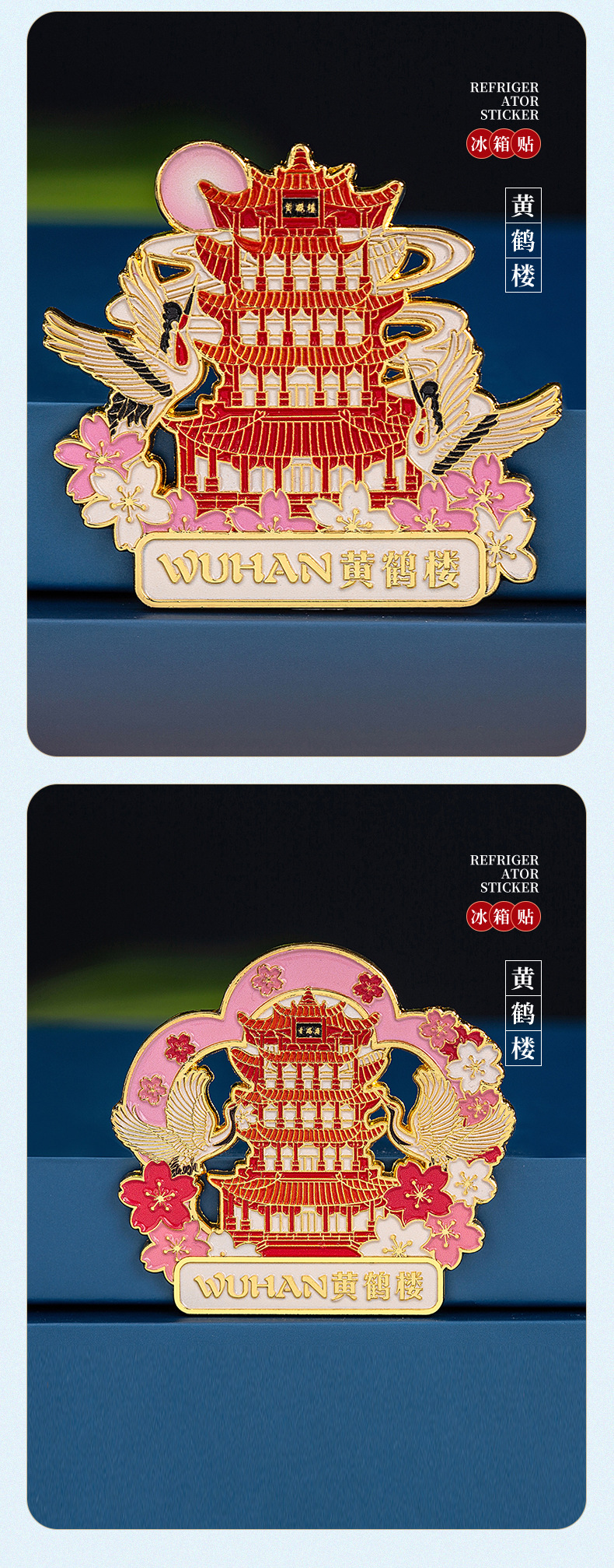 黄鹤楼冰箱贴 新款武汉大学湖北博物馆城市旅游文创金属冰箱贴
