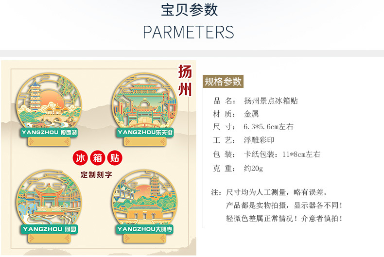 扬州瘦西湖金属冰箱贴何园大明寺东关街文创景点旅游纪念刻字