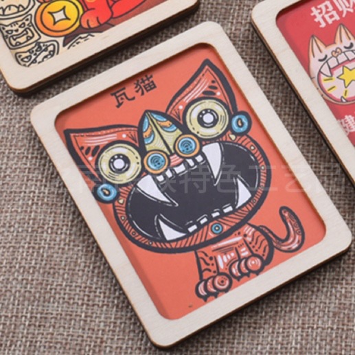 云南丽江大理木质木制瓦猫甲马民俗神仙祈福版抽象冰箱贴旅游纪念
