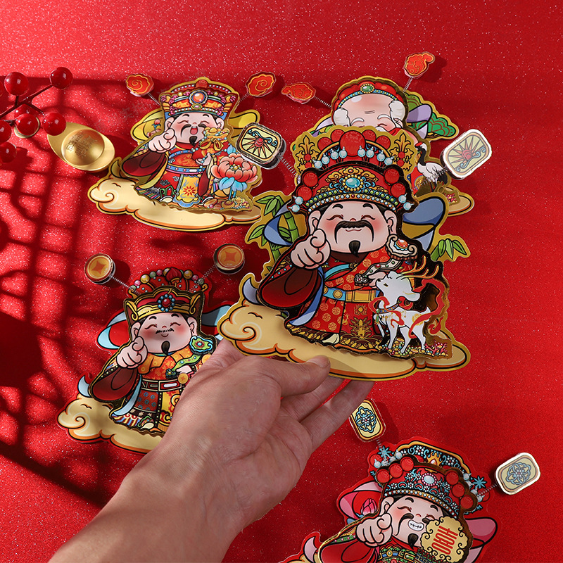 2025摇头财神贴五福临门冰箱贴中国风磁吸国潮利是封新年装饰挂件