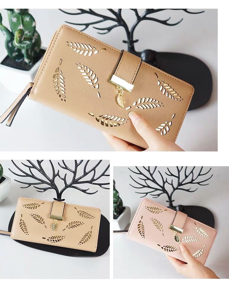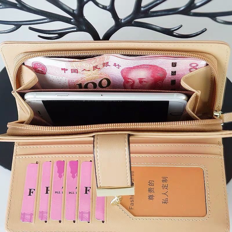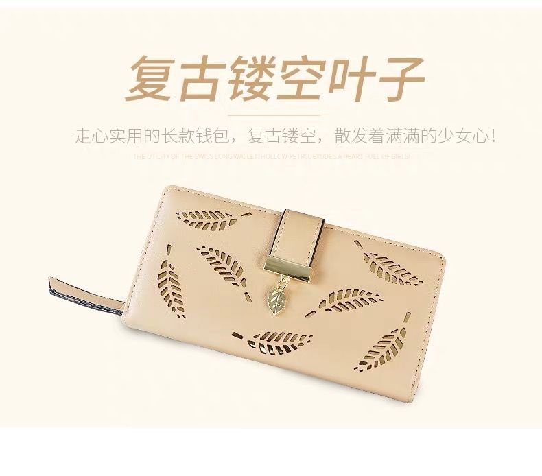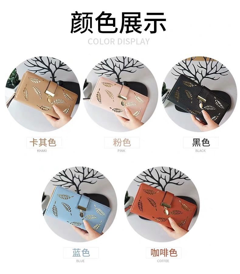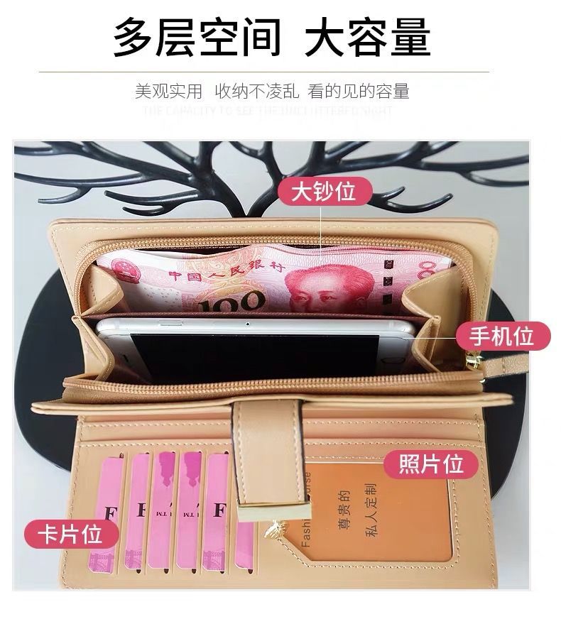 简约甜美长款钱包年轻人三合一零钱夹压花防磁多卡位卡包气质钱夹