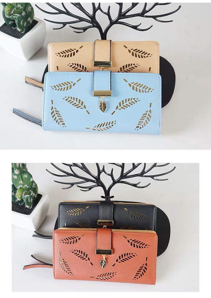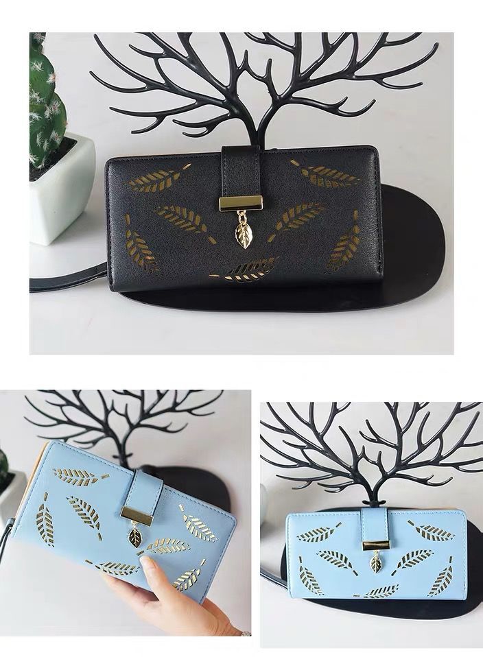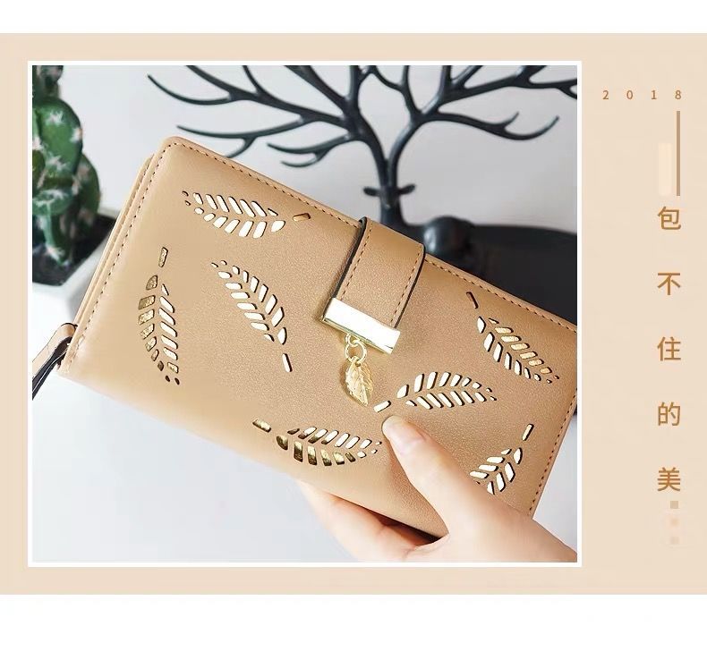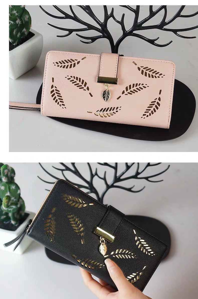 简约甜美长款钱包年轻人三合一零钱夹压花防磁多卡位卡包气质钱夹