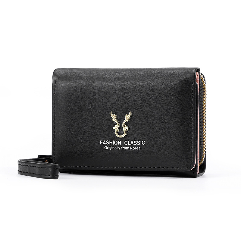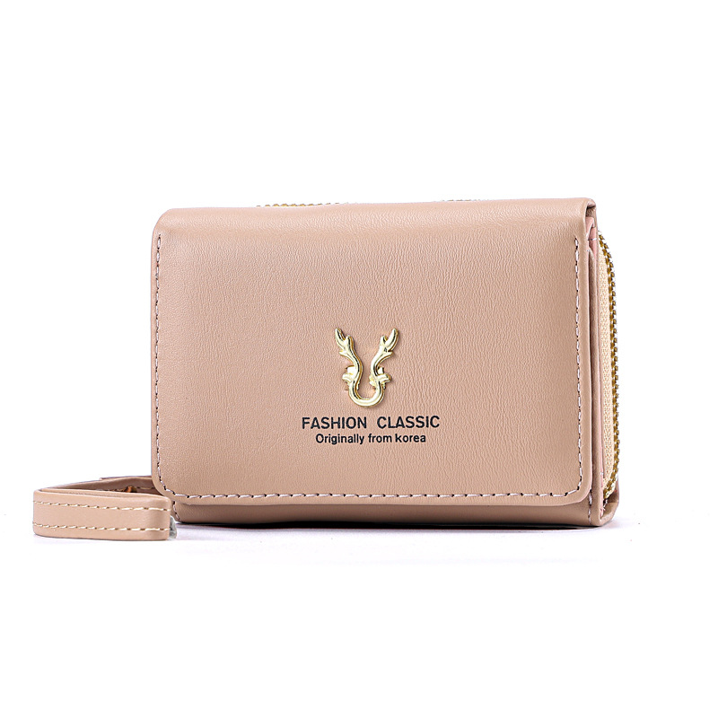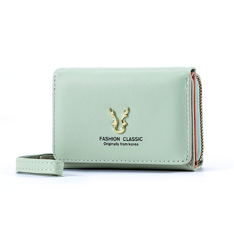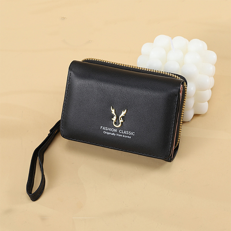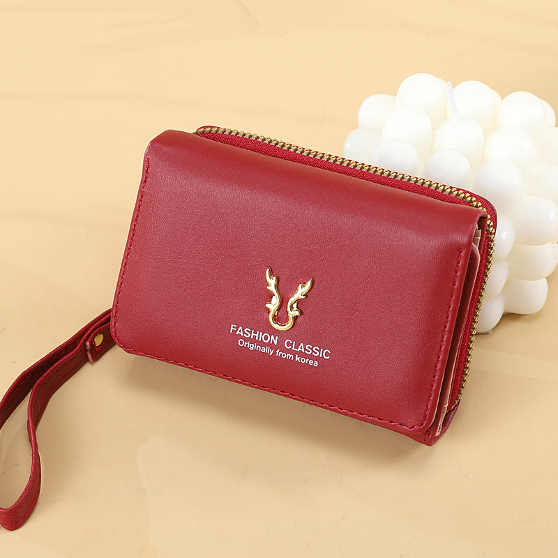 新款女士钱包PU皮革短款鹿角钱包迷你拉链零钱包卡通三折搭扣卡包