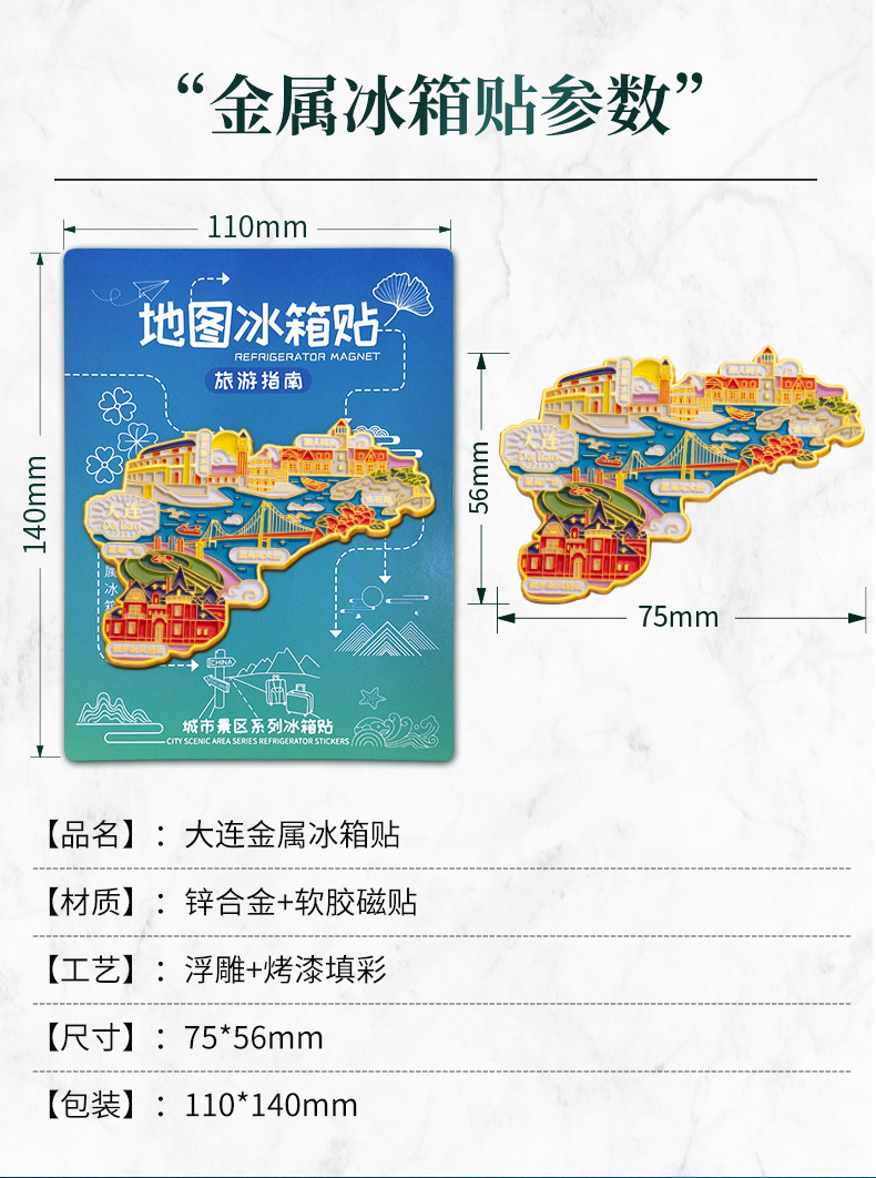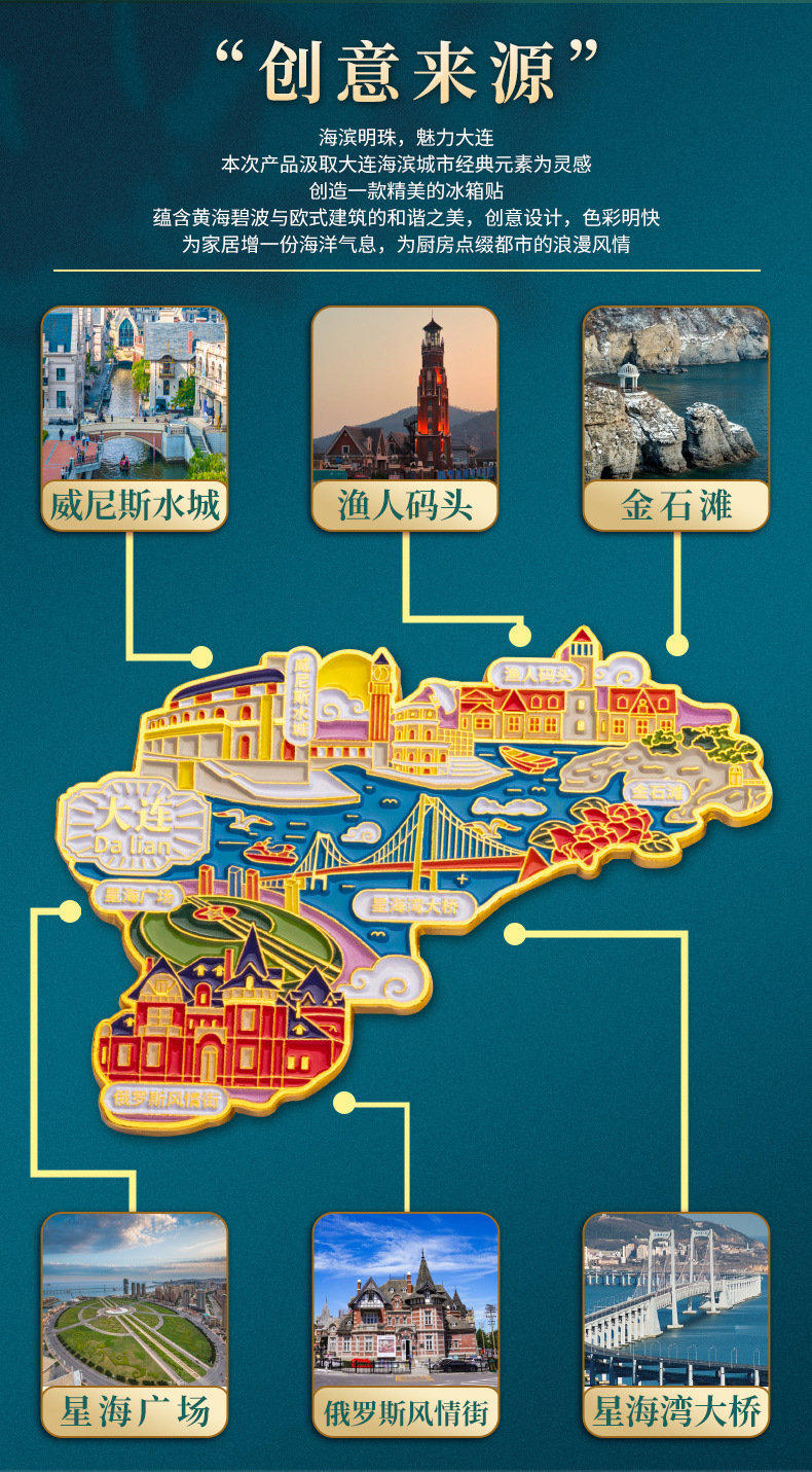 辽宁大连金属城市文创冰箱贴威尼斯风情街渔人码头旅游景点纪念品