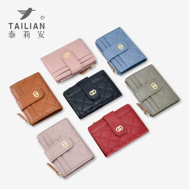 Tailian钱包女士小香风绣线多卡位零钱包女跨境钱夹 wallet泰莉安