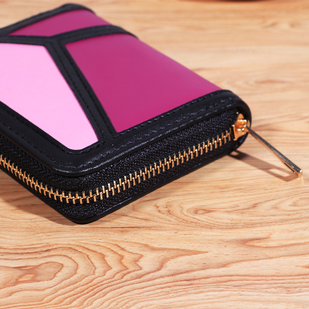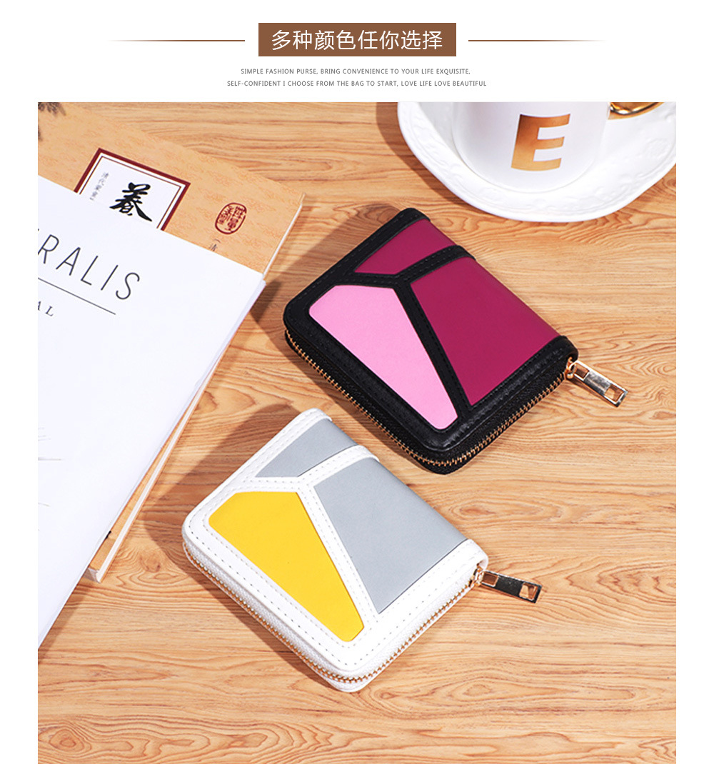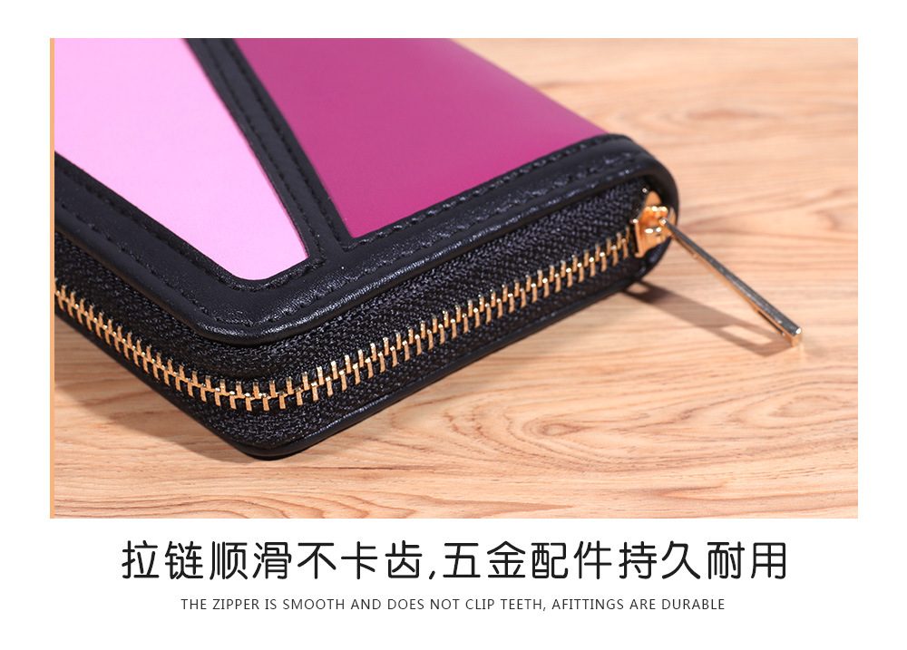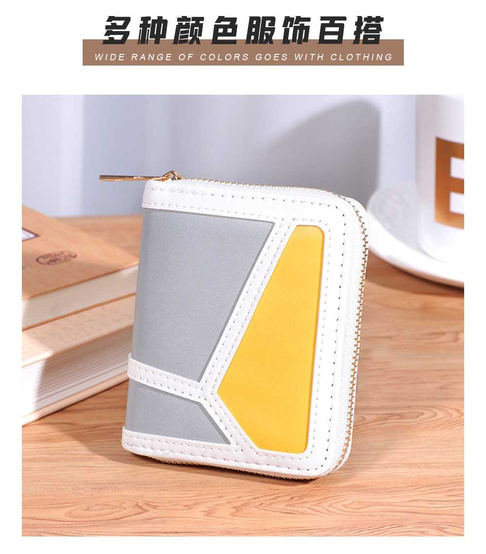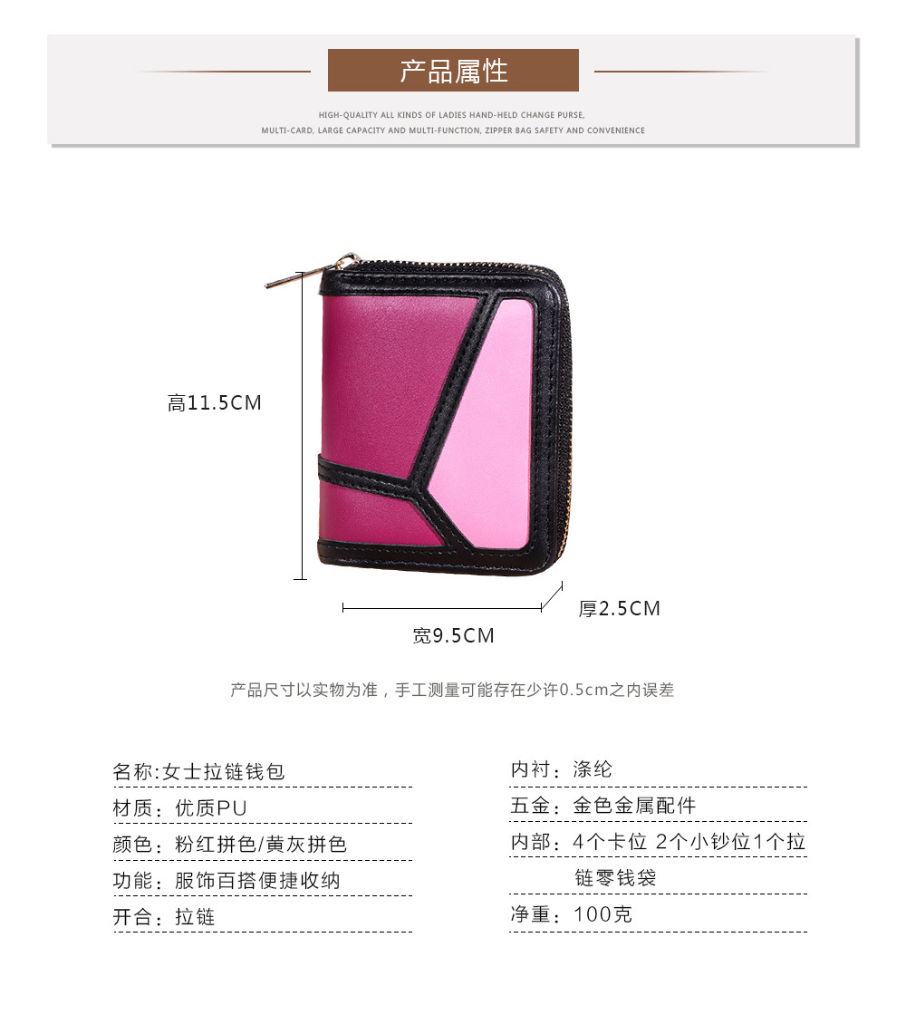 跨境货源 PU撞色拼接女士钱包 单拉链多功能大容量短款手拿包