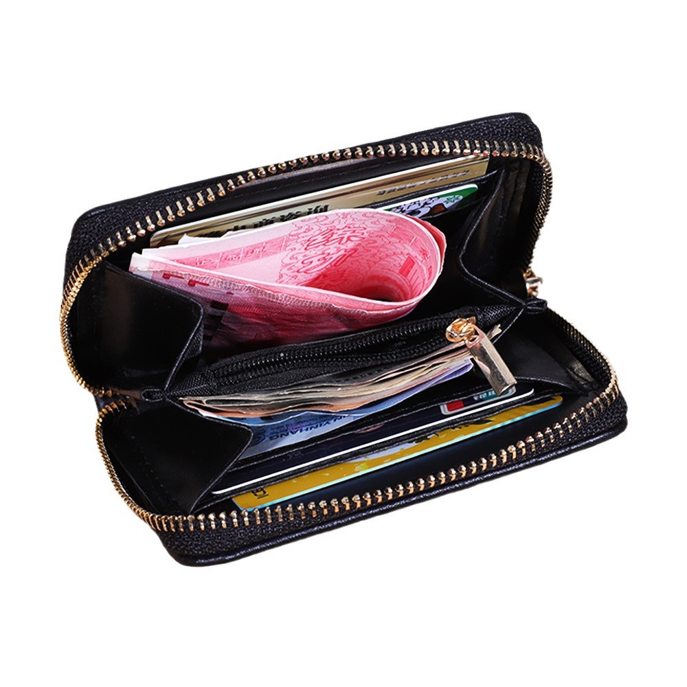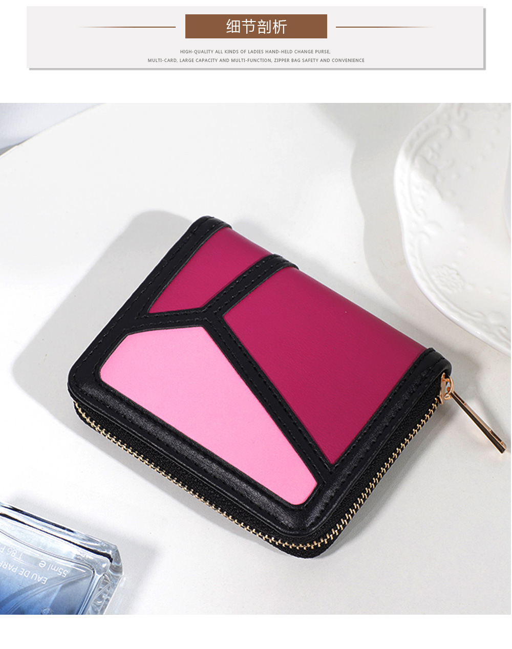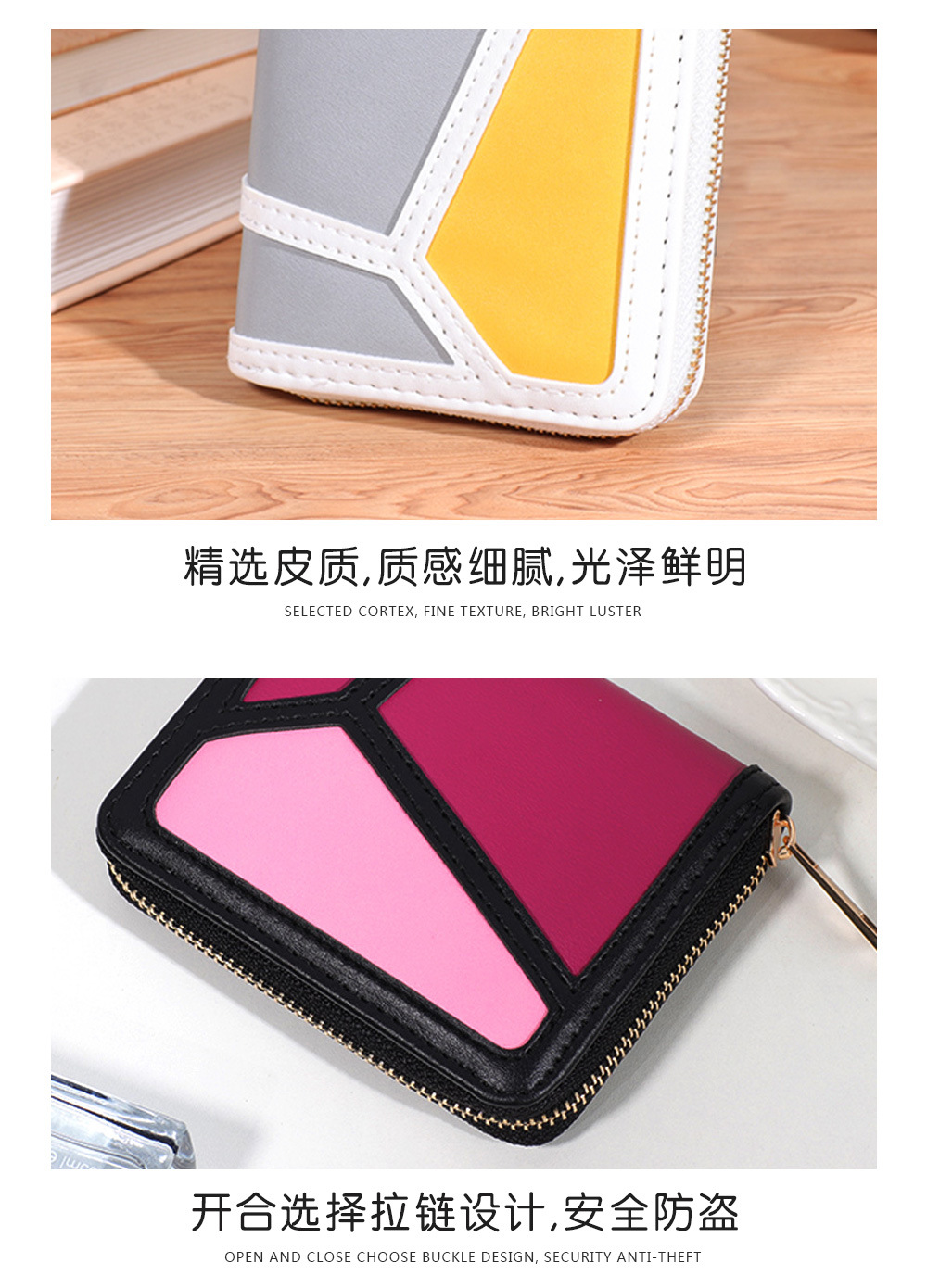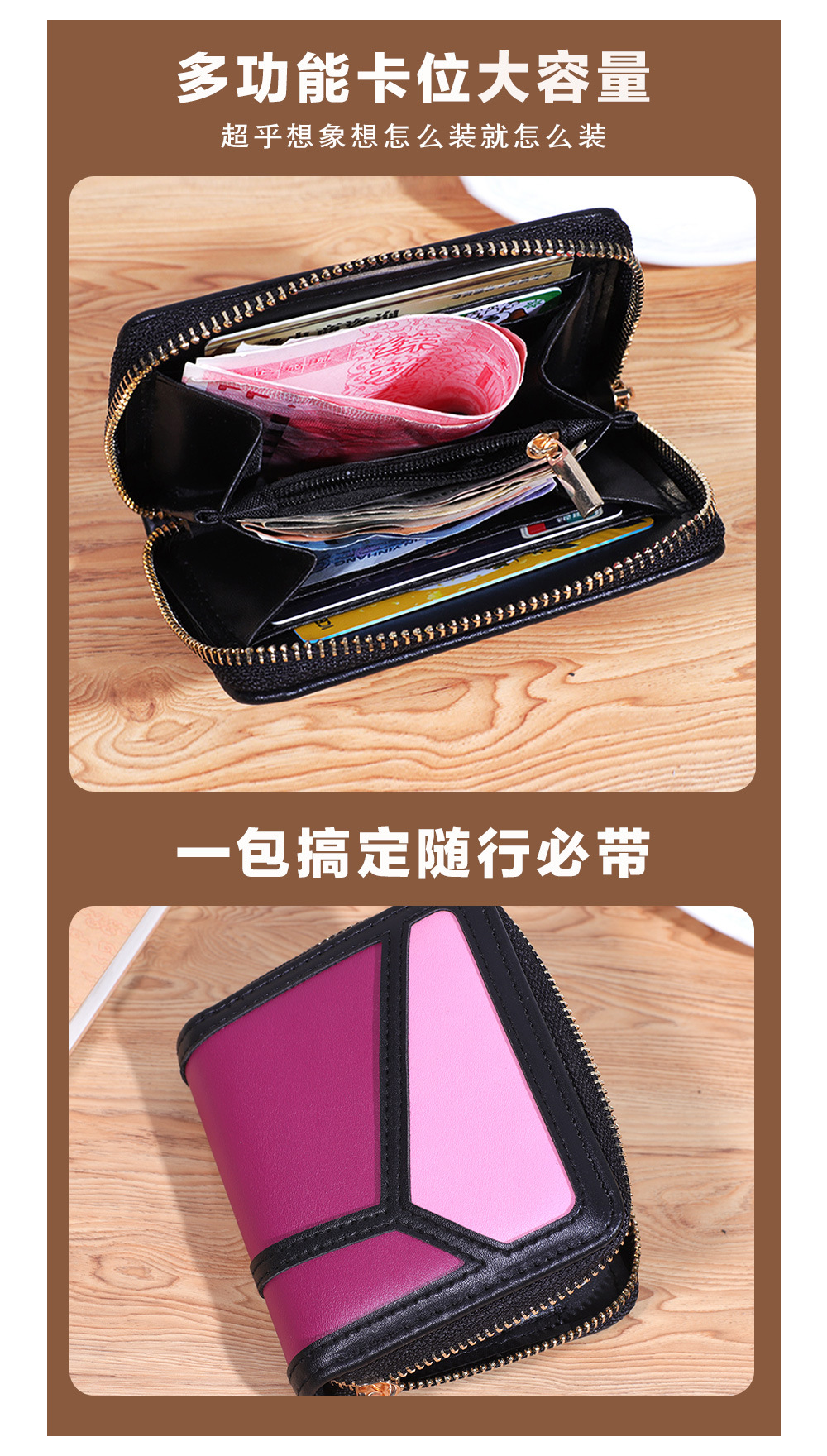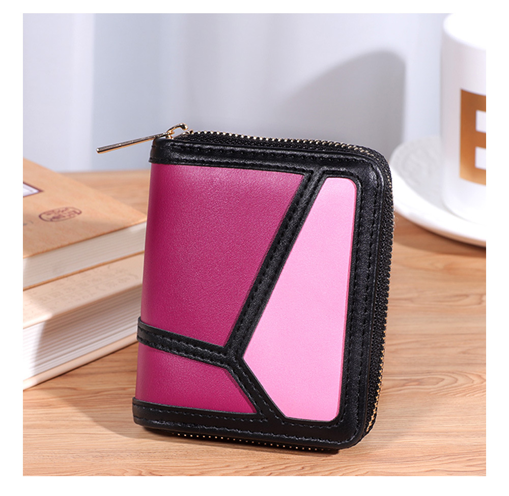 跨境货源 PU撞色拼接女士钱包 单拉链多功能大容量短款手拿包