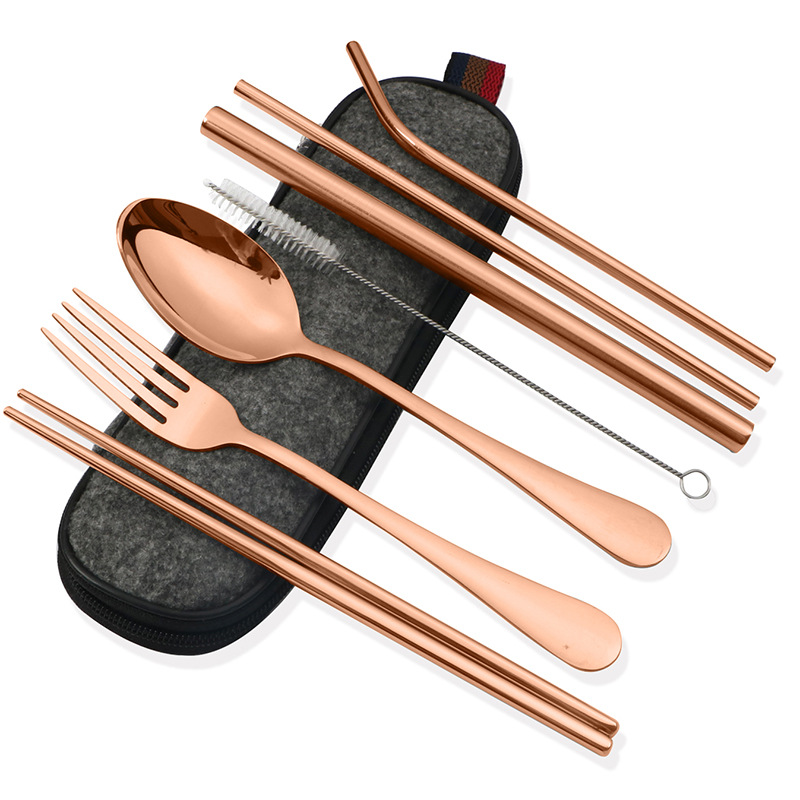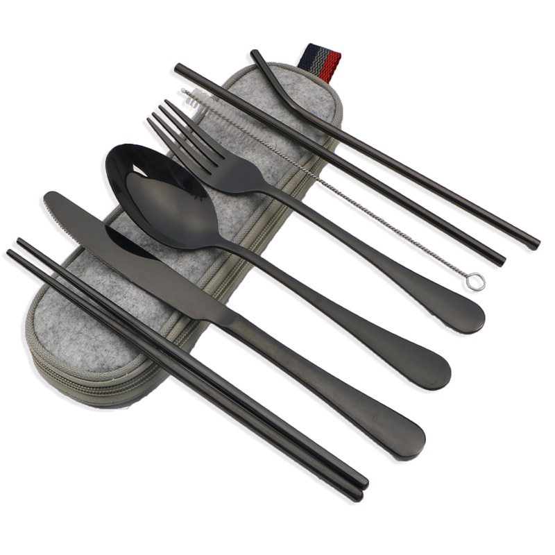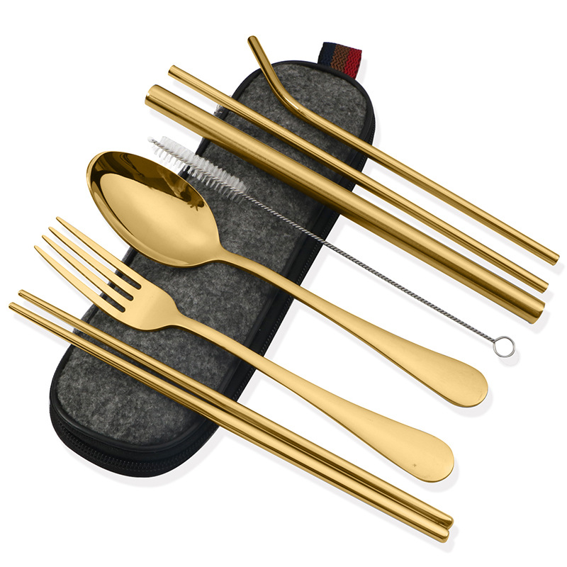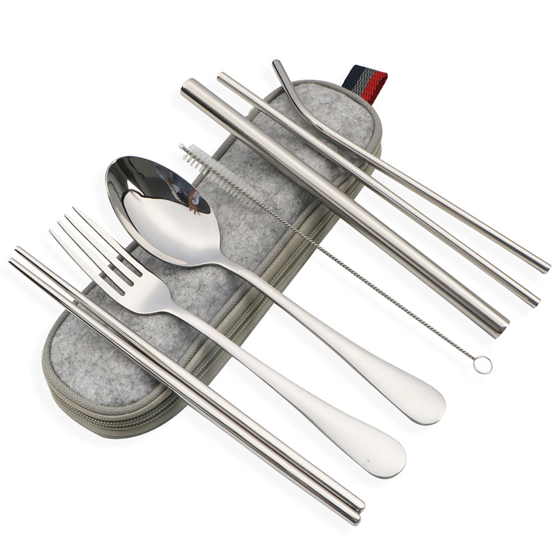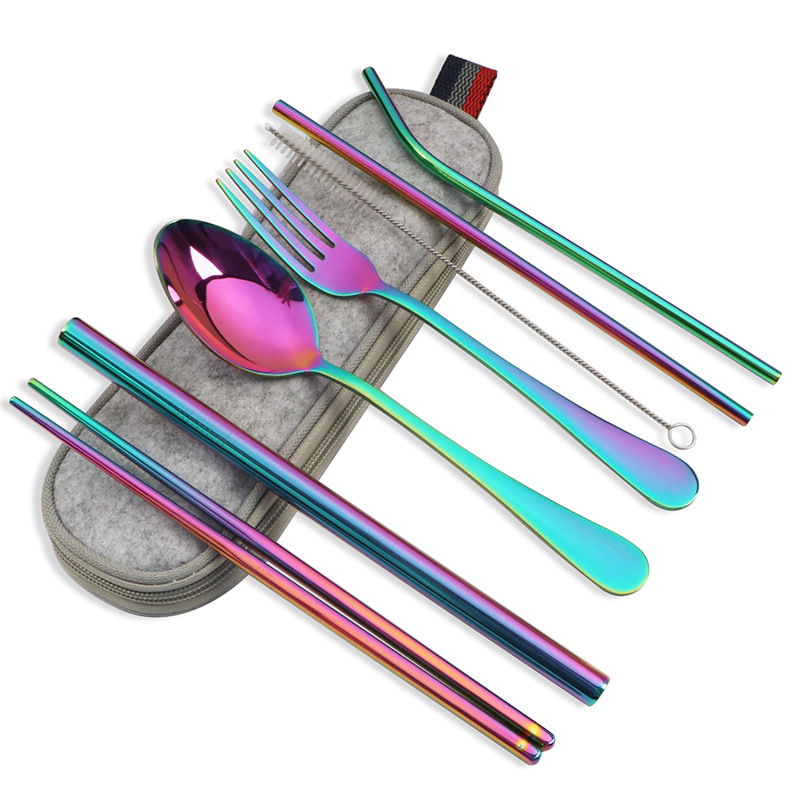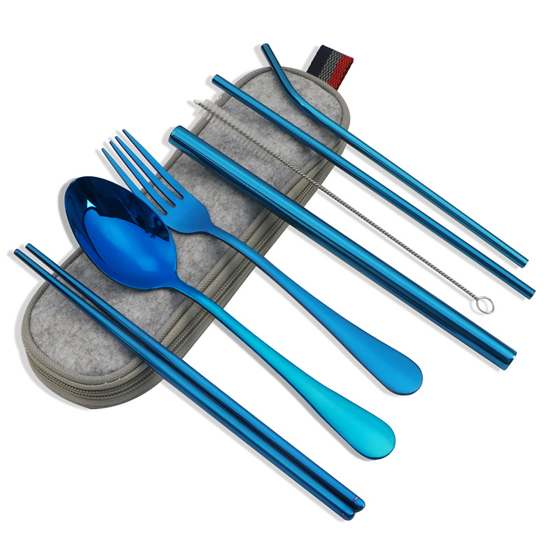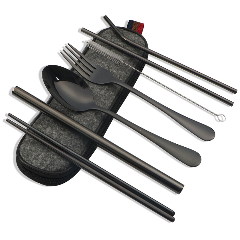 不锈钢便携式餐具304不锈钢吸管 筷子西餐刀叉汤勺组合套装七件套