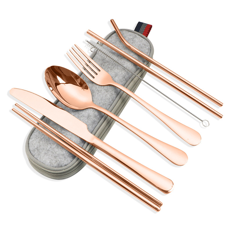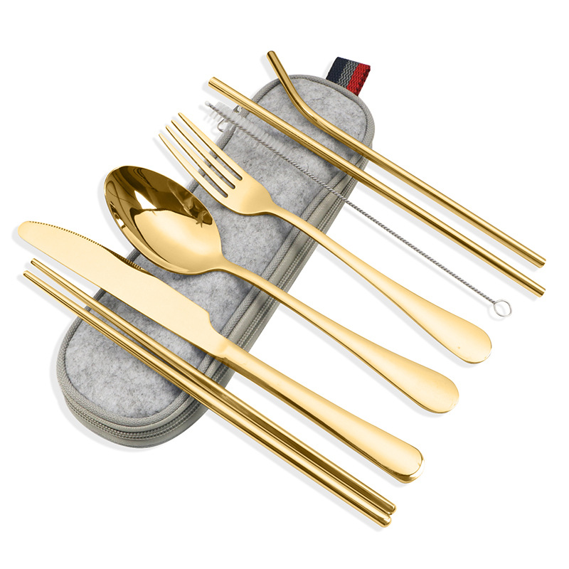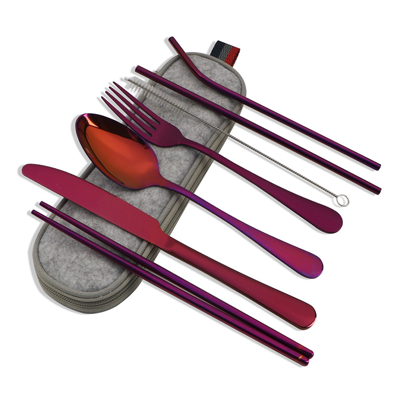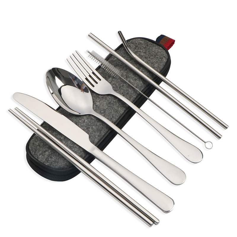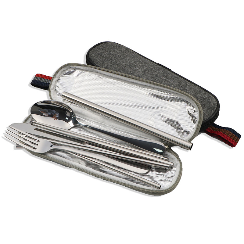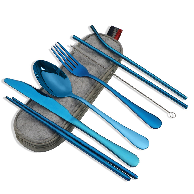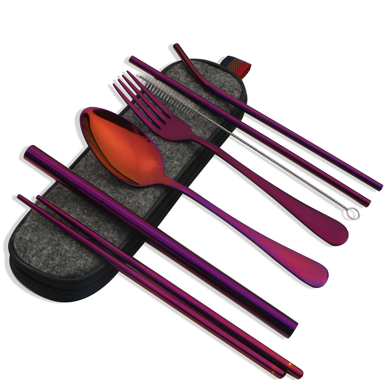 不锈钢便携式餐具304不锈钢吸管 筷子西餐刀叉汤勺组合套装七件套