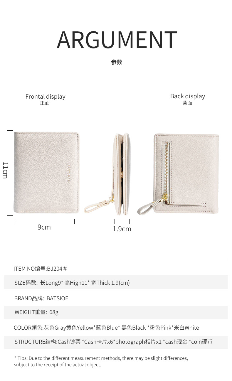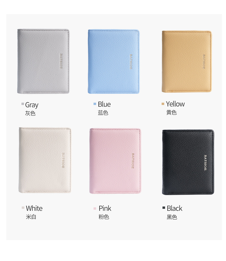 BATSIOE新款纯色质感学生包 短款女士钱包简约高档wallet零钱包女
