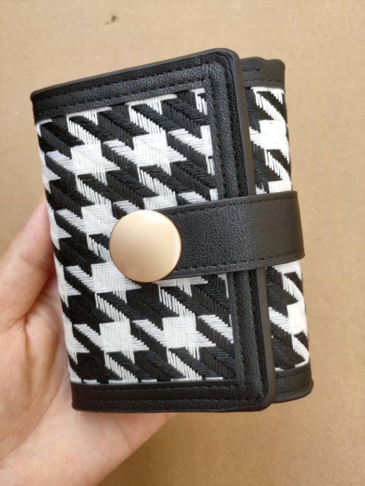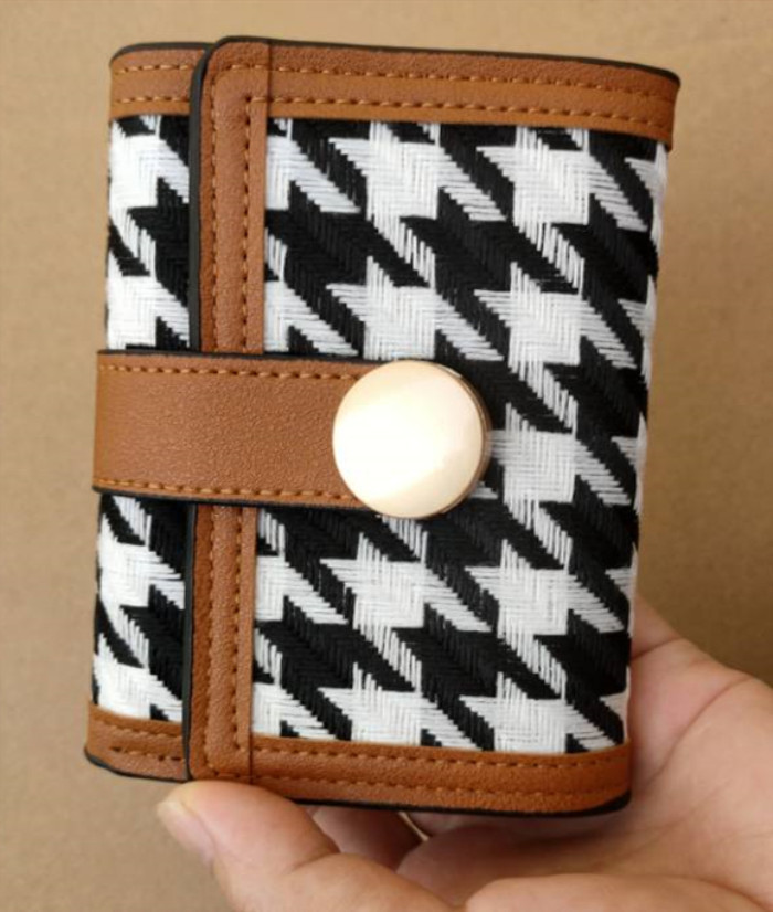 高颜值千鸟格帆布女短款钱夹搭扣手拿包长款女士钱包高级感零钱包