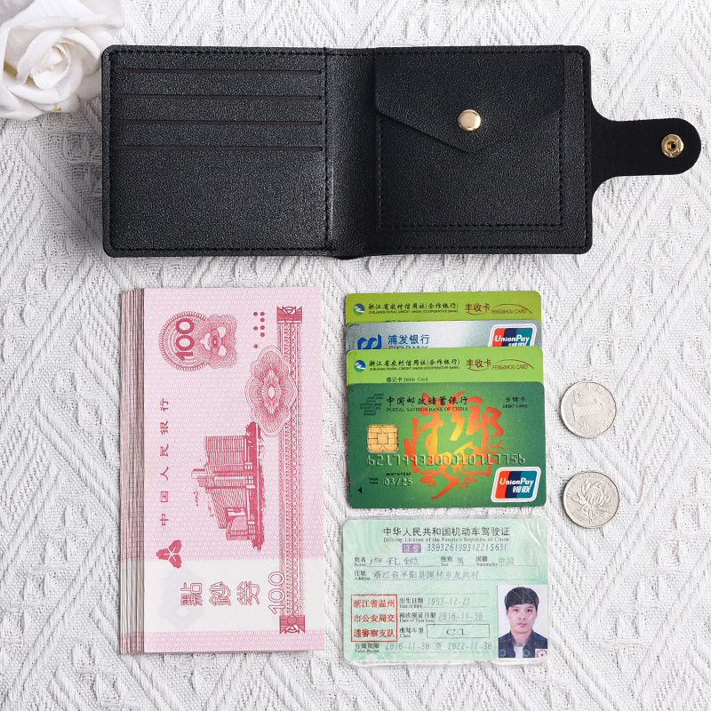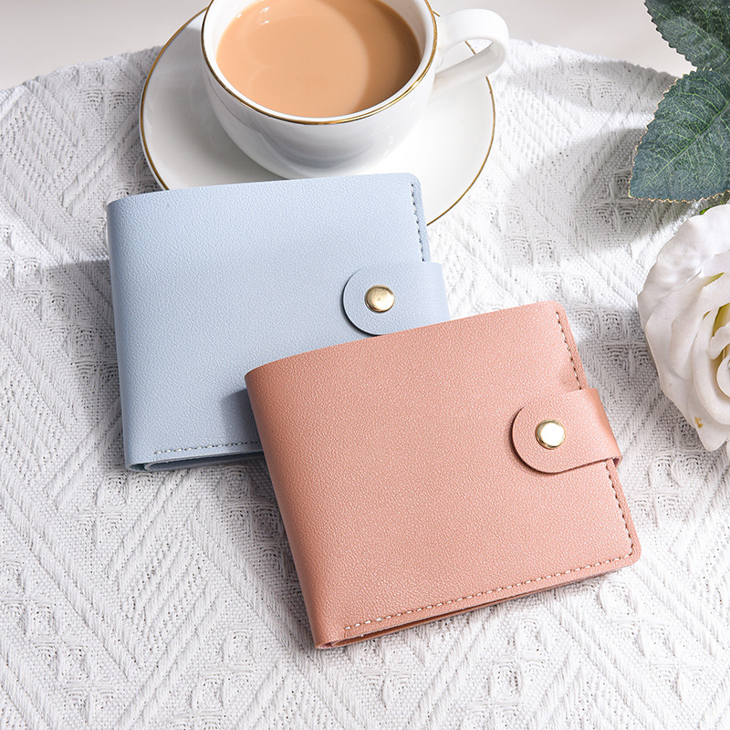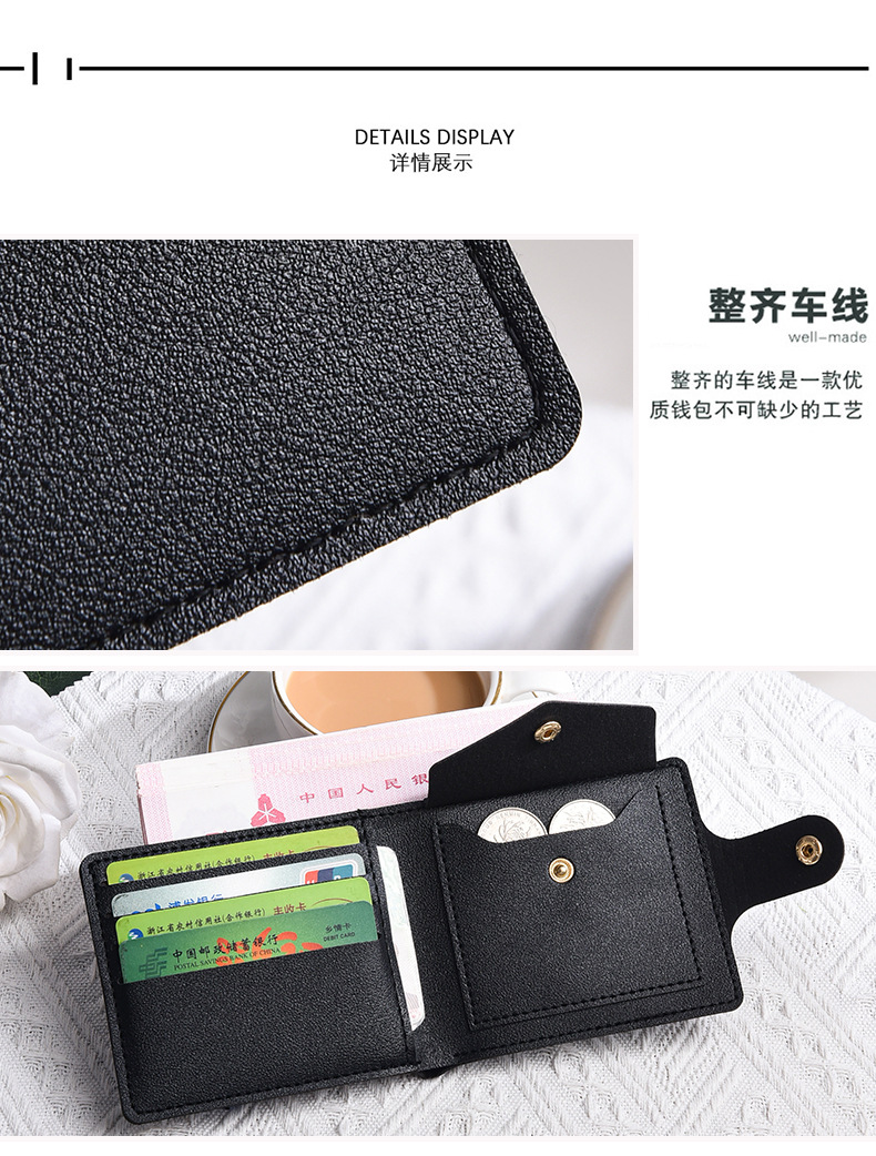 新款迷你小钱包女包短款零钱夹带扣子碎银代钱包多卡位外贸证件包