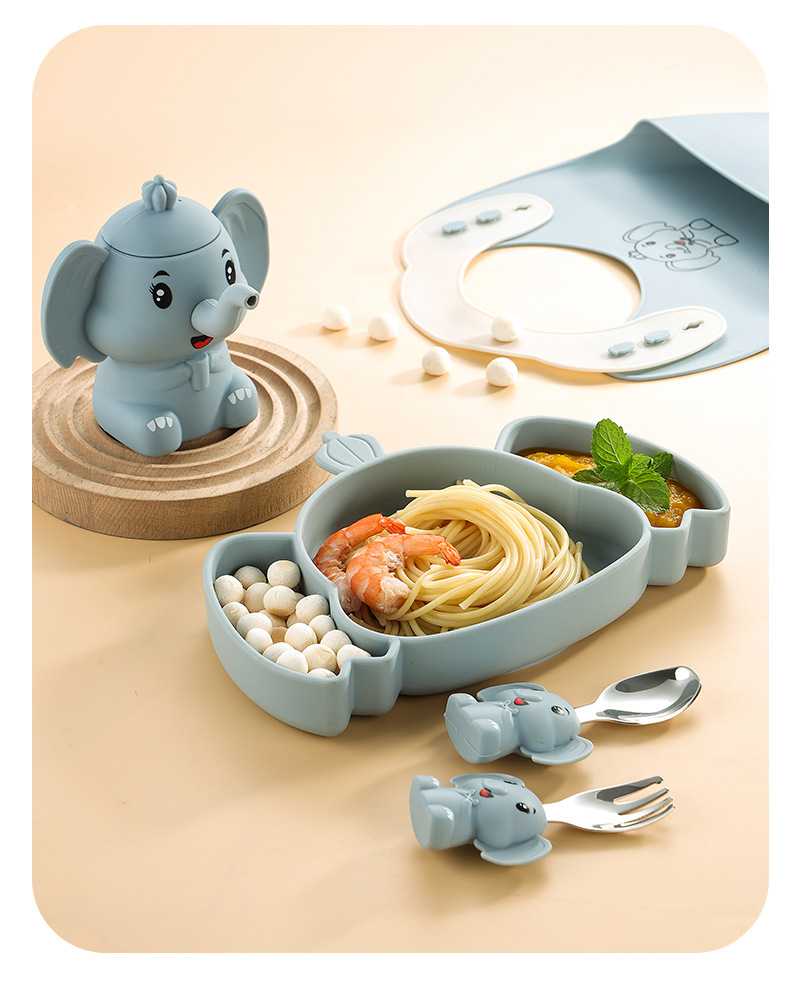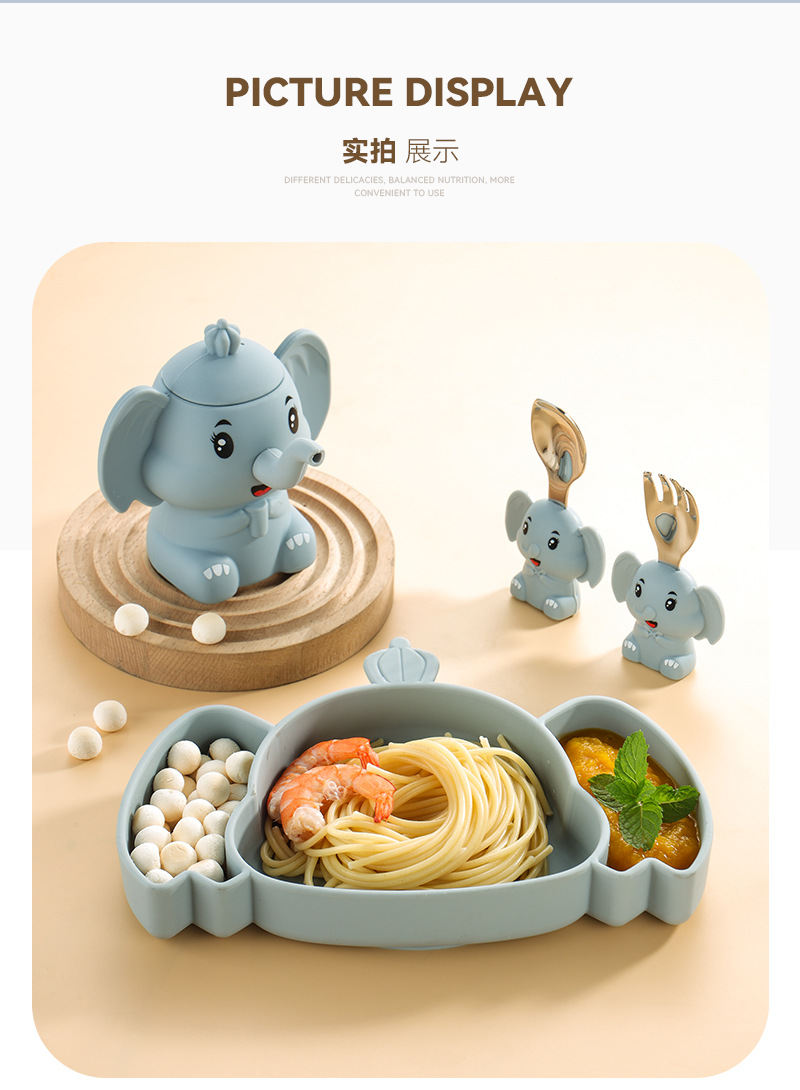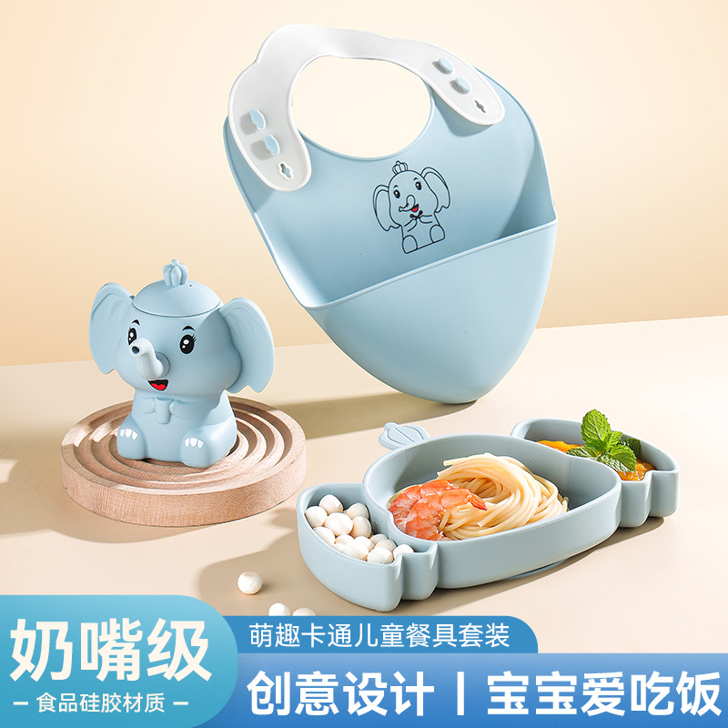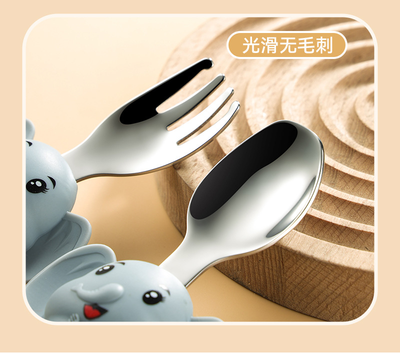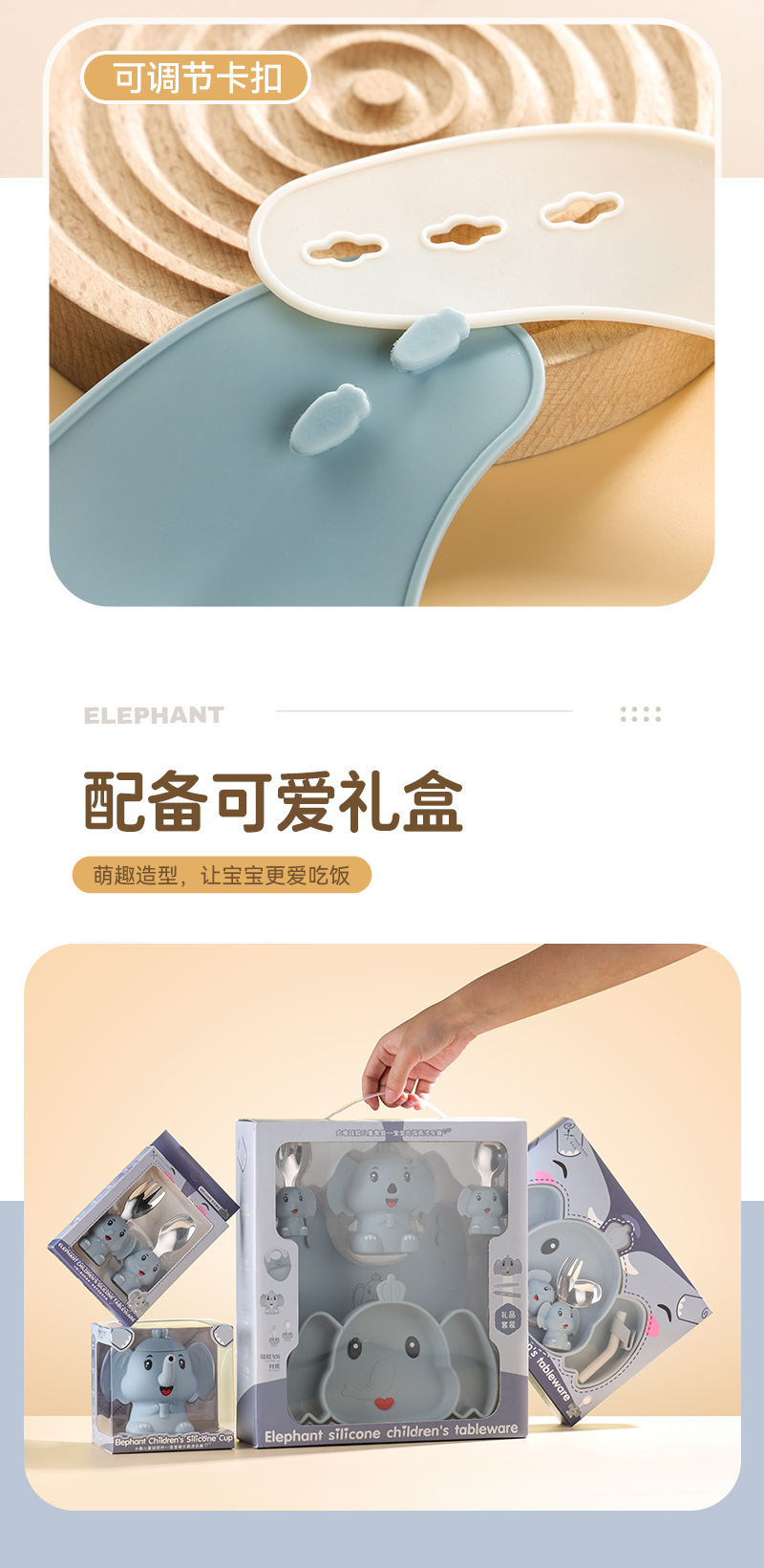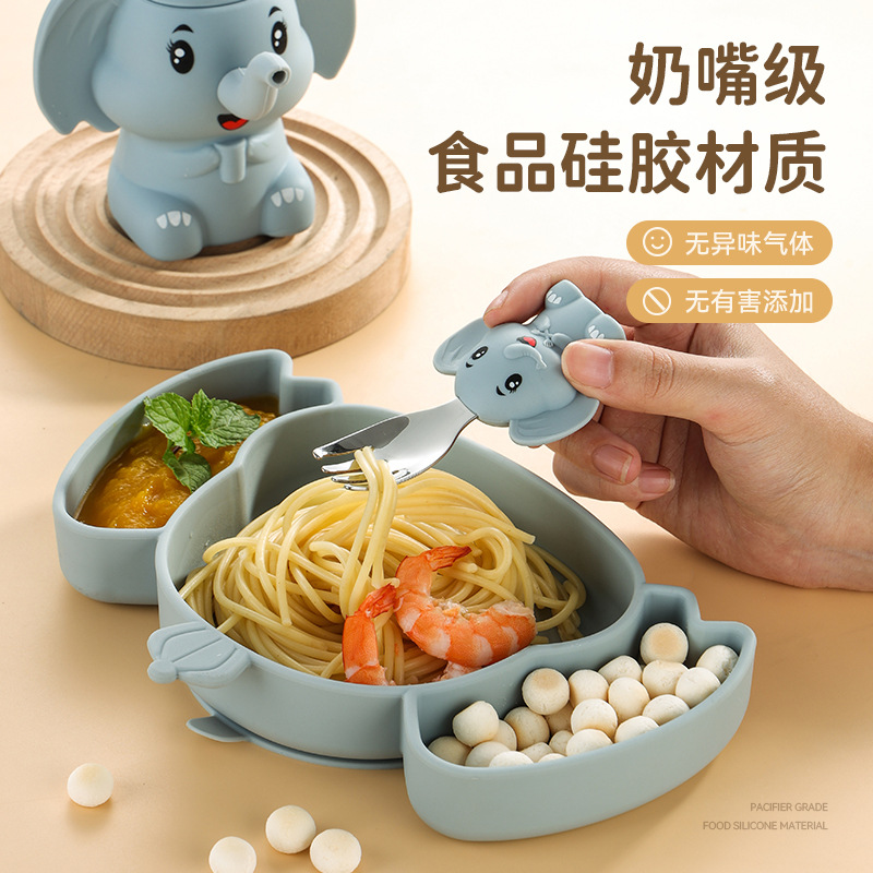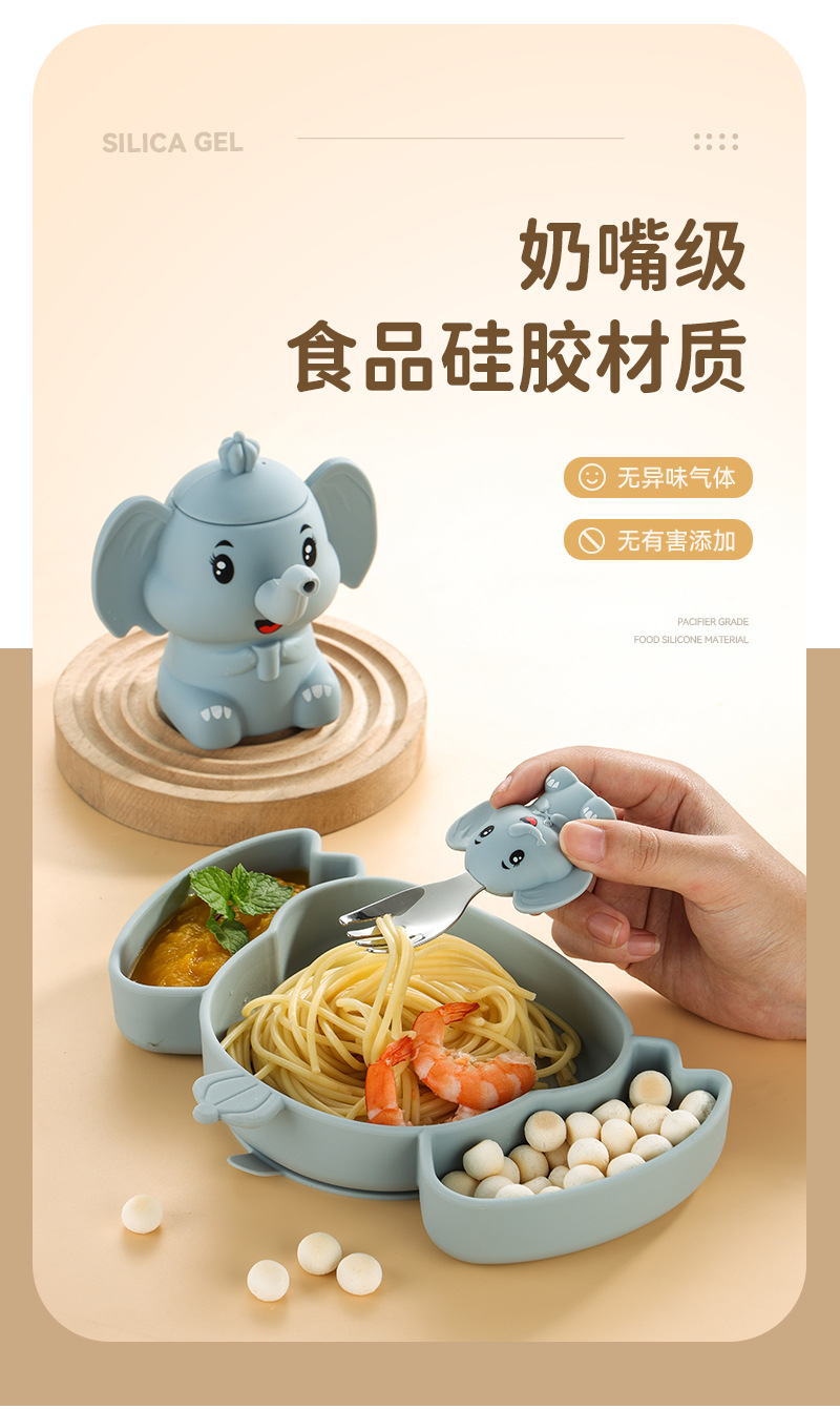 儿童餐具套装304儿童叉子勺子带吸盘餐盘小象吃饭套装自主训练勺