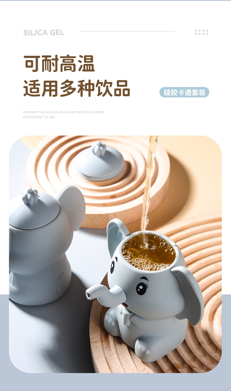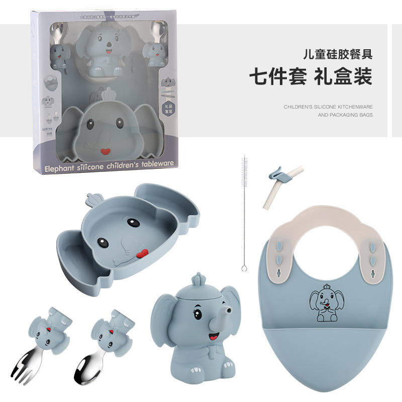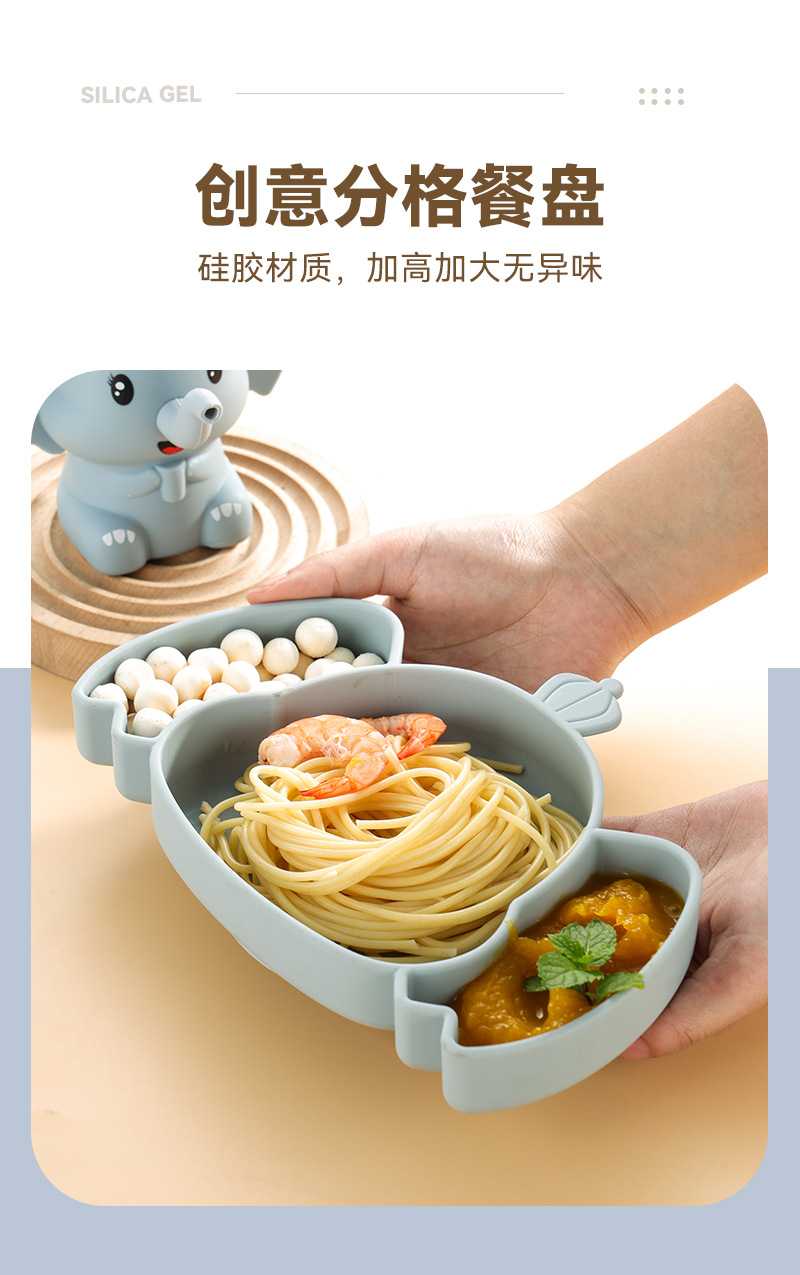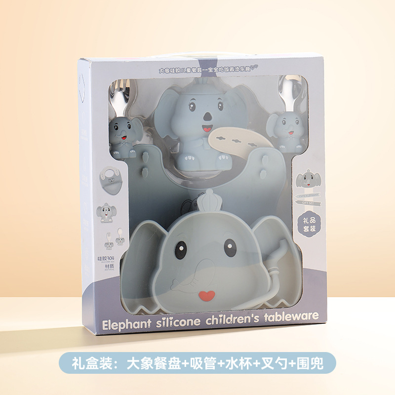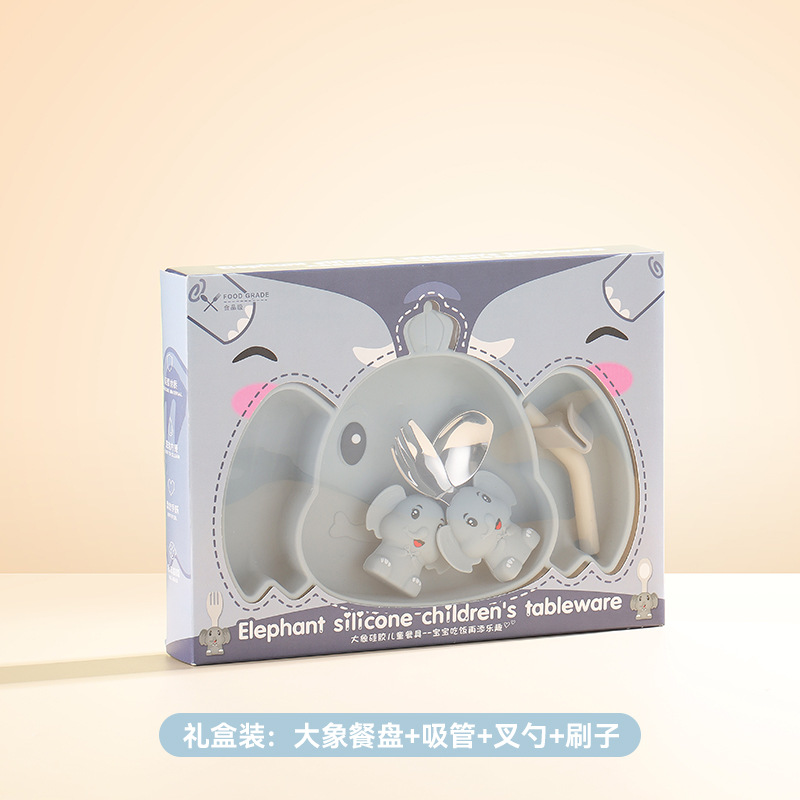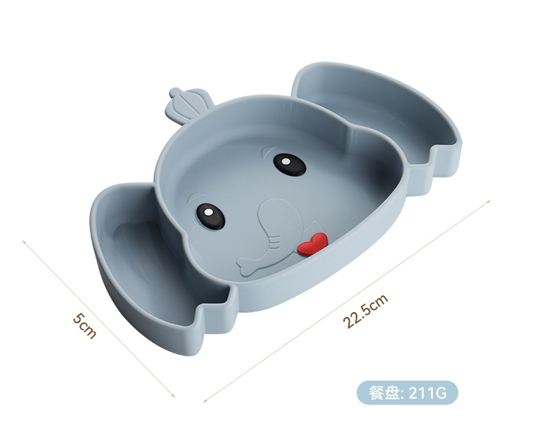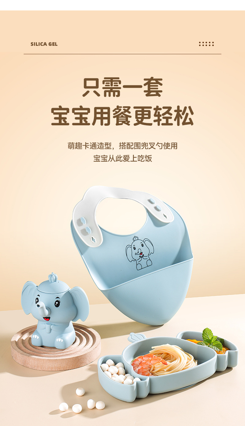 儿童餐具套装304儿童叉子勺子带吸盘餐盘小象吃饭套装自主训练勺