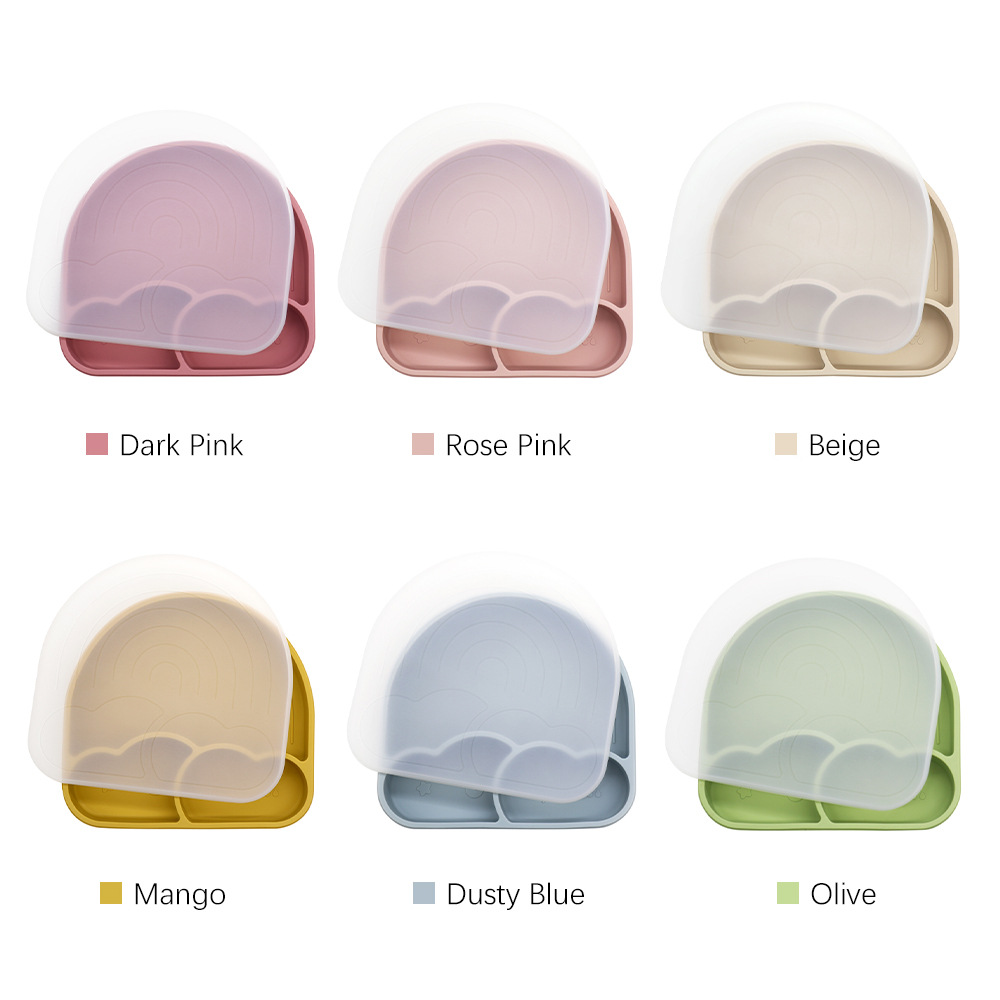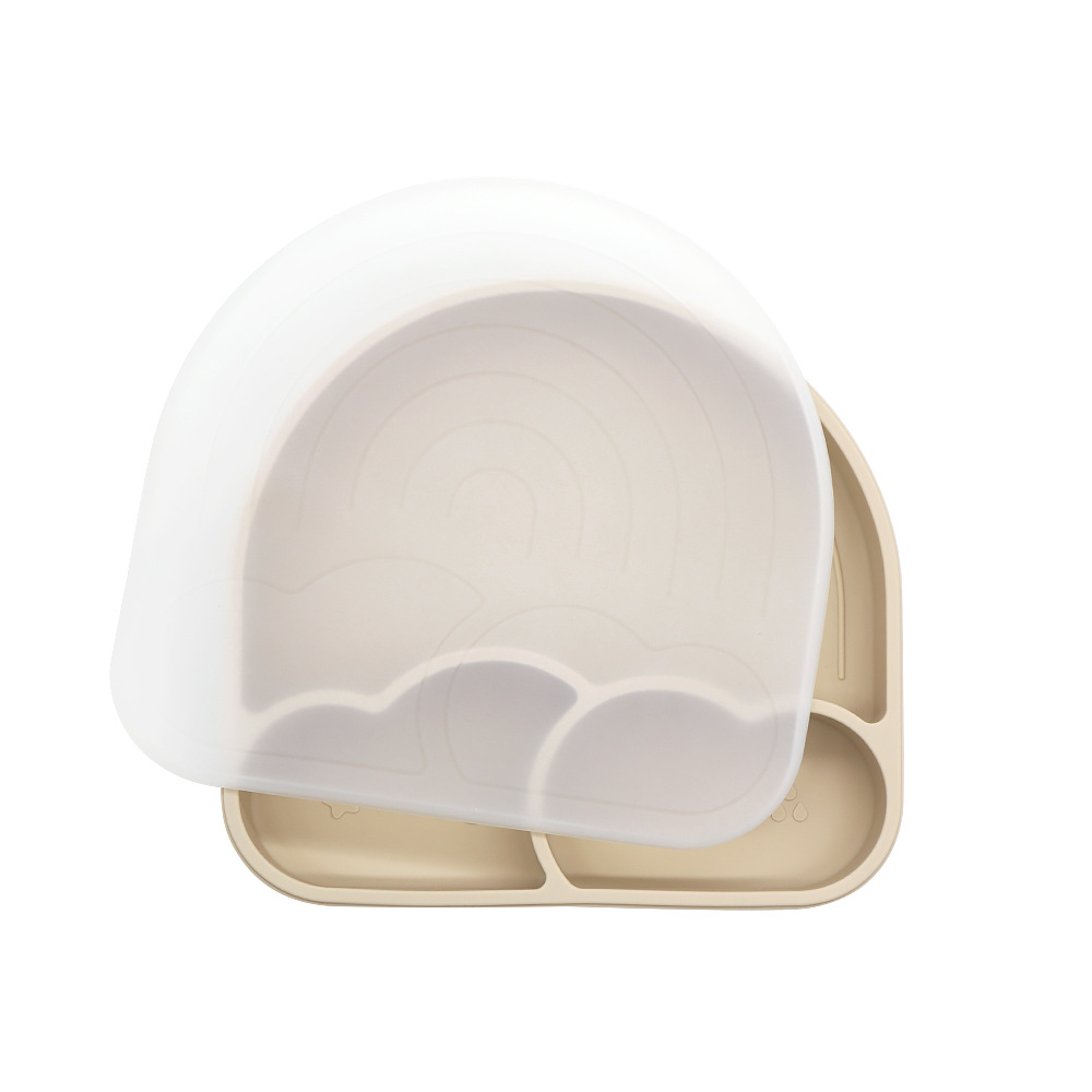 ins儿童食品级硅胶一体式分格餐盘 宝宝可爱带盖吸盘底座防摔餐盘