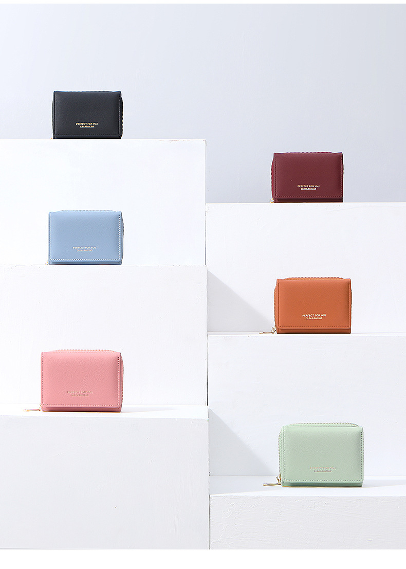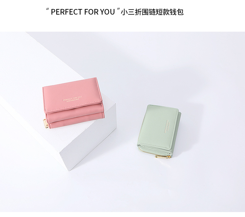 威臣跨境钱包女士短款韩版拉链零钱包简约女款三折多功能皮夹卡包