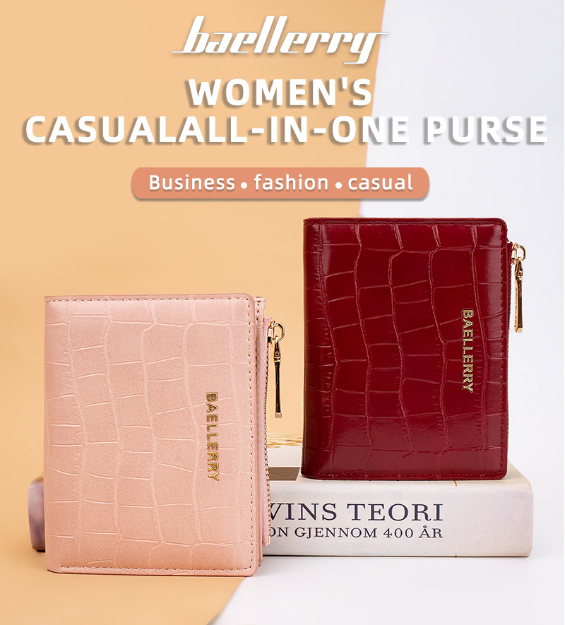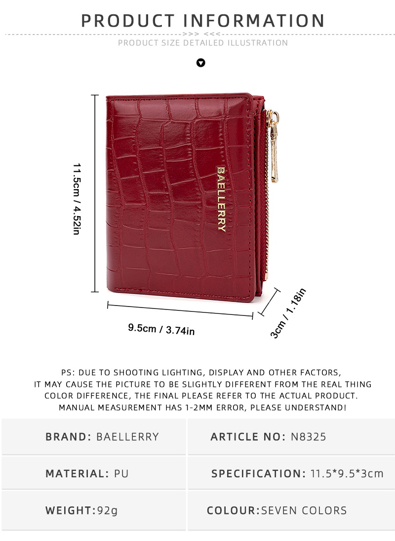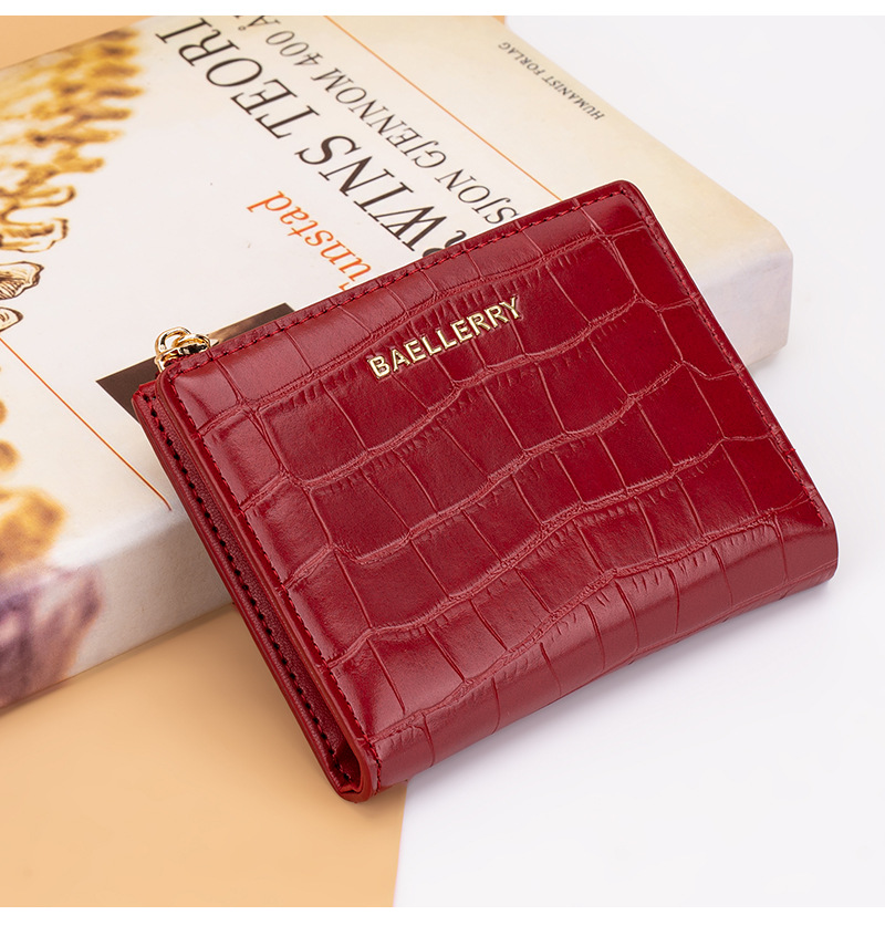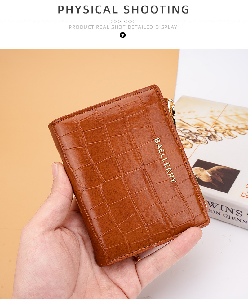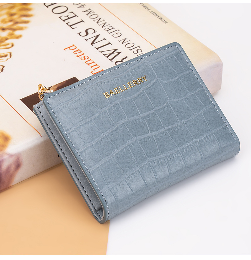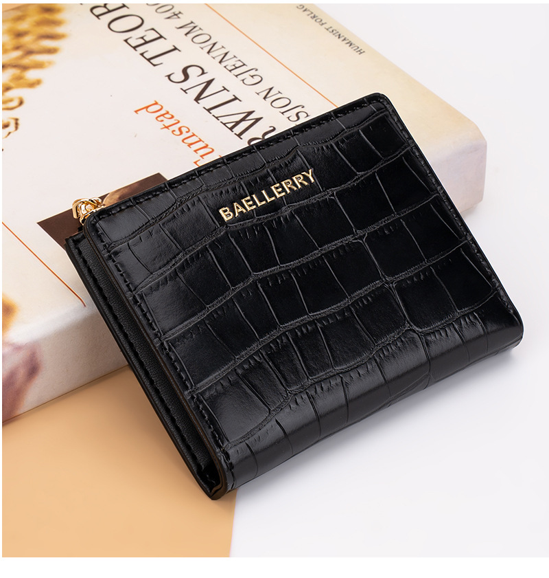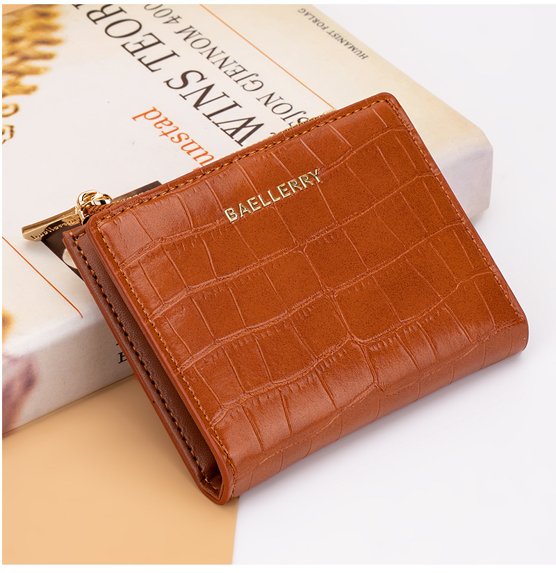 Baellerry新款女士短款钱包跨境石头纹两折拉链零钱包时尚卡包女