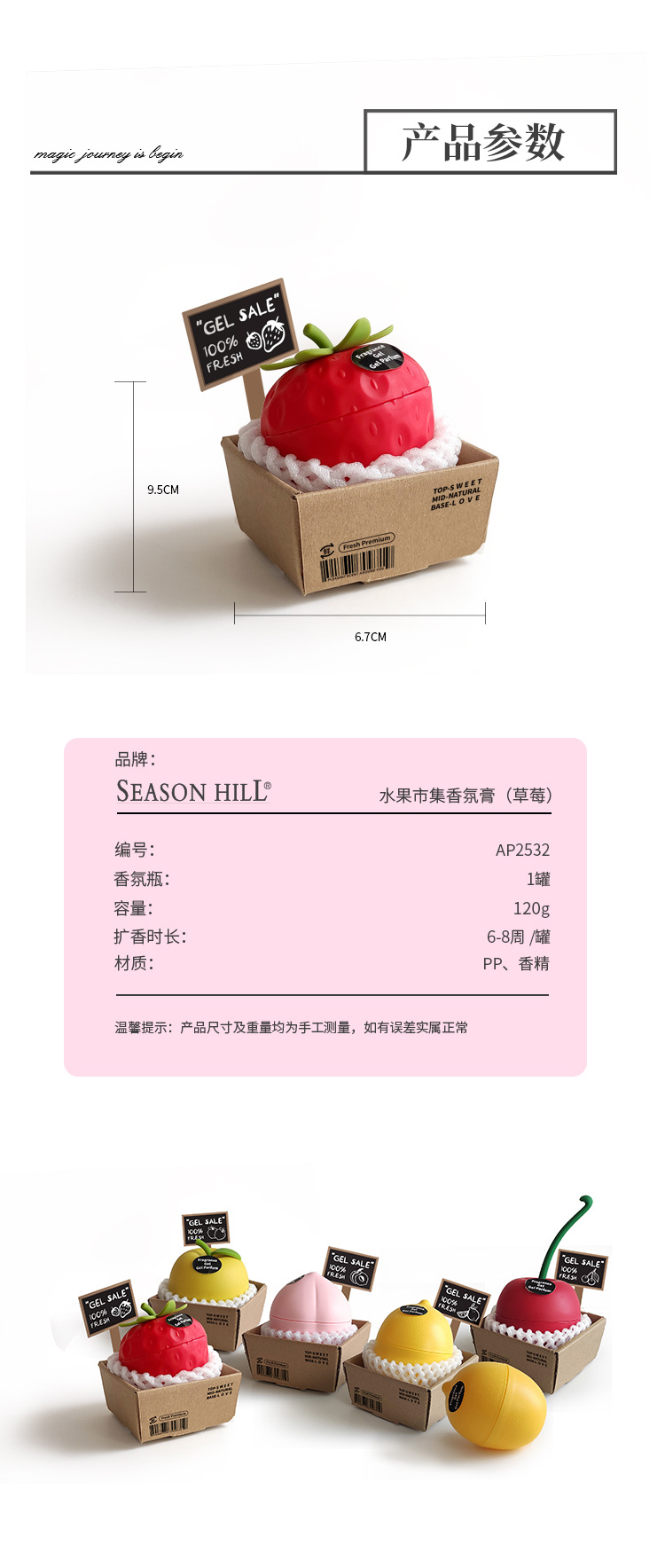 草莓香膏固体车载香薰摆件厕所空气清新剂持久散香水果味车载香薰