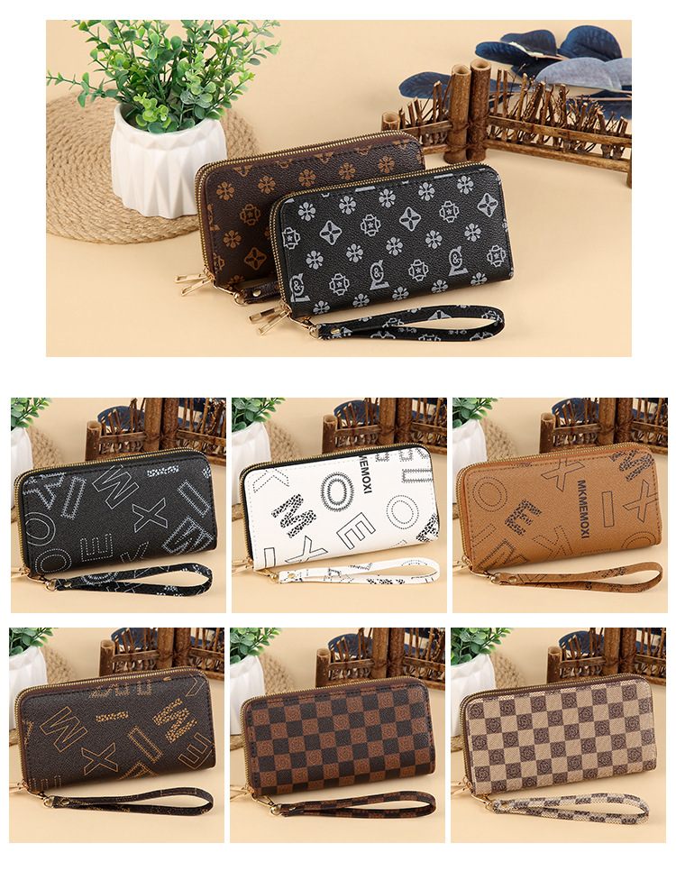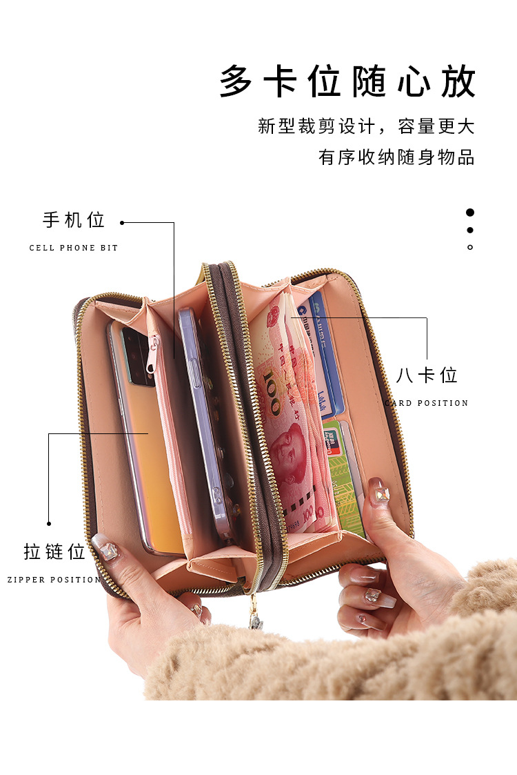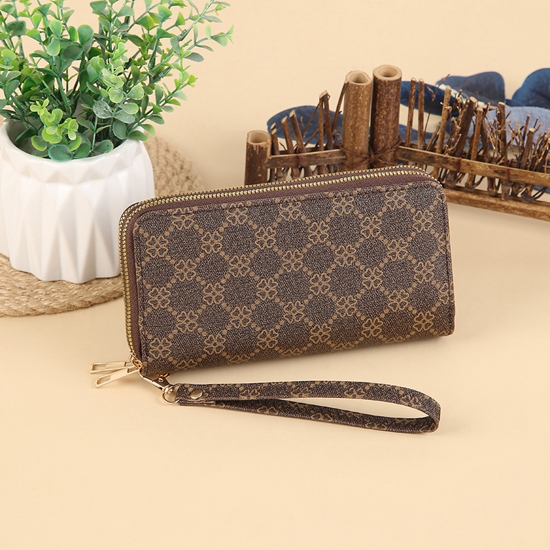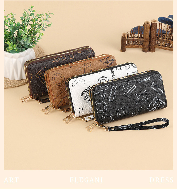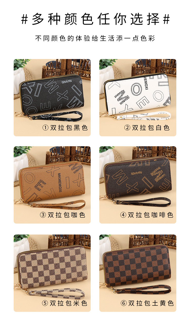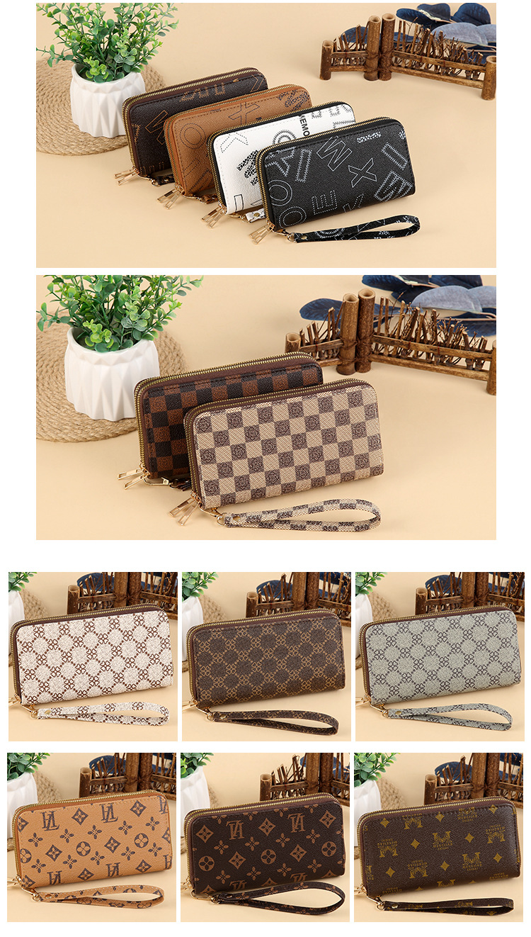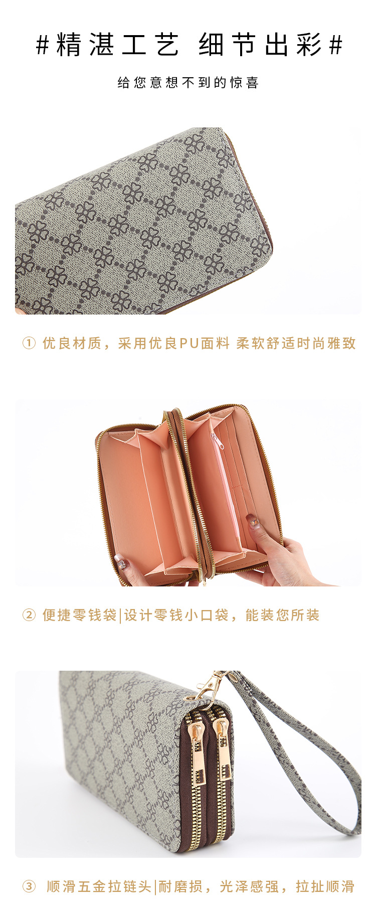 2024复古时尚简约女士钱包大容量卡包多功能手拿包双拉链钱包