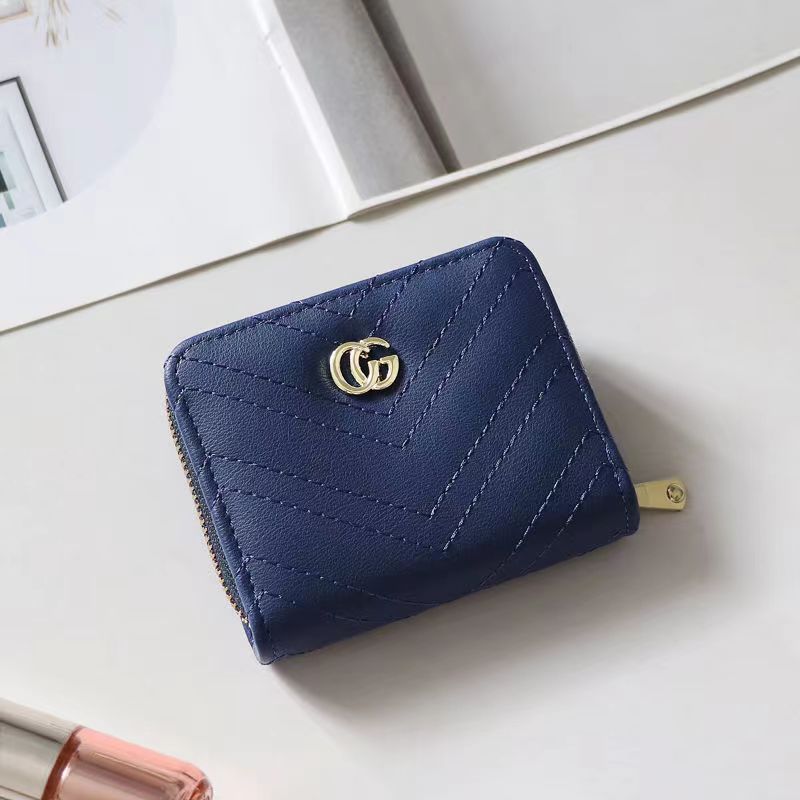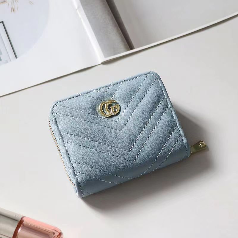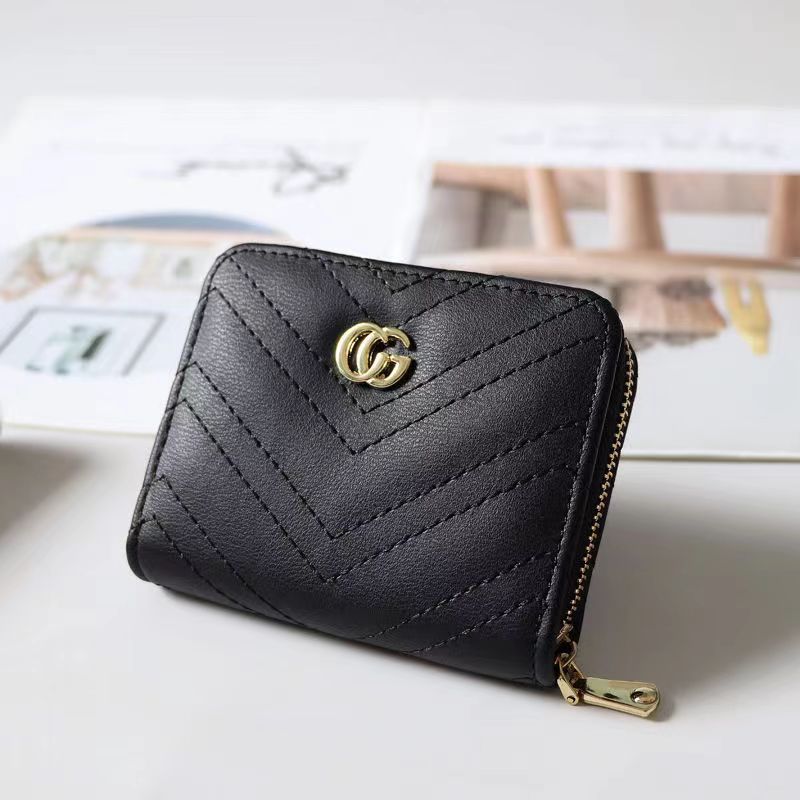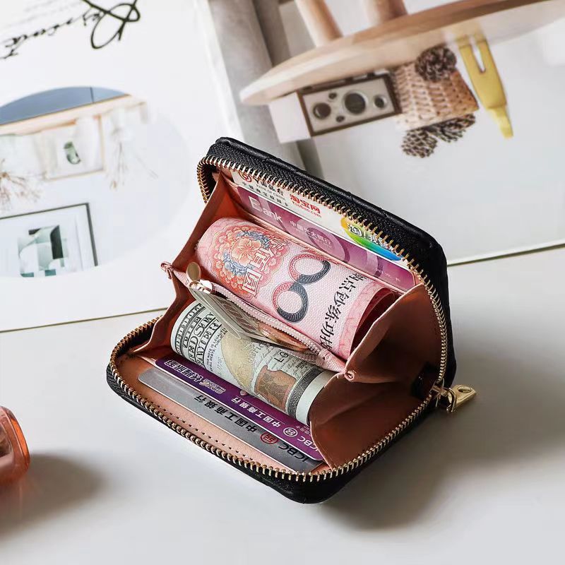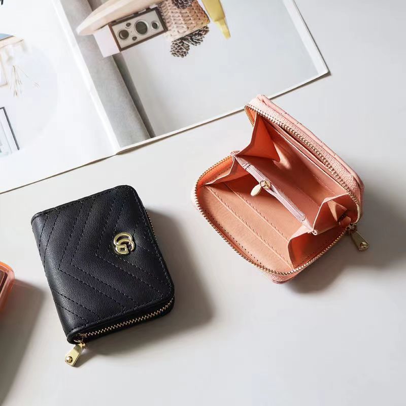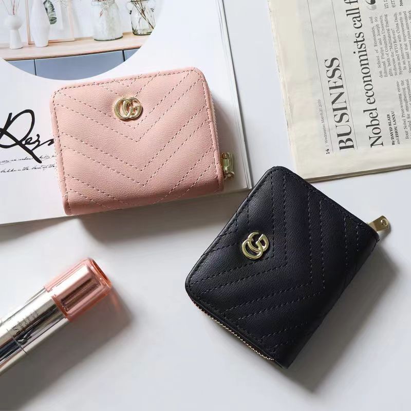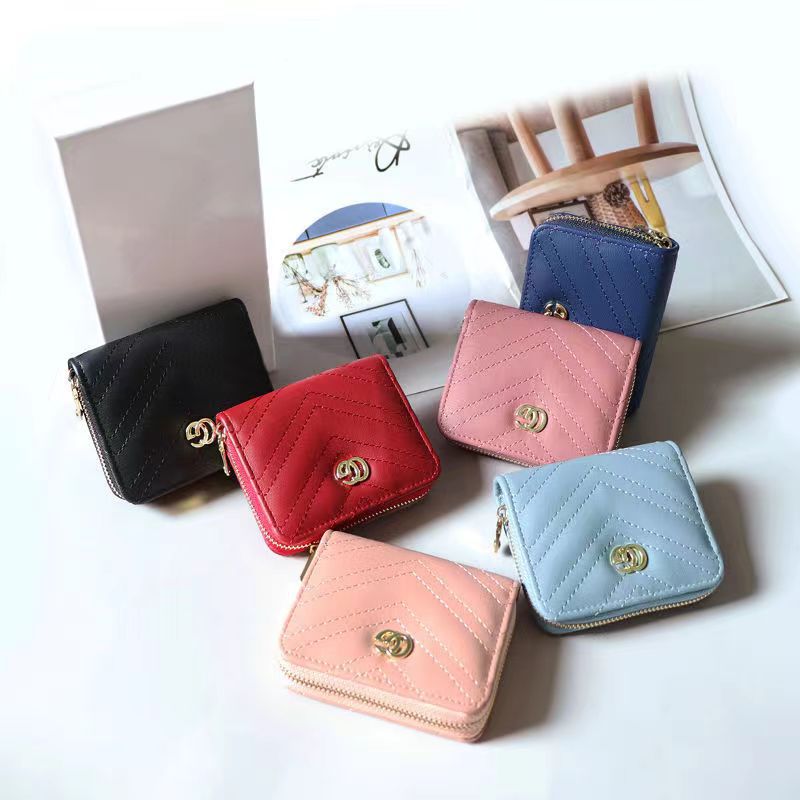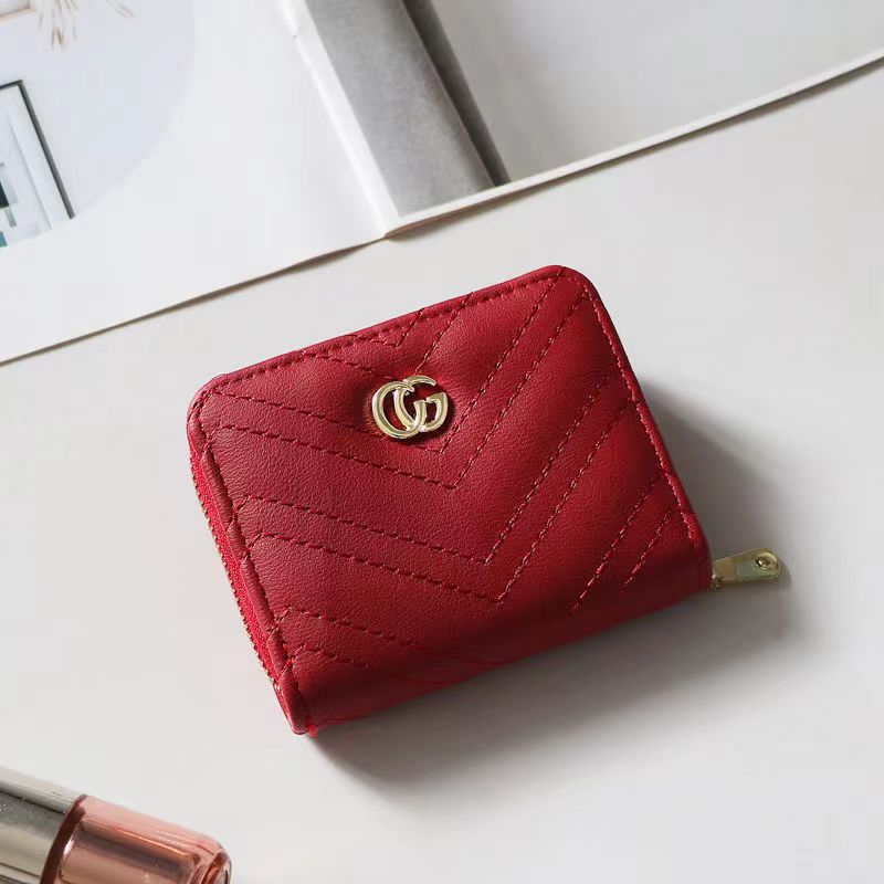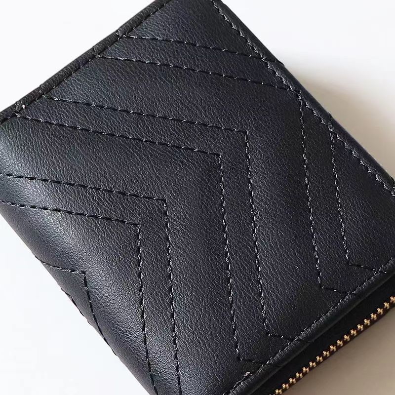 欧美大牌钱包女短款绣花拉链钱夹多卡位复古经典卡包拉链皮夹